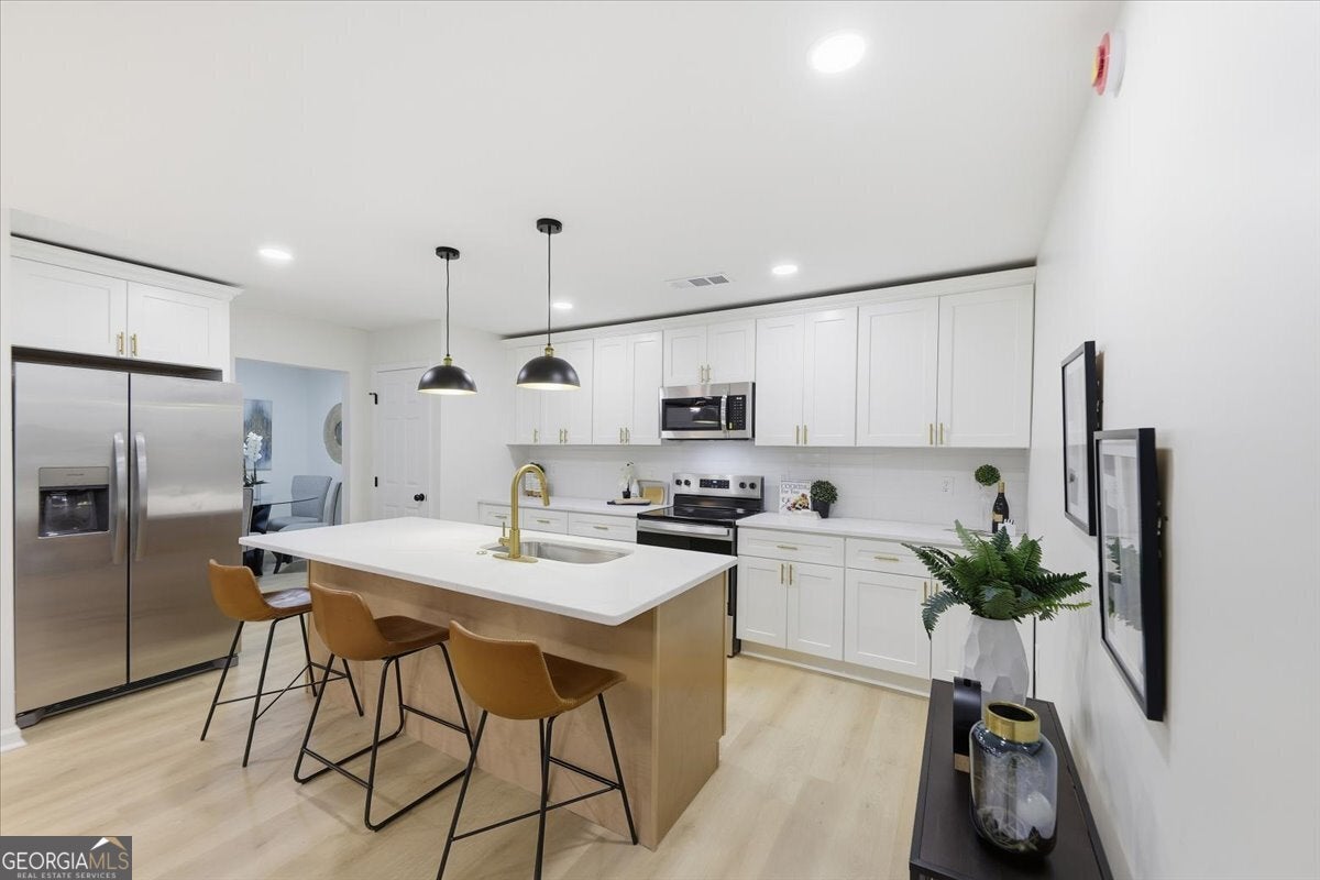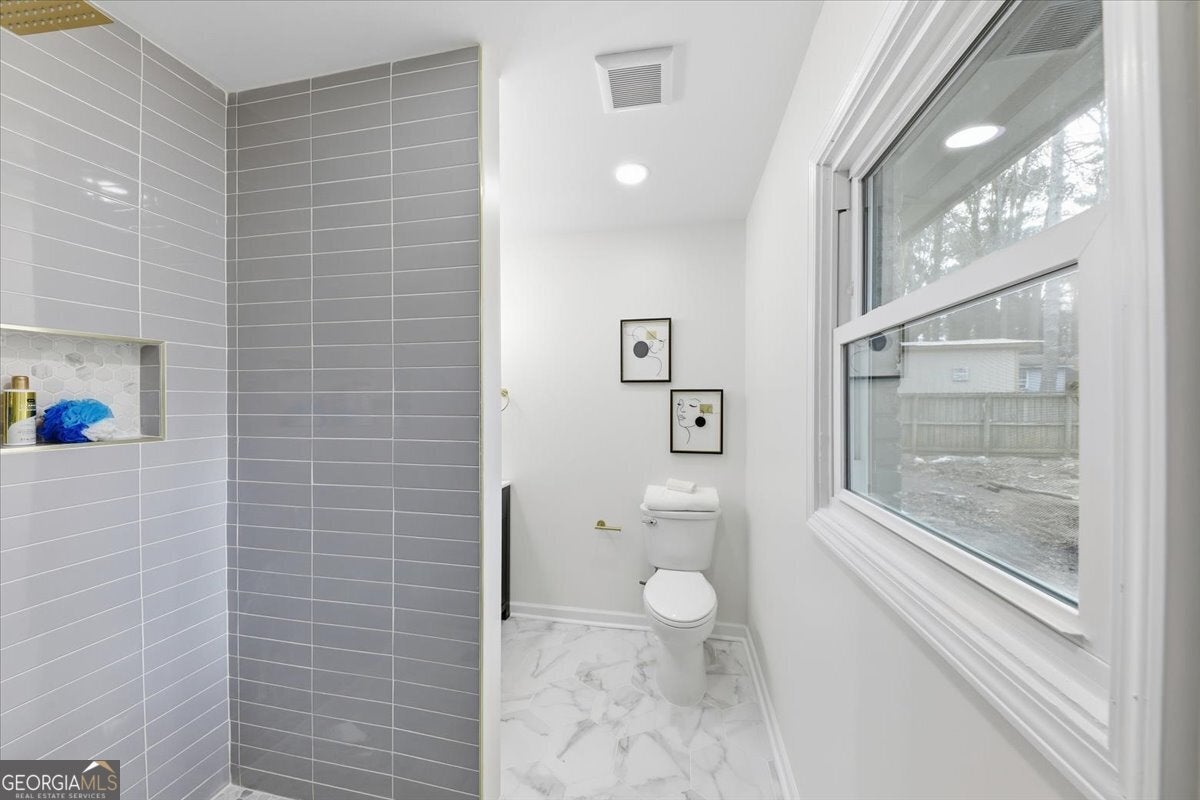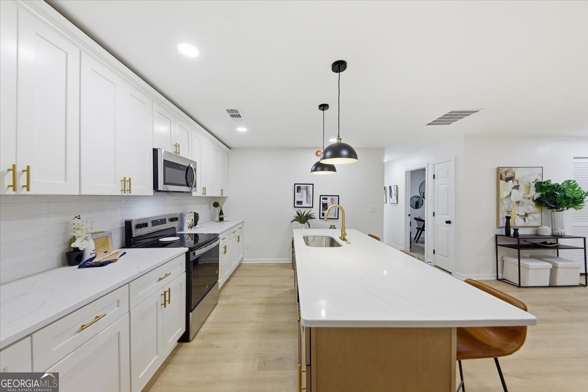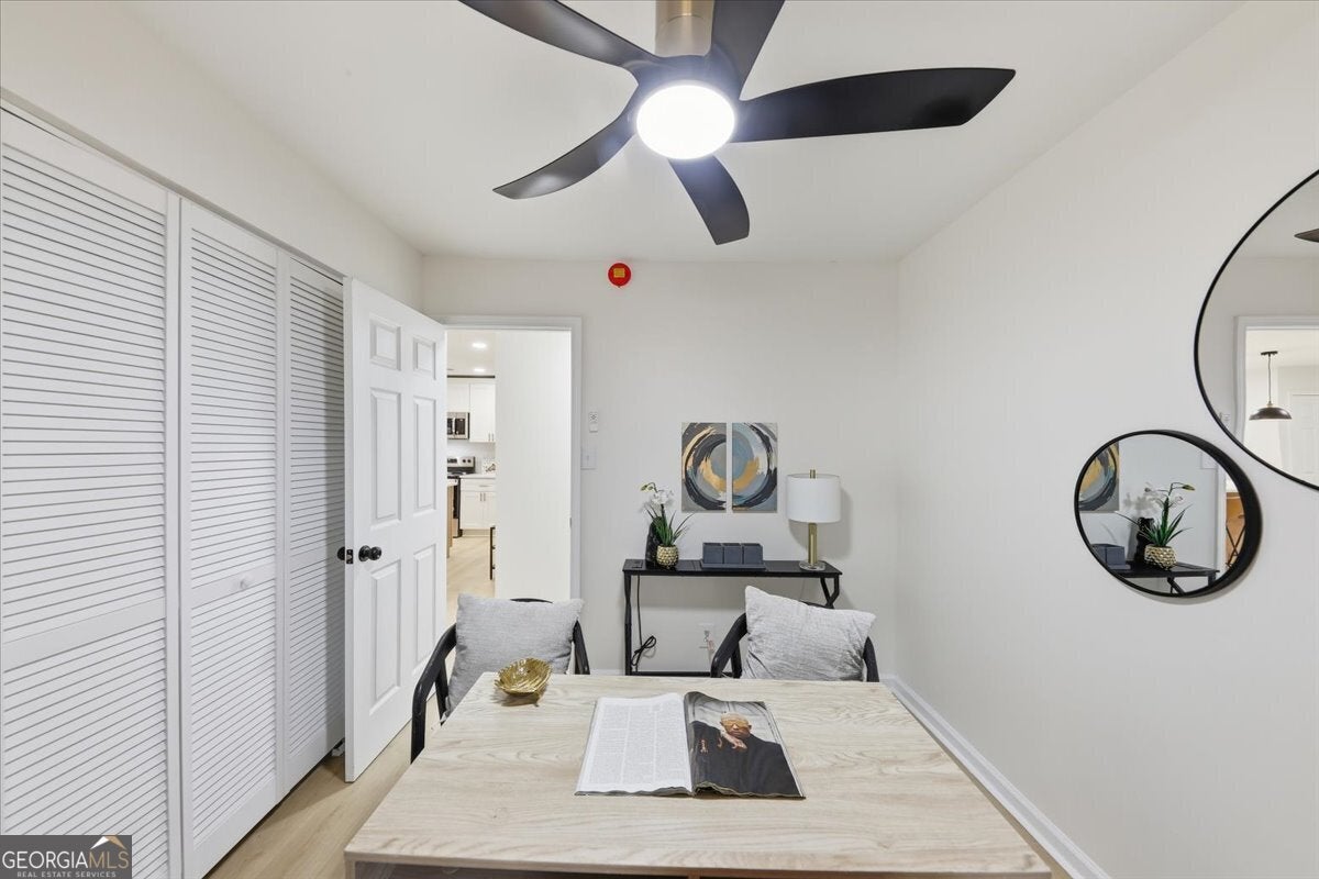 Welcome home to this thoughtfully updated brick ranch where timeless charm meets modern comfort. Step into a light-filled living space that flows effortlessly into the dining area and a sleek, contemporary kitchen, perfect for everyday living and effortless entertaining. The kitchen is appointed with stainless steel appliances, quartz countertops, soft-close white shaker cabinetry and a walk-in pantry. The primary suite is a true retreat, offering a private ensuite bath with a beautifully tiled walk-in shower and dual vanities. Two additional bedrooms are generously sized and share a stylish guest bath featuring a tiled tub/shower combination. This home offers peace of mind with extensive upgrades throughout, including a new roof, new windows, durable luxury vinyl plank flooring, updated lighting and ceiling fans, new HVAC System, New Water Heater and fresh interior and exterior paint. Step outside to a fully fenced backyard, ideal for hosting gatherings, enjoying quiet evenings, or creating your own outdoor oasis. Perfectly situated just minutes from Stone Mountain Park, Atlanta, and major highways including Hwy 78, I-285, and I-20, this move-in-ready home delivers both comfort and convenience.