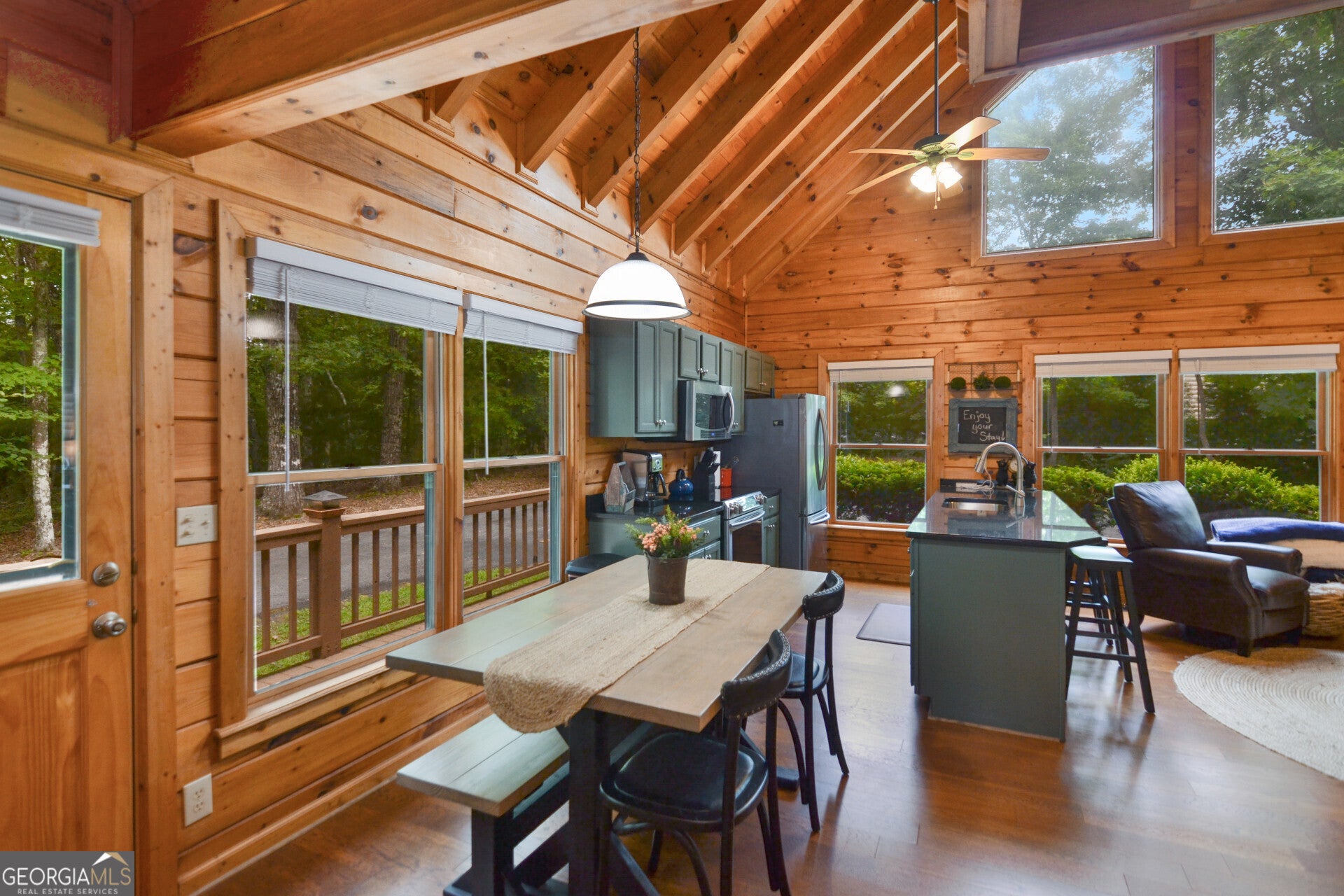 ***Home is currently used as a vacation rental. Please do not disturb guests. Showings by appointment only. *** Welcome to 145 Lake Ridge Drive, a charming single-family home nestled in the picturesque town of Blue Ridge, Georgia. Subdivision hosts million-dollar estates. This lovely property was built in 1999 and boasts a spacious, inviting floor plan with 3 bathrooms, including a detached efficiency apartment for added living or income potential. With a total finished area of 1,184 square feet, this home offers plenty of space for comfortable living. The lot size is a generous 40,946 square feet, providing ample room for outdoor activities and relaxation. Upon entering the home, you are greeted by a warm and welcoming atmosphere, with plenty of natural light flooding in through the windows. The living spaces are open and airy, perfect for entertaining guests or simply enjoying quiet evenings at home. The kitchen is well-appointed with modern appliances, plenty of cabinet space, and a convenient layout that makes meal preparation a breeze. The bedrooms are spacious and bright, offering a peaceful retreat at the end of the day. Outside, the property features a large yard that is perfect for outdoor gatherings, gardening, or simply enjoying the beautiful surroundings. The serene setting of Blue Ridge adds to the appeal of this wonderful home, offering a peaceful escape from the hustle and bustle of city life. Screened porch includes a 3-person hot tub to relax after a busy day Home features a Generac whole-house generator backup for storm protection. Electric Vehicle Level 2 charging outlet in the garage Overall, 145 Lake Ridge Drive is a fantastic opportunity to own a beautiful home in a desirable location. Whether you are looking for a full-time residence or a vacation getaway, this property has everything you need to live the life you've always dreamed of. Don't miss out on this incredible opportunity to make this house your forever home!.