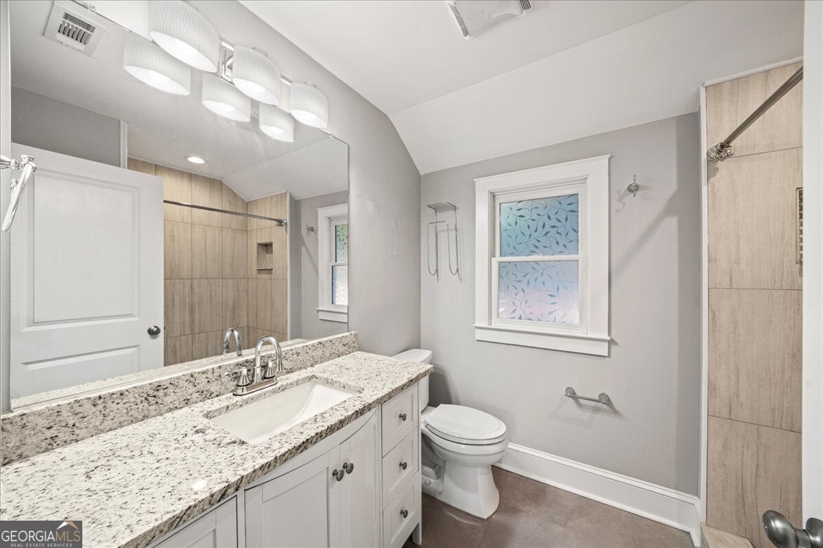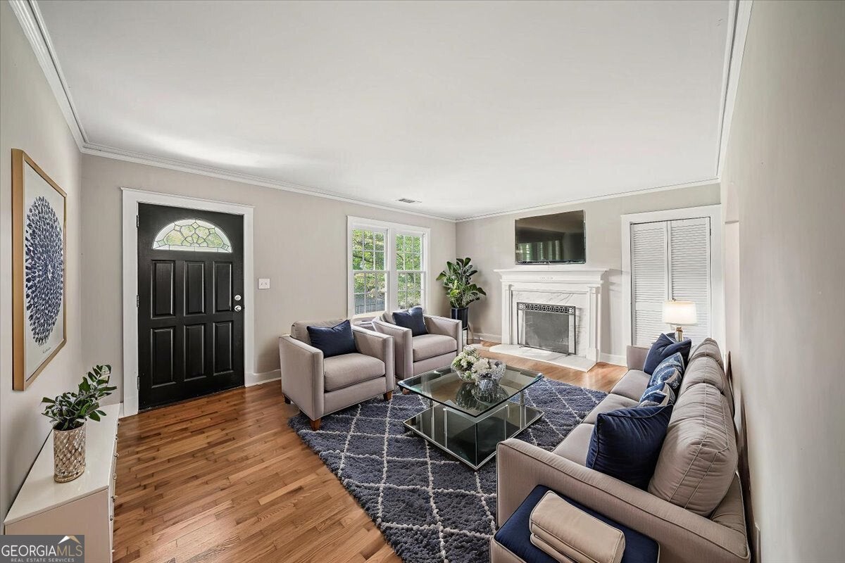 Charming 1940s cottage, thoughtfully renovated and expanded, now back on the market and better than ever. Filled with natural light, this 3-bedroom, 2-bath home sits on a spacious, level corner lot just steps from Pendergrast Park, offering both character and opportunity in a prime location. Inside, the inviting family room features hardwood floors, a cozy fireplace, and a classic arched opening that flows into the dining room. The renovated kitchen connects seamlessly to the dining area and includes granite countertops, a tile backsplash, breakfast bar, and newer appliances. A previous wall removal creates an open, airy layout ideal for everyday living and entertaining. Just off the main living space, a sunroom with new flooring offers the perfect flex space for a home office, reading nook, or sitting area. The primary suite addition is a true retreat, highlighted by vaulted ceilings, French doors that open to a large brick patio, a generous walk-in closet, and a spa-inspired bathroom with a custom vanity, tiled shower, and tile flooring. Two additional bedrooms share a newly updated hall bath, complemented by a dedicated laundry room for added convenience. Outside, enjoy an expansive, level yard with a brick patio, ample parking pad, and storage shed, ideal for outdoor living, gardening, or future expansion. Recent improvements include fresh interior and exterior paint, smooth ceilings, modern lighting, updated electrical panel, HVAC system, water heater, plumbing, roof, and fixtures throughout. Hardwood floors run throughout the home, with carpet in the primary bedroom. Ideally located with quick access to I-85, Brookhaven, Buckhead, Emory, CDC, and downtown Atlanta. The oversized lot offers incredible potential to subdivide into two buildable lots or bring your builder and expand upward. A rare blend of charm, updates, and future opportunity in an unbeatable intown location.