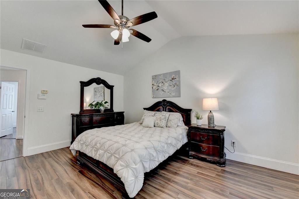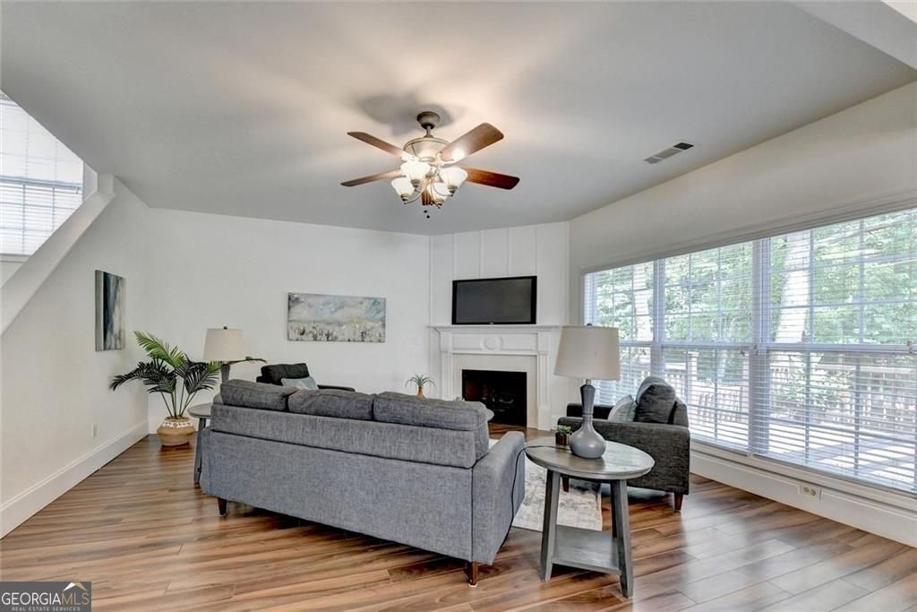 CHARMING 4-BEDROOM, 2.5-BATH HOME FOR RENT LOCATED IN THE HIGHLY SOUGHT-AFTER LAMBERT HIGH SCHOOL DISTRICT. This MOVE-IN-READY residence features numerous recent updates, including FRESH INTERIOR AND EXTERIOR PAINT, a BRAND-NEW HIGH-EFFICIENCY A/C SYSTEM, a NEWER WATER HEATER, and UPDATED APPLIANCES including a DISHWASHER AND REFRIGERATOR. The home also offers HARDWOOD FLOORING THROUGHOUT, providing a clean, modern look and easy maintenance. The home features a BRIGHT, OPEN FLOOR PLAN, ideal for both everyday living and entertaining. The SPACIOUS WHITE KITCHEN is equipped with STAINLESS STEEL APPLIANCES, a CENTER ISLAND, and overlooks the breakfast area and family room with a COZY FIREPLACE, creating a warm and inviting atmosphere. Step outside to enjoy the PRIVATE, FENCED BACKYARD with a STONE PATIO/DECK AND PERGOLA, perfect for relaxing or entertaining outdoors. All bedrooms are conveniently located UPSTAIRS, including a GENEROUS PRIMARY SUITE with a VAULTED CEILING, LARGE WALK-IN CLOSET, and a PRIVATE BATH featuring DUAL VANITIES, a GARDEN TUB, and a SEPARATE TILED SHOWER. Three additional bedrooms are also upstairs, one of which includes a CHARMING BONUS SIDE ROOM-ideal for a PLAY AREA, HOME OFFICE, OR READING NOOK. The LAUNDRY ROOM IS LOCATED ON THE SAME LEVEL AS THE BEDROOMS, offering added convenience. Situated in the quiet HUNTERS RUN SUBDIVISION, this home is close to TOP-RATED SCHOOLS, SHOPPING, DINING, PARKS, and HEALTHCARE FACILITIES, with EASY ACCESS TO HWY 400 AND HWY 141.