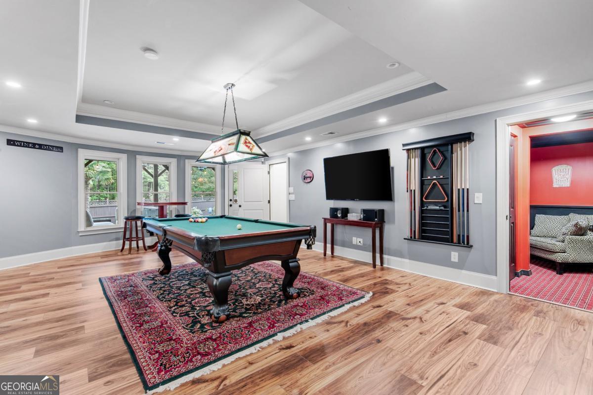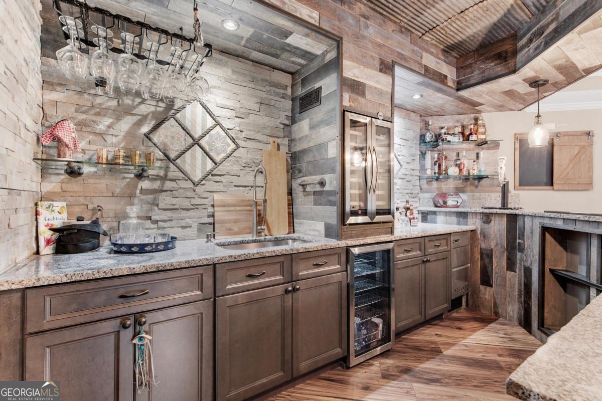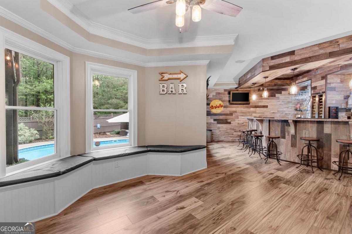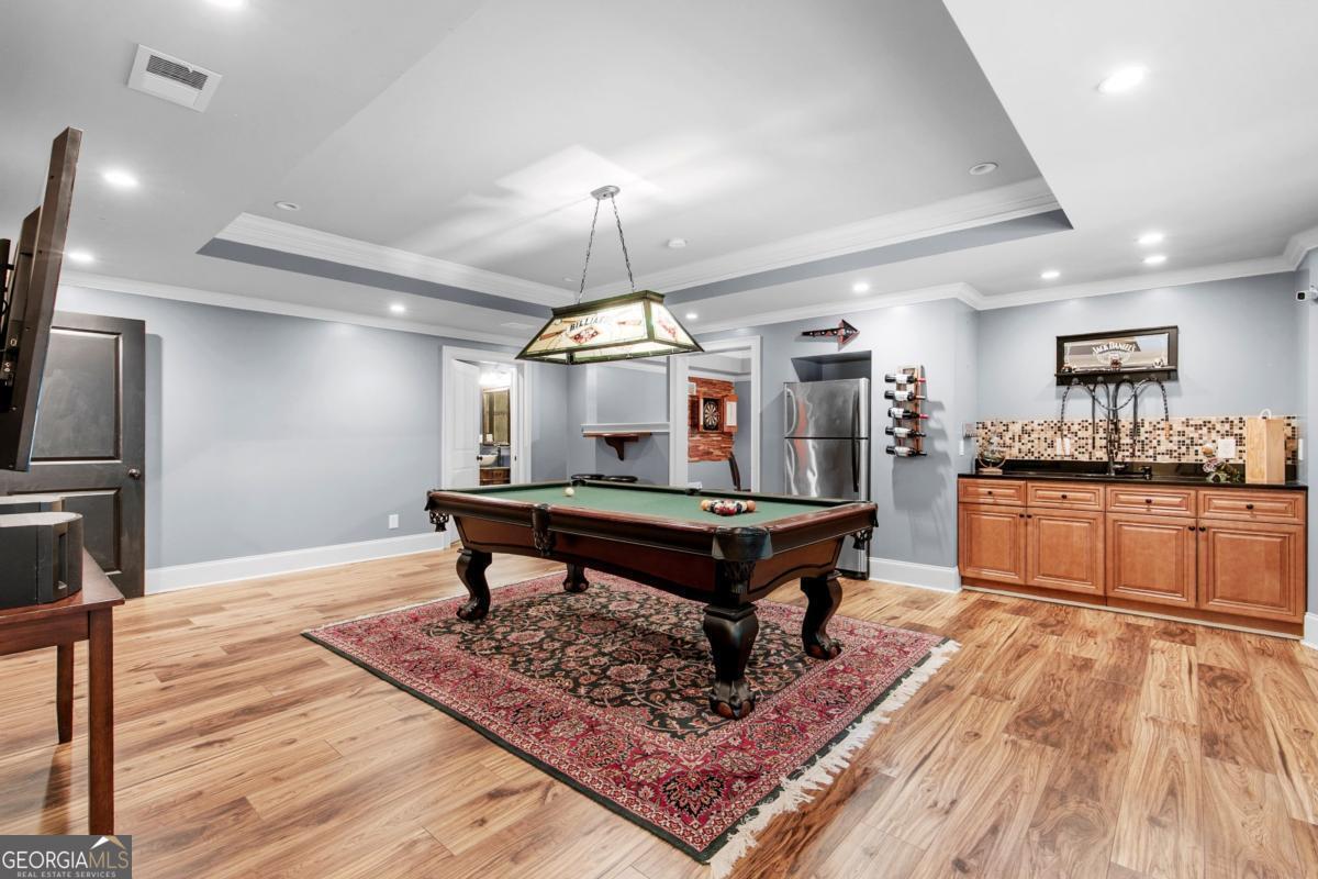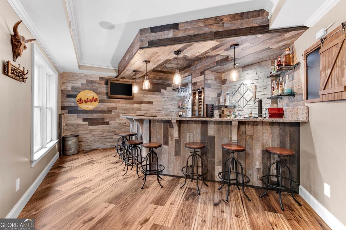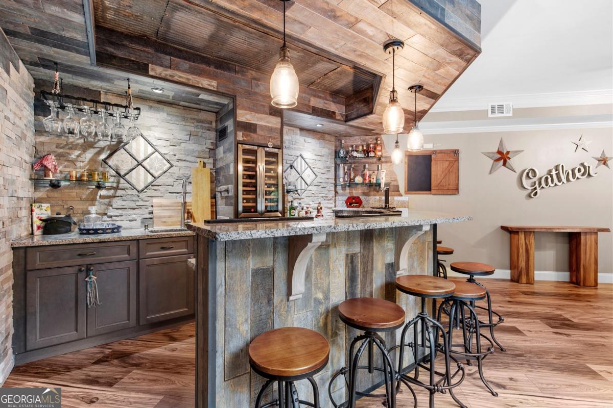 Welcome to your private retreat in the heart of Dacula's Chapel Estates-where thoughtful updates and curated luxury come together. The main level features sunlit living spaces with freshly refinished hardwood floors, fresh interior paint, and a beautifully upgraded kitchen with professional-grade appliances and a smart refrigerator. The layout flows effortlessly into a light-filled sunroom and out to a custom outdoor oasis featuring a saltwater + chlorine pool, covered stone bar with built-ins and TVs, and an adorable shed perfect for storage or weekend projects. Upstairs, the layout is just as practical as it is elegant, offering a convenient number of bathrooms to match the spacious bedrooms, along with elevated details like tray ceilings that bring warmth and character to the home. Downstairs, the finished basement offers endless possibilities-whether you keep it as the ultimate entertainment zone with a pool table, poker room, full, custom-made bar, and home theater, or reimagine the private room and full bath as a guest suite, home office, or gym. Water-resistant flooring was thoughtfully chosen to suit indoor-outdoor living. Major upgrades-including a newer roof, AC unit, gutters, newer wood + vinyl windows, and full exterior paint-offer peace of mind for years to come. The fenced backyard glows with LED accents, and the three-car garage provides space for hobbies or storage. Ideally located just minutes from Hwy 316 and I-85, with easy access to everyday conveniences like Publix, shopping, and the exciting new Harbins Road development featuring restaurants, retail, and more-this home is the one you've been waiting for. Schedule a showing today!