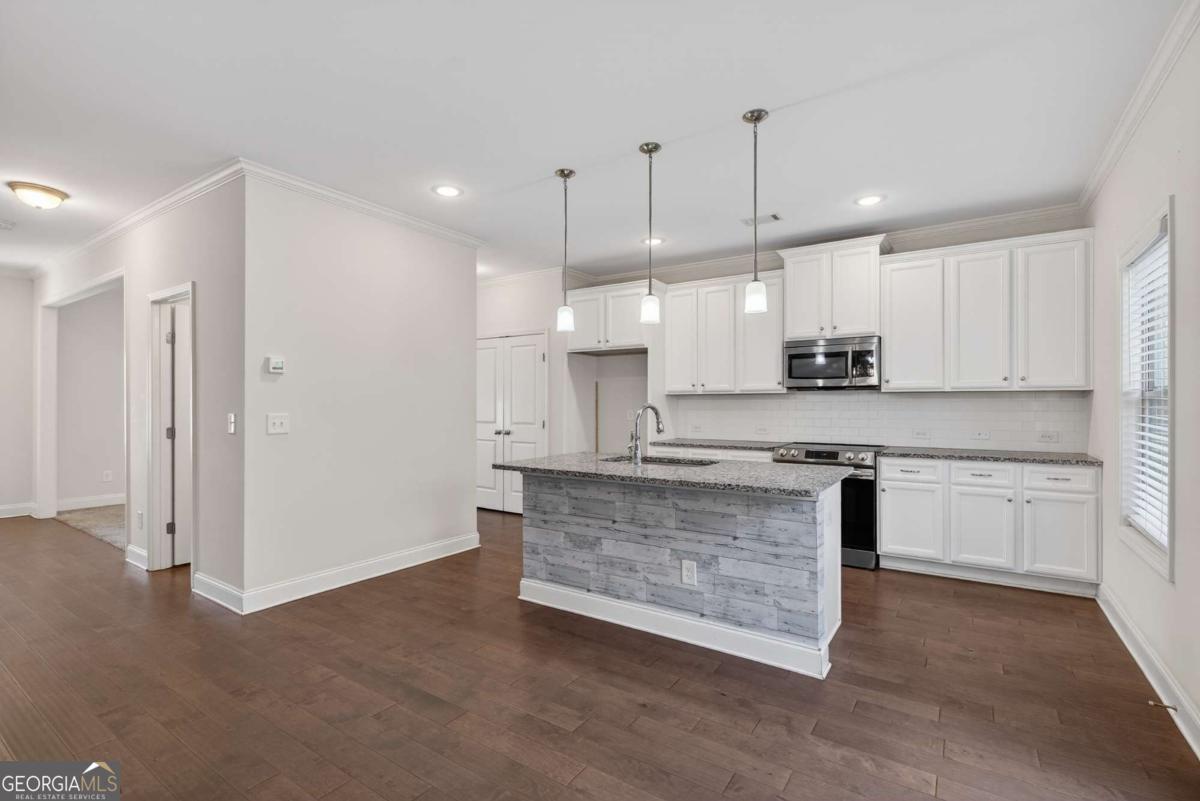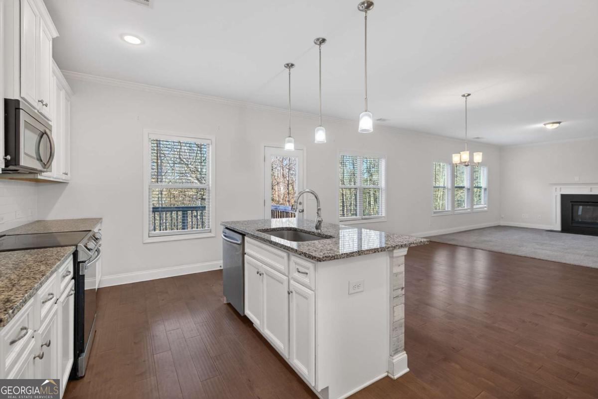 WOW WOW WOW such a beautiful home with 4 bedrooms, 2.5 baths in the highly desirable quiet neighbourhood of Mundy Mill. This beautiful home was built in 2020 with 2236 square feet of living space on the main level and upstairs. There is an 940 sf of the unfinished basement. This stunning home offers the perfect blend of comfort, style, and functionality. The home situates on the cul-de-sac with the PRIVATE TRANQUIL WOODED BACKYARD. Upon entering the property, you will see the super long driveway with a two car garage. The home offers a lovely front porch with the low-maintenance brick and durable hardi plank sidings. The first floor was made of hardwood and carpet. Fall in love with the open concept with lots of natural light. The Chef inspired kitchen offers a oversized island with GRANITE COUNTERTOP; kitchen pantry; disposal in place; all appliances are stainless steel; the beautiful backsplash for easy maintenance. There are lots of cabinets for storage in the kitchen. Inside, you'll find a bright and open floor plan filled with natural light that balance elegance and functionality. There are about 5 windows in the OVERSIZE family room and one in the kitchen for natural light. The family room is spacious with a lovely fireplace that is perfect for cosy evenings or lively gatherings. There is a lovely deck for your family to relax overlooking to the private wooded relaxing backyard with inviting views. All bedrooms are on the second floor. The upstairs laundry room adds everyday convenience. The owner's suite is oversized with two windows. Fall in love with the owners' bathroom which offers double vanity, A HUGE SHOWERING ROOM AND LARGE WALK-IN CLOSET. ALL OTHER BEDROOMS ARE RELATIVELY LARGE. There are GRANITE COUNTERTOPS in every bathroom. The unfinished basement offers lots of windows and ready for you to build with the patio in the back. Even though this home has a basement but the backyard is relatively level. Located in a prime Gainesville location, close to shopping, parks, Lake Lanier, community events, and easy highway access, this home is part of a vibrant community filled with amenities and fun activities. There is coming soon Kroger nearby. This wonderful home is a perfect blend of comfort, style and functionality. This home is only about 1.4 miles (about 3 minutes) from University of North Georgia; about 1.6 miles (4 minutes) from Walmart; about 1.8 miles (5 minutes) from Sam Club. This home was meticulously taken care and ready to move in. What makes this home so special is that the home in the cul-de-sac with the quiet, untouchable backyard and the setback land that can not be developed so it adds the values to the quietness of the home. Furthermore, from the beginning of the subdivision to this home, it only take a turn onto Millside parkway. In another word, this home is not located further down in the subdivision which makes it easy to get in and out of the subdivision. This subdivision offers the swimming pools and tennis courts. This beautiful home is ready to move in so hurry before it is gone !!!