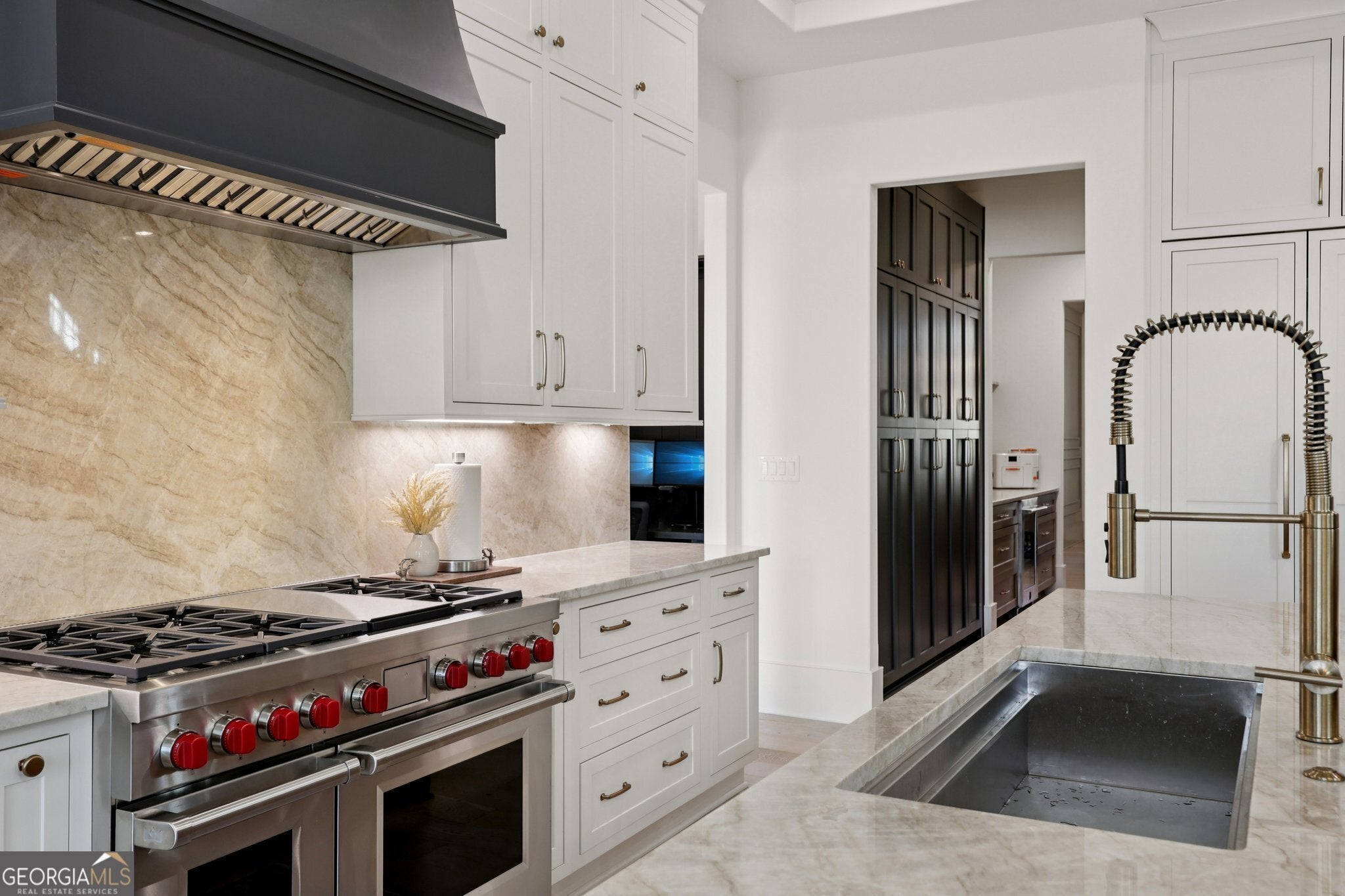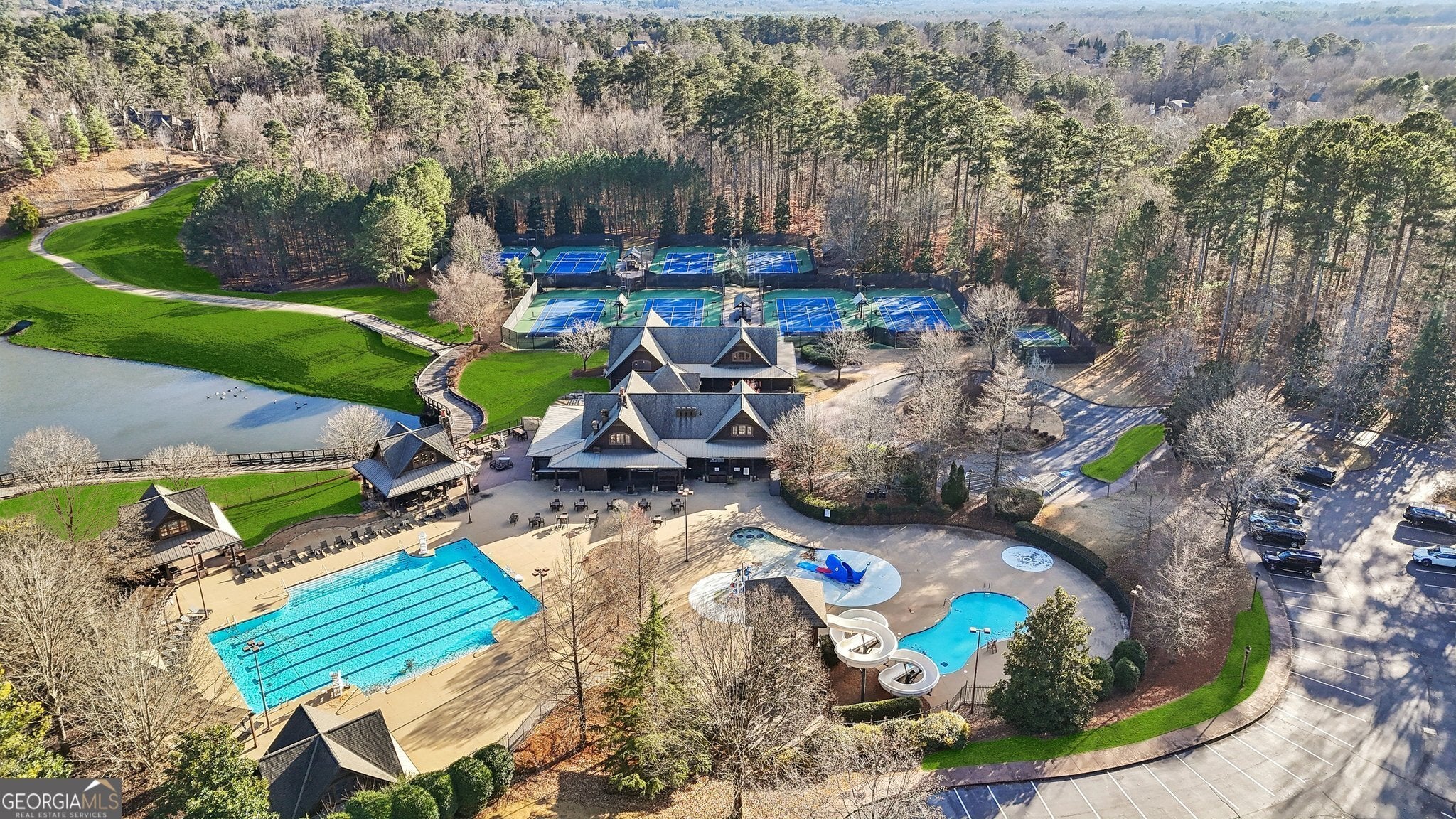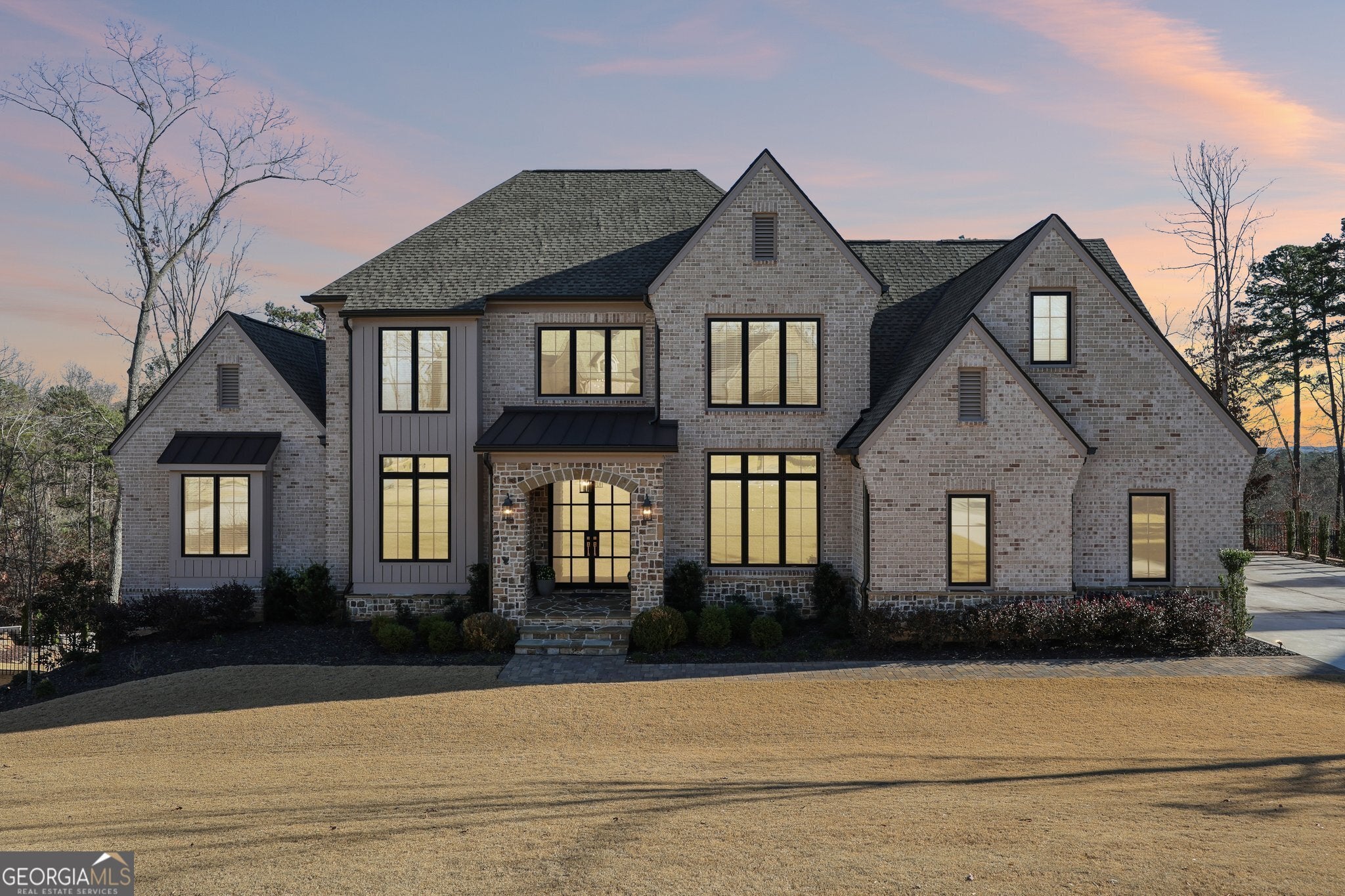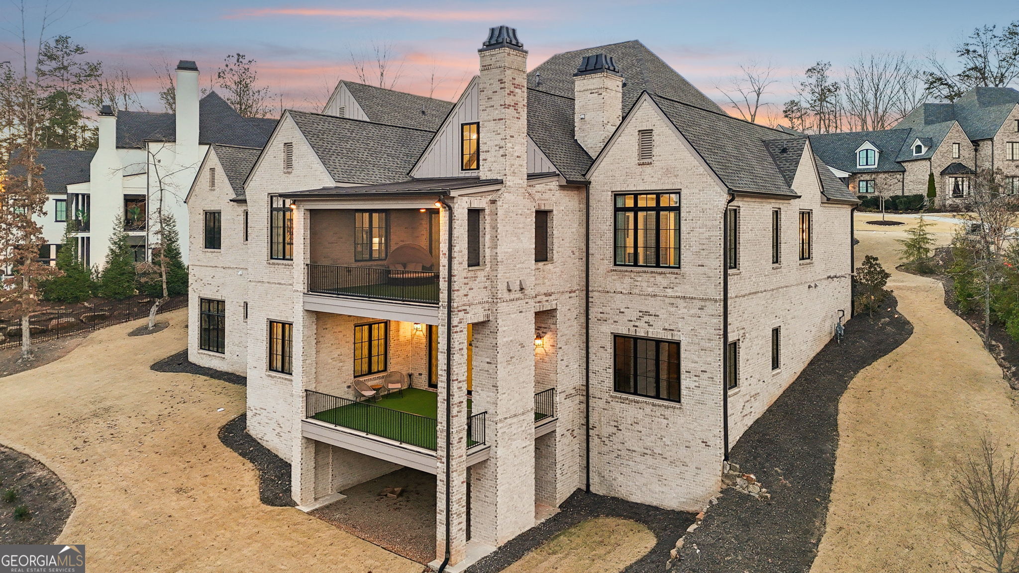 Set within The River Club, an exclusive gated enclave offering championship golf, resort-style amenities, and access to a scenic 1.4-mile trail along the Chattahoochee River with multiple trailheads, overlooks, and benches, this exceptional 2024 estate built by Cresthaven Homes sits within a Certified Audubon Sanctuary, celebrated for its privacy and natural beauty. With timeless architecture and pristine, modern finishes, the home offers a rare opportunity to own a recently built estate in one of North Georgia's most sought-after golf communities. A stately, queen-sized brick exterior with limestone accents creates a commanding first impression, opening to approximately 9,423 square feet that balance finished luxury and customizable living areas, complemented by a spacious three-car garage designed for both everyday convenience and additional storage. The home features approximately 6,100 square feet of finished space above grade, complemented by 1,000 square feet of finished terrace-level flex space, ideal for a secondary living area, studio, or private lounge. An additional 2,323 square feet of pre-wired, unfinished basement space is ready to be tailored to your vision. A gracious foyer is flanked by a formal dining room with an extended butler's pantry offering custom cabinetry, sink, and beverage chiller. French doors open to a sophisticated study with custom wood built-ins. The staircase is discreetly positioned to preserve serene rear views, and the home is elevator-ready on all three levels with a thoughtfully pre-planned shaft for seamless future installation. The open-concept living spaces are anchored by a dramatic living room with a vaulted ceiling and exposed wood beams, creating a striking yet warm focal point. Adjacent, the chef's main kitchen features a large quartz island, Wolf appliances, and a fully integrated, cabinet-front refrigerator seamlessly blended into custom cabinetry, along with an eat-in area that flows effortlessly into the family spaces-perfect for dining and entertaining. A fully equipped secondary prep kitchen is tucked away for function and discretion, offering additional counter space, range, dishwasher, sink, and a pass-through window with direct access to a private grilling area. Completing the level, a functional mudroom with a built-in desk adds everyday convenience. The main level offers both refined everyday living and multigenerational flexibility, featuring a luxurious primary owner's suite along with a secondary en suite bedroom, ideal for a live-in parent, extended guest, or executive home office. The primary suite is a private sanctuary with a spa-inspired bath featuring a soaking tub, separate shower, dual vanities, and an expansive custom closet. Upstairs, three generously sized secondary bedrooms each feature private baths, accompanied by a family lounge and game area with a wet bar, perfect for relaxation or entertaining. The terrace level provides 1,000 square feet of finished flex space, while an additional 2,323 square feet of pre-wired, HVAC-ready unfinished basement space allows for future customization without compromise-whether a theater, gym, bar, golf simulator, racquetball court, additional bedrooms and baths, or a private wellness suite. The generous lot provides ample space to accommodate a future pool, enhancing the home's outdoor living potential. This estate is more than a home-it's a lifestyle where timeless luxury meets everyday living.