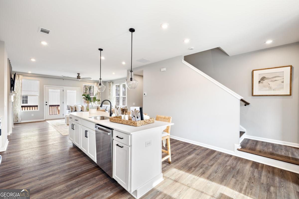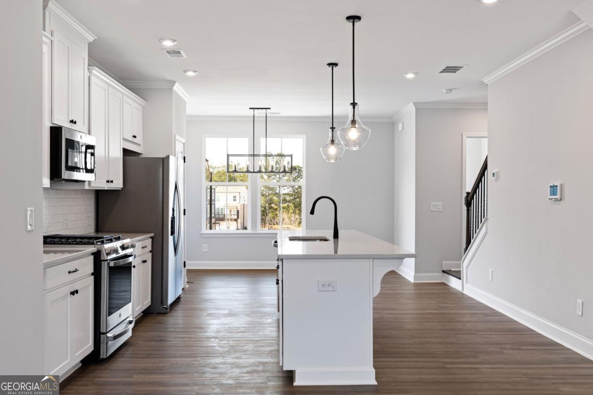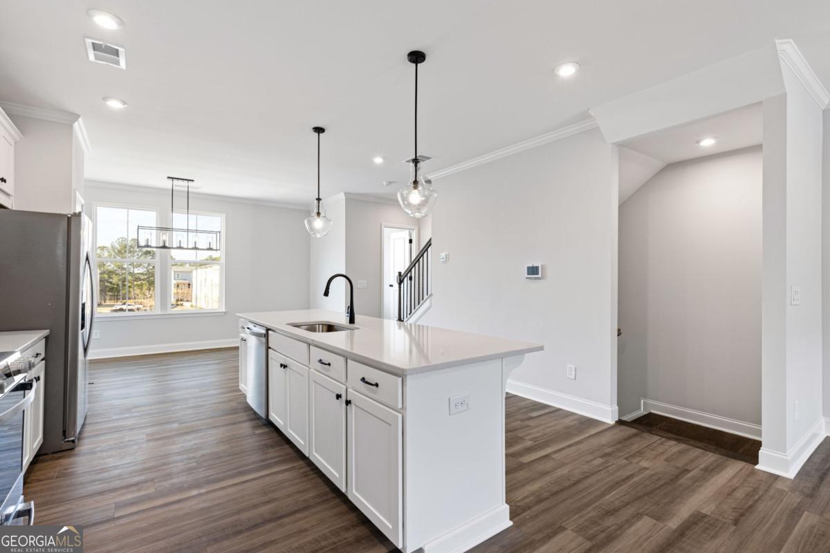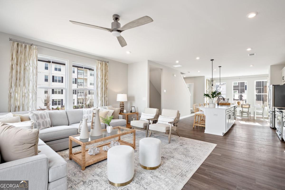 Like-New Luxury in a Prime Acworth Location! Discover this stunning 3-story townhome in a highly sought-after community with top-rated schools. Built with style and comfort in mind, it features a huge kitchen island with quartz countertops, upgraded lighting, SS appliances, and soaring 9-foot ceilings on every level. Enjoy the outdoors with an extended covered deck overlooking private views - perfect for grilling, relaxing, or entertaining friends. The versatile lower level can be transformed into a 4th bedroom, home office, gym, playroom, or creative space to suit your needs. Upstairs, the oversized primary suite offers double vanities, a spacious walk-in closet, and the convenience of an upper-level laundry room. The open-concept main floor is bathed in natural light, creating a warm, inviting space you'll love coming home to. And so much storage! This vibrant community will soon offer incredible new amenities - including a lake, clubhouse, swimming pool, pickleball and tennis courts, parks, playgrounds, and scenic walking trails - making it not just a home, but a lifestyle. Schedule your private tour today and see why this home is a standout in Acworth!