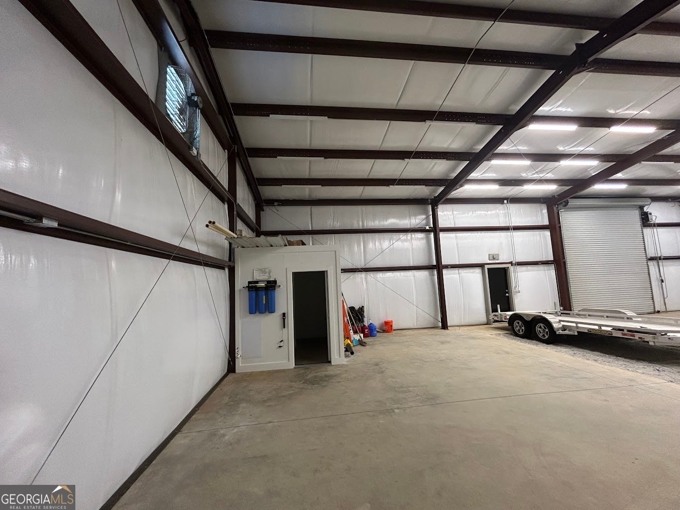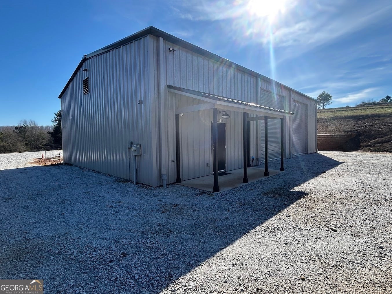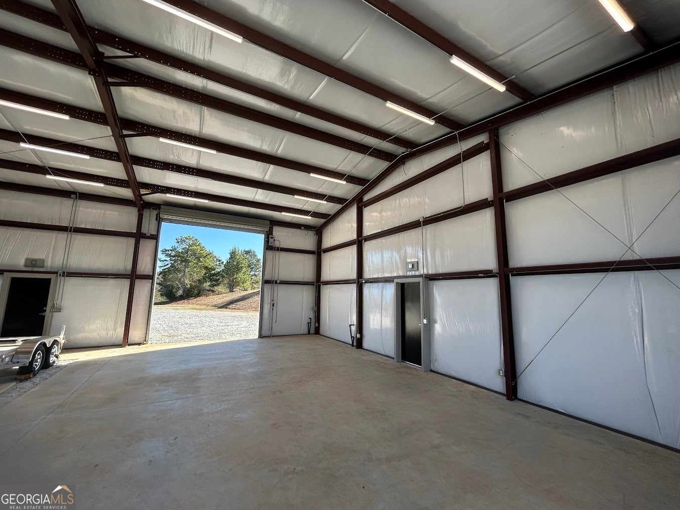 A quality constructed red iron workshop situated on approximately 12.54 acres, with additional adjoining acreage available for purchase. The structure measures approximately 50' x 60' and features 14' wall height with a 16' ceiling height at the ridge. Improvements include three automatic roll-up doors, two standard entry doors, full insulation, and a temperature-controlled exhaust system. The building is equipped with a full bathroom, alarm system with cameras, fiber optic internet service, electrical utilities, and a drilled well. The land offers rolling topography with great views. An additional 19.3-acre tract adjoining the property is currently listed for sale, providing an opportunity for expanded acreage. The property presents multiple potential uses, including the construction of a new residence or the conversion of the existing structure into a barndominium.