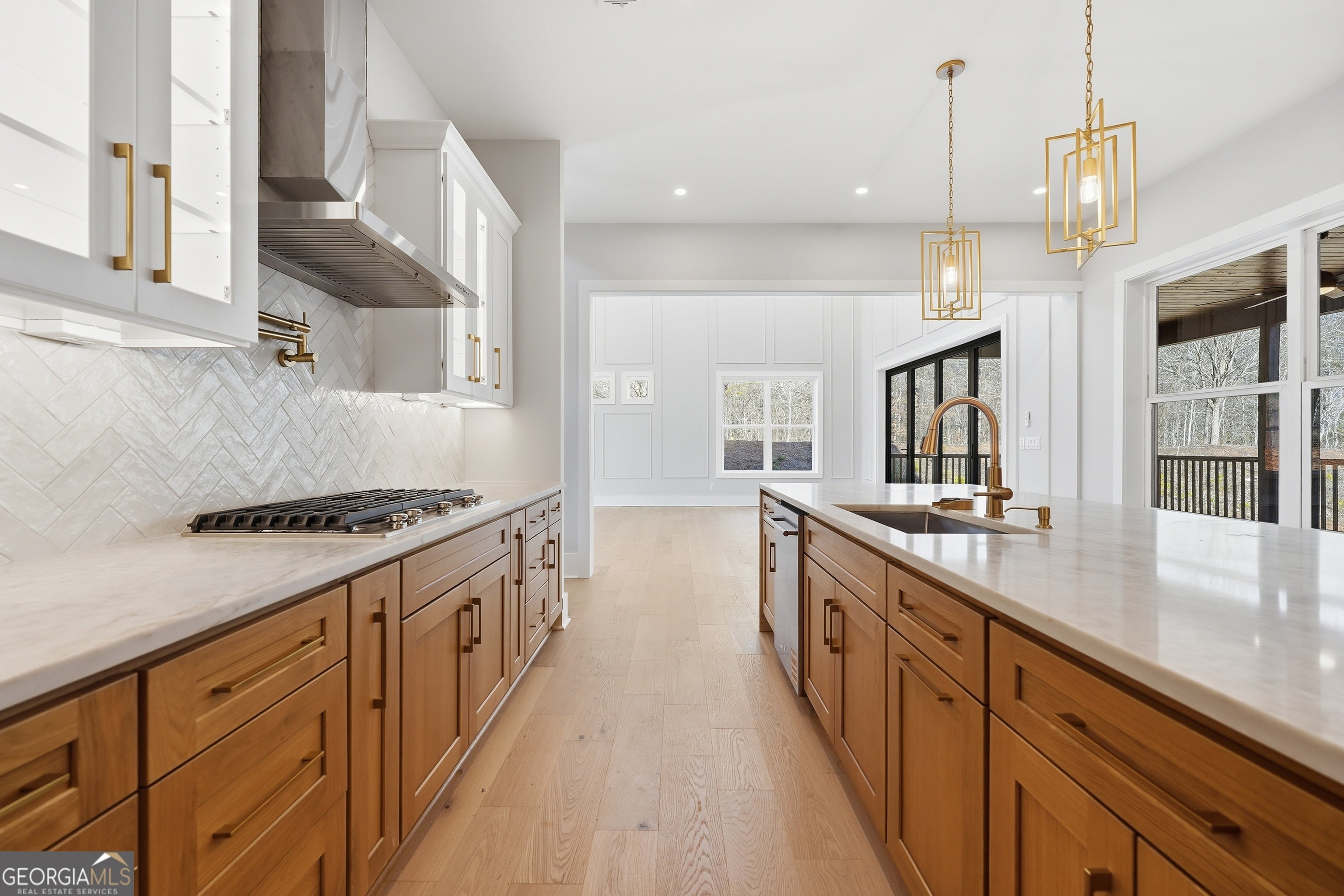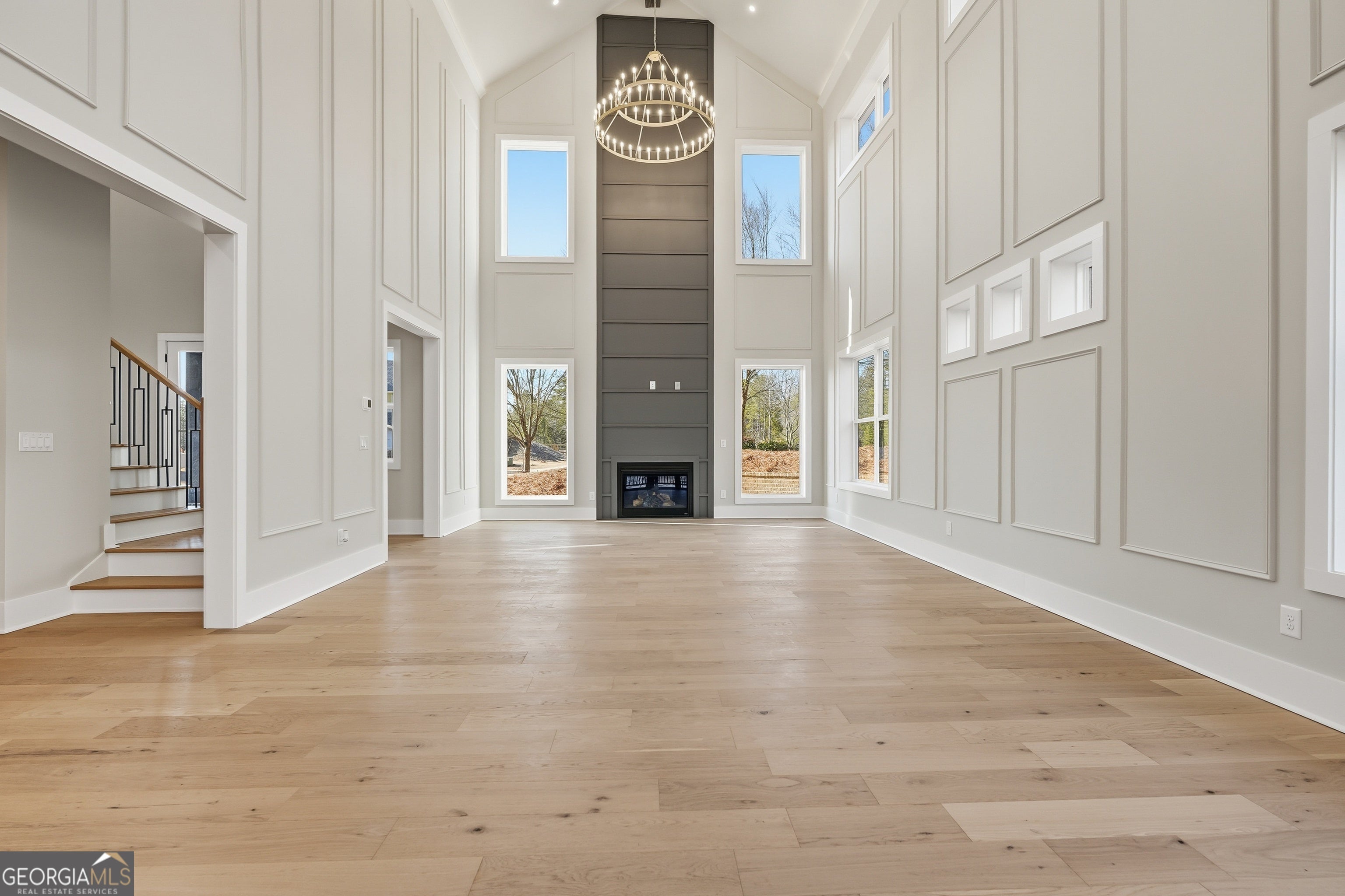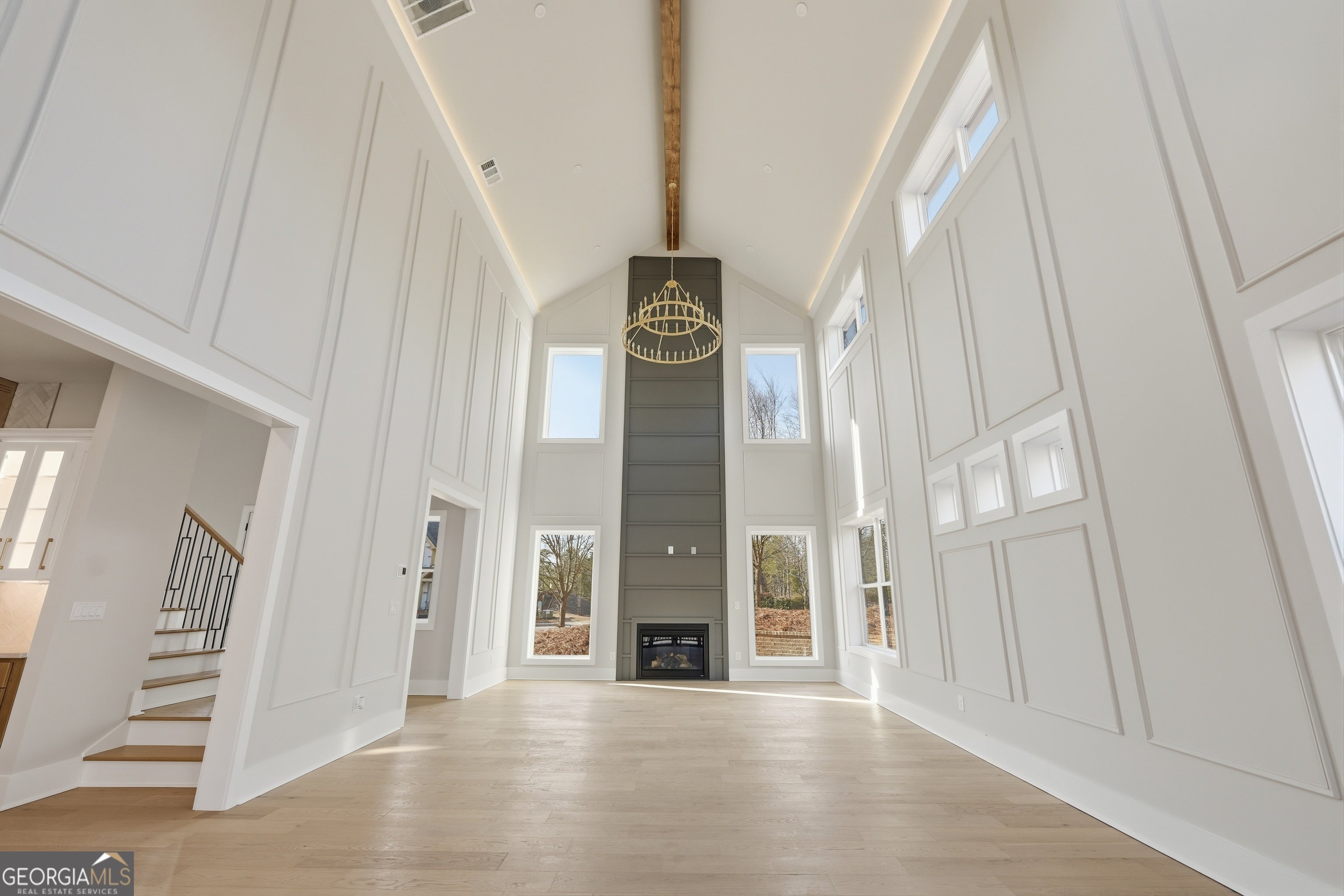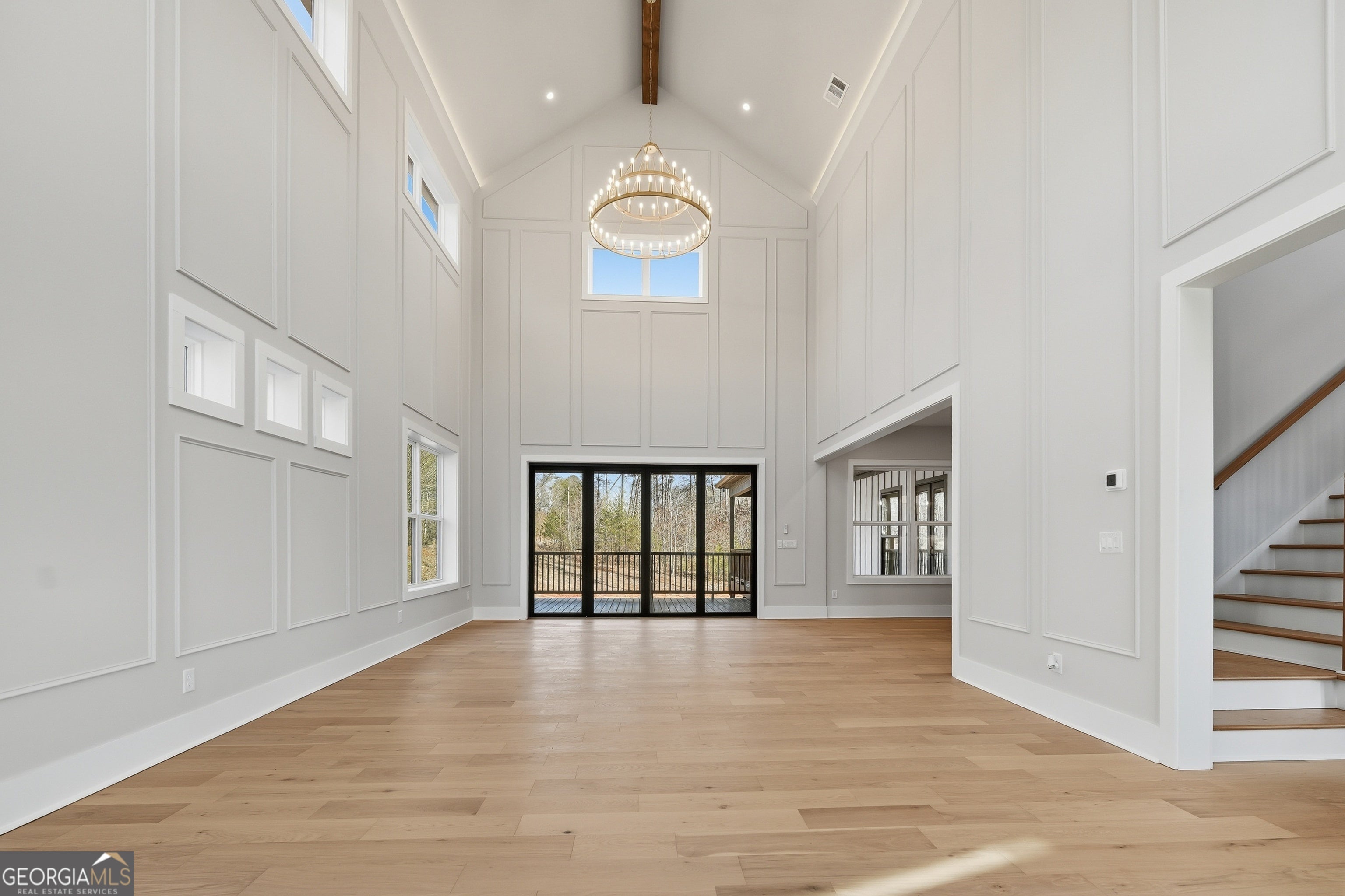 Welcome to 6003 Bluewater Blvd, Gainesville, GA, a stunning new construction home that blends modern farmhouse style with thoughtful craftsmanship. This beautifully designed residence features eye-catching curb appeal with board-and-batten siding, brick accents, and architectural rooflines that make a lasting first impression. Inside, the home opens to a bright, airy living space with soaring ceilings, expansive windows, and elegant trim details that adds warmth and character. Natural light floods the interior, highlighting the hardwood floors and upscale finishes throughout. Statement chandeliers and exposed wood beam create a perfect focal point for entertaining or relaxing. The exterior living space is equally impressive, offering a spacious covered back deck ideal for outdoor dining, gatherings, or enjoying peaceful views of the surrounding landscape. The walk-out lower level provides additional flexibility and potential for future living or recreational space. Thoughtfully designed with quality materials and modern style, this home offers the perfect balance of comfort, function, and timeless appeal-all nestled in a desirable Gainesville location. A must-see property that truly stands out.