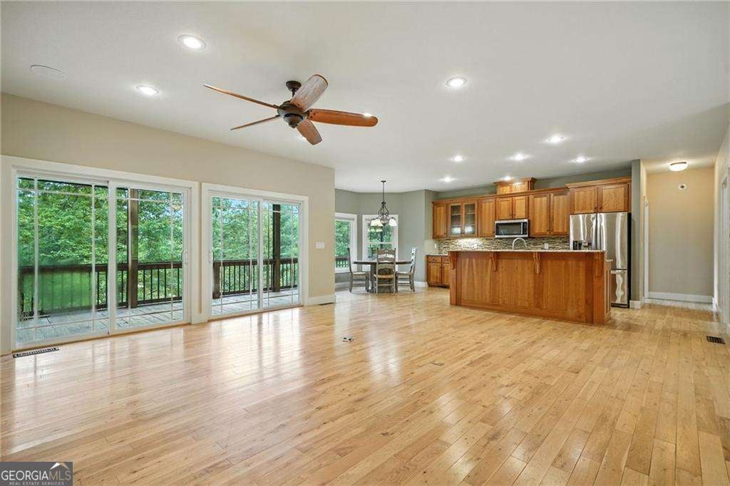Sprawling 5-bedroom, 3-bathroom ranch-style home situated on over 3 acres of peaceful Georgia countryside. Step inside to discover an open and inviting layout with custom features throughout. Generously sized bedrooms, a spacious living area that opens up to screened in porch, large stone fireplace, and a well-appointed kitchen with ample cabinet space and butler's pantry. Additional highlights include a primary suite with large ensuite bath on main level and has private access to back deck. The large rocking chair front porch and oversized back deck with large screened in area offer additional living space that is sure to be enjoyed year round as they offer the perfect spot to soak in the beauty of the surrounding area. The fully finished basement is a game changer and features a second kitchen, full bathroom, laundry room, bedrooms, and multiple flex spaces - perfect for extended family, guests, or entertaining. There is tons of storage throughout this home and ample parking room for boat or RV. Outside, you'll find even more to love: a large 2 story second garage with a full workshop offers an additional 1500 sq/ft, ideal for hobbyists, car enthusiasts, extra storage, or even a storm shelter. The workshop features concrete walls and steel trusses with a concrete ceiling. The expansive lot provides privacy, plenty of space for recreation, gardening, or even future expansion. Enjoy country living with all the conveniences just minutes away. The local Kerith House Winery is less than a mile away and we are 10 minutes from Blue Ridge, 20 minutes from Blairsville, and around 25 minutes from Ellijay! Whether you're looking for space to grow, work from home, or simply relax - this property offers it all and has room for more! Don't miss your chance to own this unique and versatile estate - schedule your private tour today!