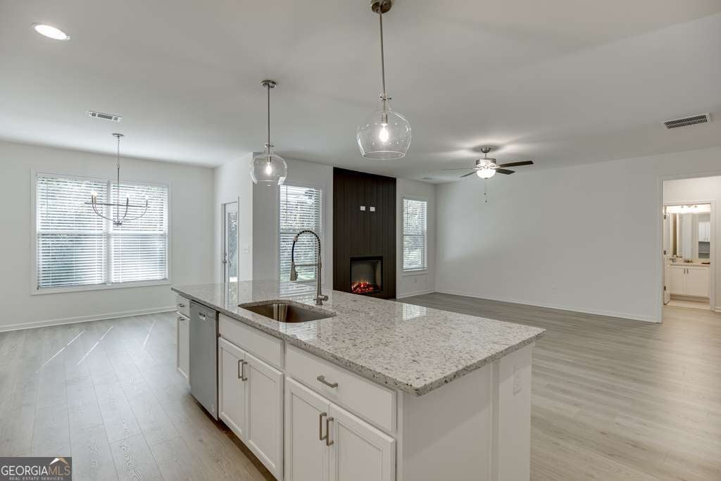 Come see this beautiful, like-new 5-bedroom, 3-bath home! This stunning residence features an open-concept floor plan perfect for modern living. The family room showcases a beautiful designer fireplace with a striking feature wall, creating a warm and inviting space. The spacious kitchen offers a large island, designer lighting throughout, and stainless steel appliances-ideal for cooking and entertaining. The primary suite includes tray ceilings and a luxurious ensuite bath with double vanities, a separate tub and shower, and a large walk-in closet. Additional highlights include a generously sized 3-car garage, freshly painted interior, and a covered patio with ceiling fan-perfect for relaxing outdoors. Zoned for Jefferson Elementary, Middle, and High School. Pets are considered with approval and pet deposits. This is a must-see home-schedule your tour today!
