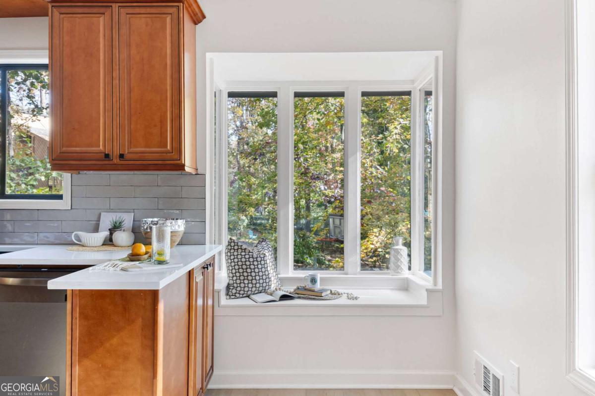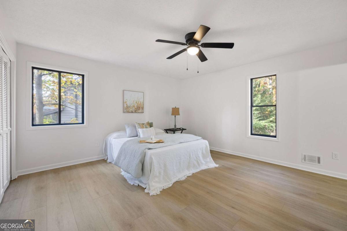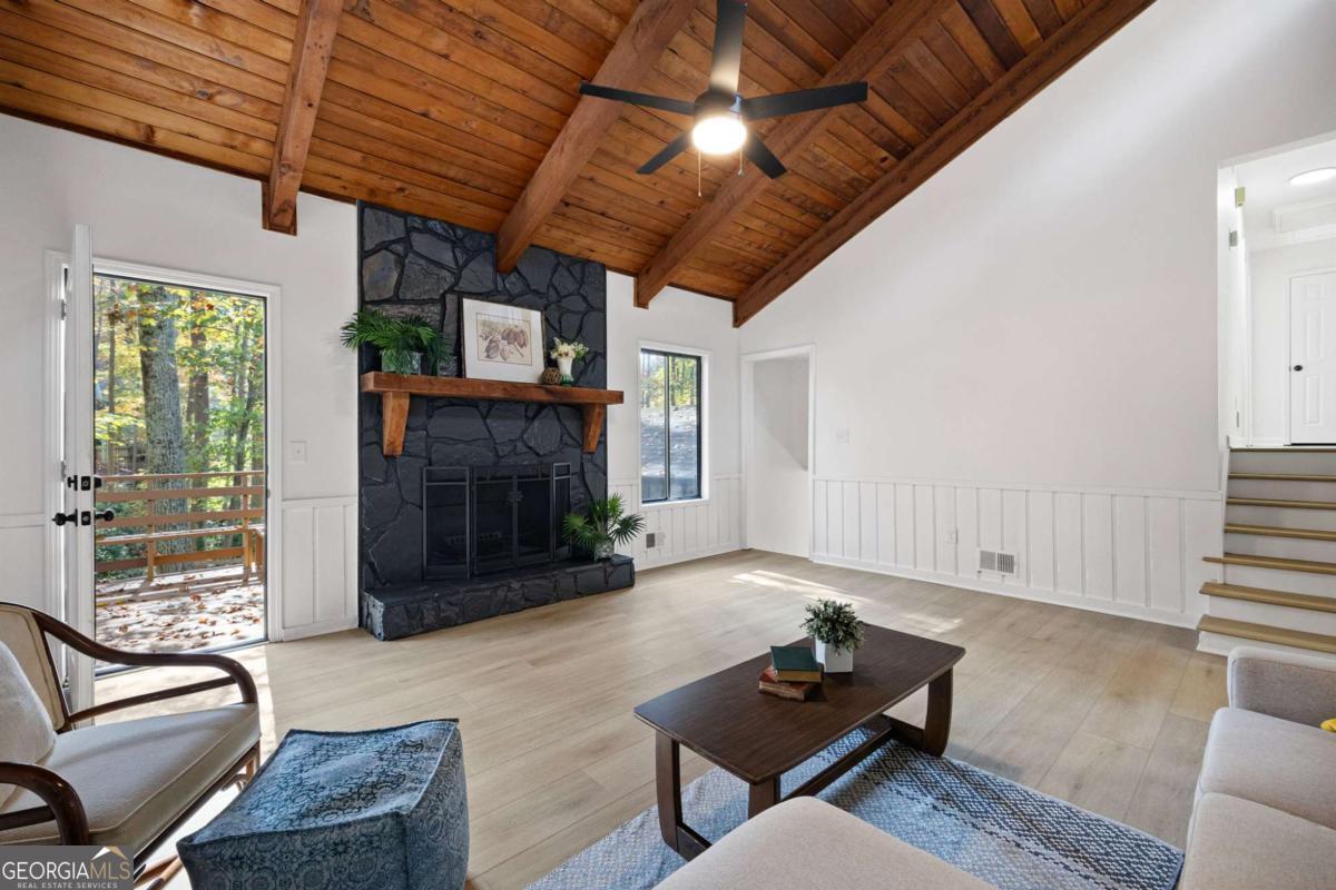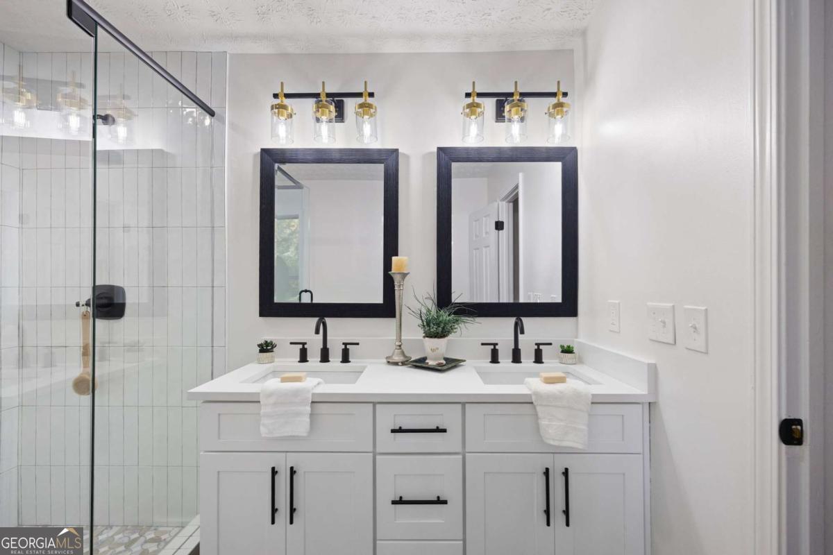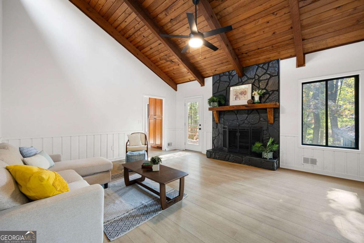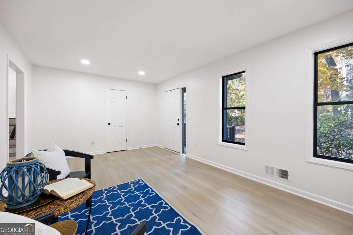 Welcome to this beautifully updated 4-bedroom, 3-bath home with 2,452 sq. ft., nestled on a quiet cul-de-sac lot with a spacious backyard and screened-in porch perfect for entertaining or relaxing. Step inside to find a bright, open layout featuring a stunning vaulted beam ceiling in the great room, fresh interior and exterior paint, all new flooring, and modern light fixtures throughout. The chef's kitchen boasts custom wood cabinetry, quartz countertops, tile backsplash, built-in pantry, custom window seat, and brand-new stainless steel appliances. The primary suite offers a spa-like retreat with a custom tile shower, quartz vanity, and designer finishes. Additional highlights include a versatile media/family room on the lower level, two laundry rooms for convenience, and a two-car garage. Located in an established neighborhood and zoned for the highly desirable Pope High School, this home blends modern style, functionality, and location all in one. ?? Don't miss your chance to make this move-in ready home yours!