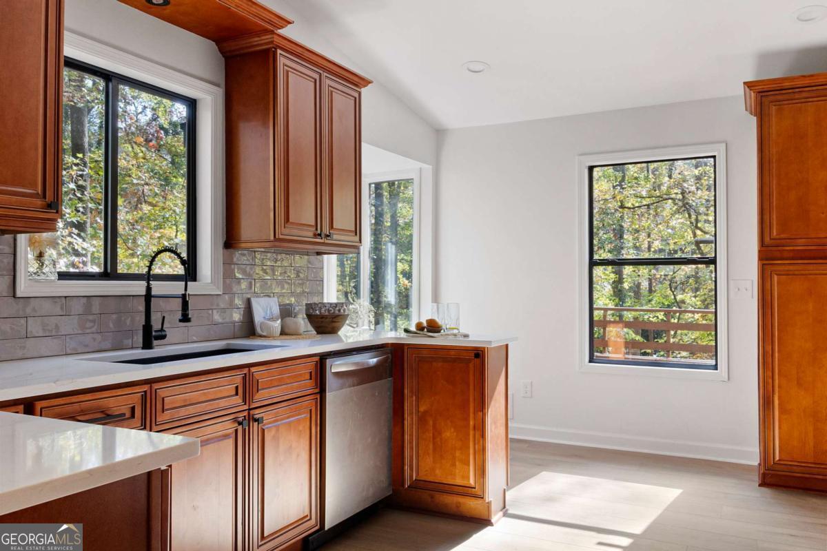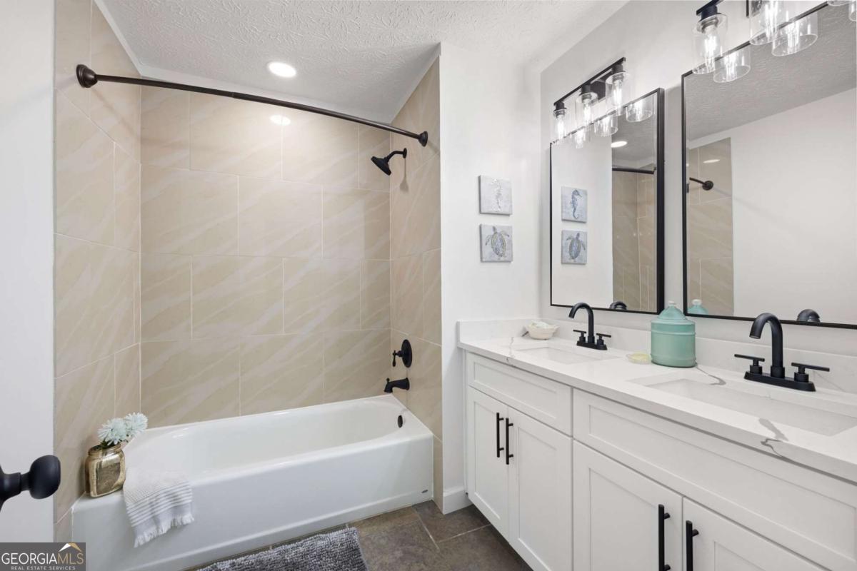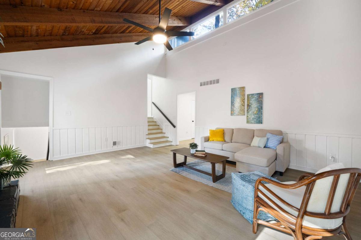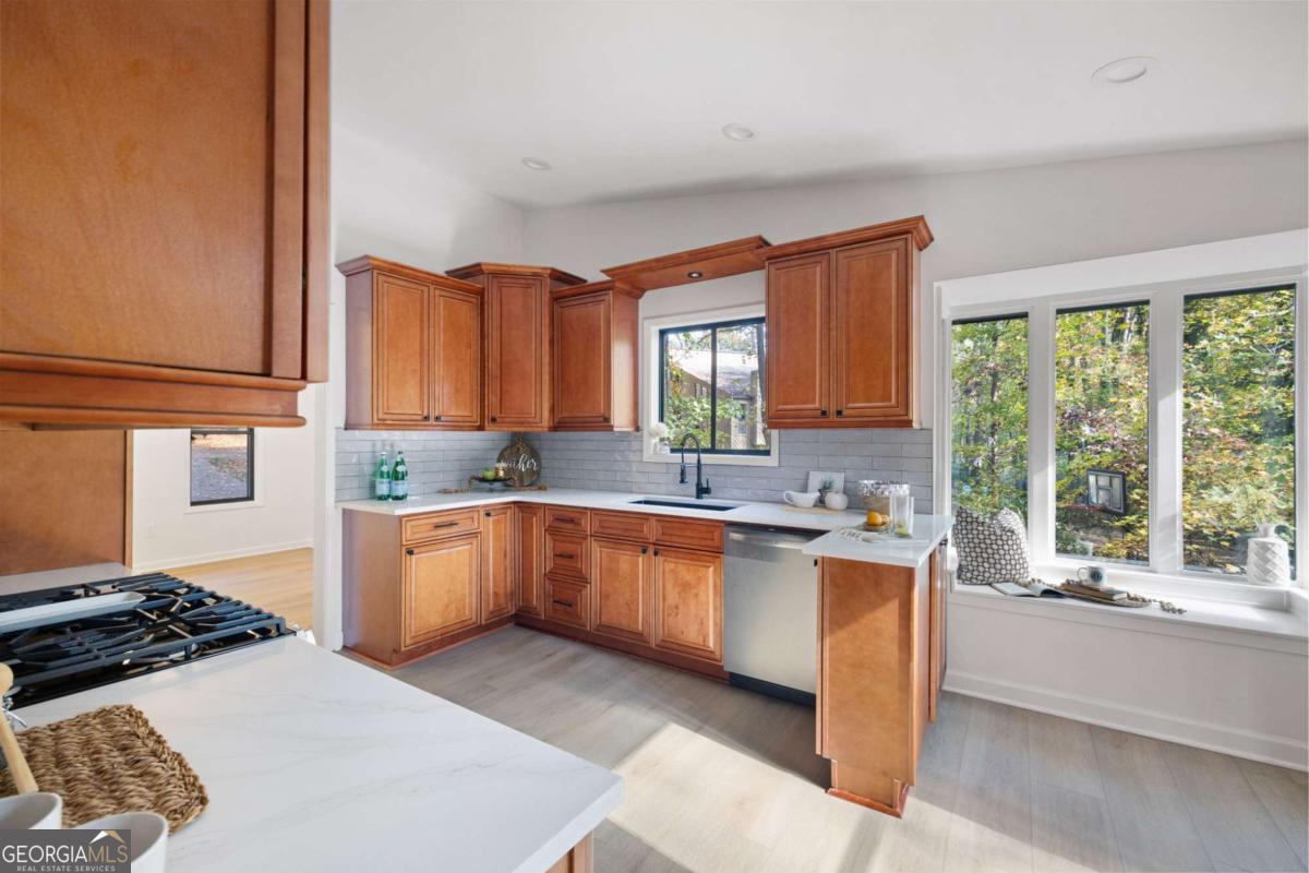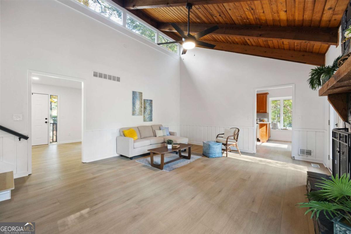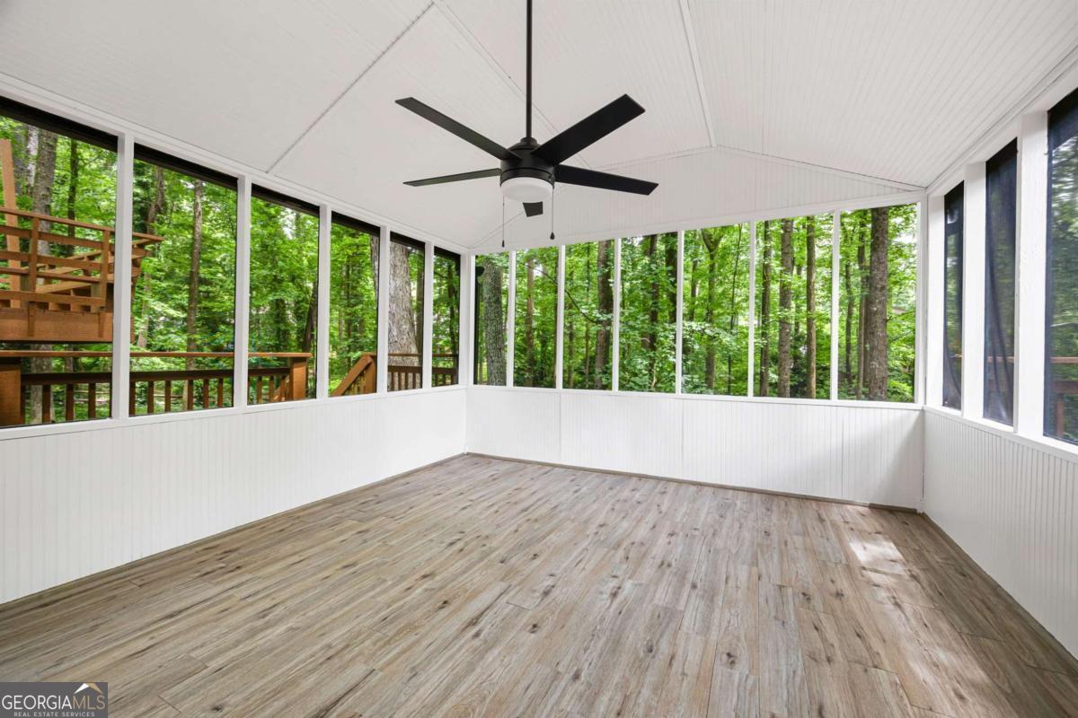 Welcome to this beautifully updated 4-bedroom, 3-bath home with 2,452 sq. ft., nestled on a quiet cul-de-sac lot with a spacious backyard and screened-in porch perfect for entertaining or relaxing. Step inside to find a bright, open layout featuring a stunning vaulted beam ceiling in the great room, fresh interior and exterior paint, all new flooring, and modern light fixtures throughout. The chef's kitchen boasts custom wood cabinetry, quartz countertops, tile backsplash, built-in pantry, custom window seat, and brand-new stainless steel appliances. The primary suite offers a spa-like retreat with a custom tile shower, quartz vanity, and designer finishes. Additional highlights include a versatile media/family room on the lower level, two laundry rooms for convenience, and a two-car garage. Located in an established neighborhood and zoned for the highly desirable Pope High School, this home blends modern style, functionality, and location all in one. ?? Don't miss your chance to make this move-in ready home yours!