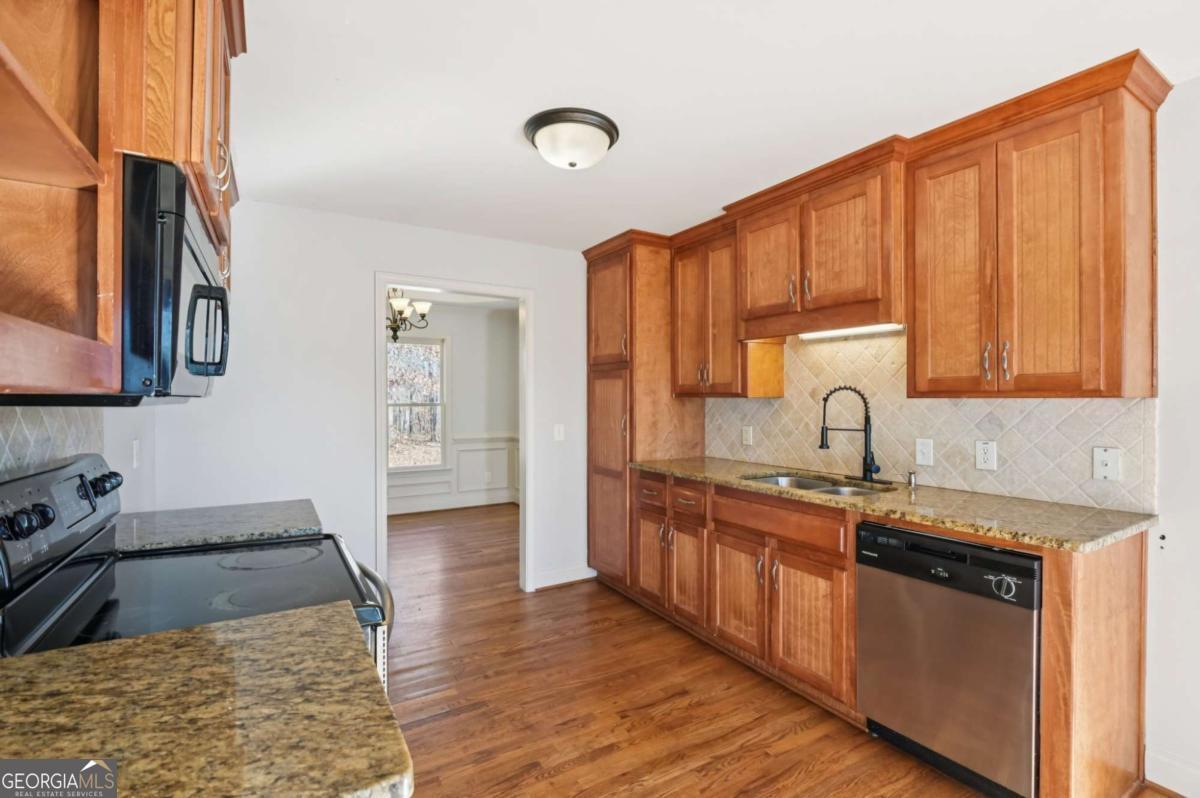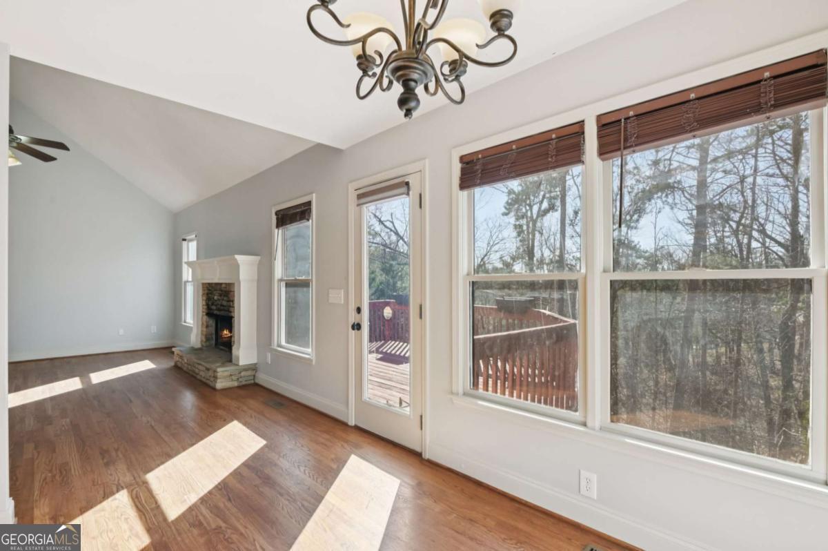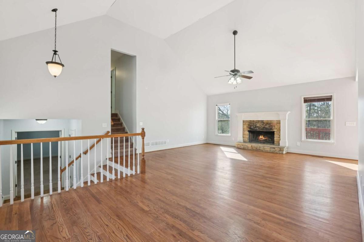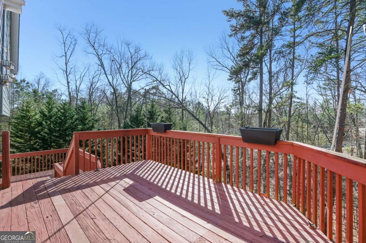 Beautiful 4-bedroom, 3-bath single-family home located in desirable Haynes Crossing! This stately home welcomes you with a huge Southern-style front porch-perfect for relaxing on cool Georgia evenings. Inside, hardwood floors run throughout the main living areas, including a formal dining room with a tray ceiling and ample space for entertaining. The bright and open family room features a vaulted ceiling and wood burning cozy fireplace, creating a warm and inviting atmosphere. The spacious kitchen offers a breakfast area, tile backsplash, granite countertops, and stainless steel appliances. Huge MIL/guest suite has a door that closes it off to the rest of the home with a living space, bedroom, full bath, and laundry room. Upstairs, retreat to the primary suite with an en-suite bath featuring dual vanities, a soaking tub, and a separate glass-enclosed shower. 2 additional bedrooms provide plenty of space for everyone! The large garage and unfinished basement offer abundant storage and endless possibilities-perfect for a man cave, craft room, home office, or more! The basement includes a walkout to the side yard. Enjoy a spacious backyard backing up to woods for ultimate privacy and a spacious deck to enjoy it all. No HOA! Conveniently located with an easy commute to Canton and Cartersville. Book your tour today!
