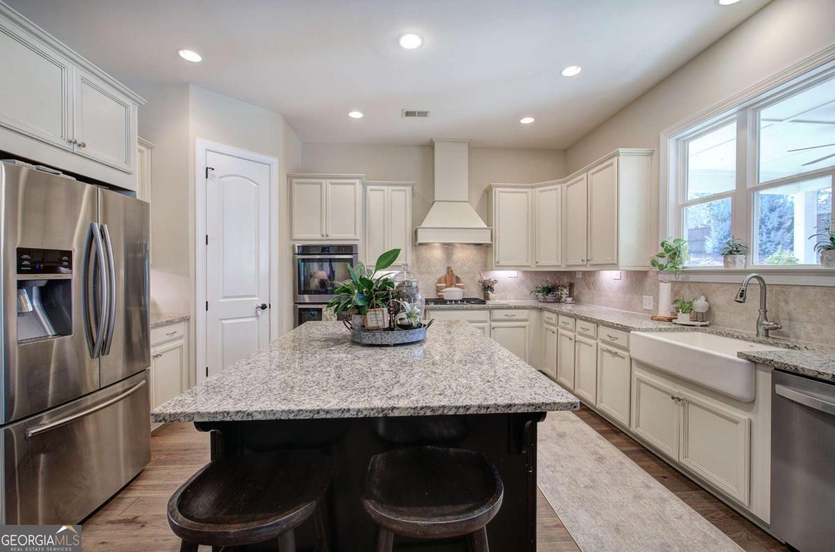 JUST REDUCED! Welcome to this exceptional, custom-built luxury residence nestled on a private cul-de-sac lot in the highly coveted McClure Farms community. Just 7 years new, this impressive home offers 5-6 expansive bedrooms (huge bonus room could be a bedroom as well) and 4 beautifully appointed full baths, showcasing refined finishes, upscale design, and generous square footage throughout. Thoughtfully designed for entertaining and everyday living, this beautiful home features open-concept living spaces, soaring ceilings, and timeless architectural details that reflect true custom craftsmanship. When entering the 2 story foyer, you are met with the perfect office/library to the right and a spacious formal dining room the left. Further, opens to the gorgeous coffered ceiling living room with custom built ins surrounding a stately fireplace....the living room opens directly to the gourmet kitchen. The kitchen is truly the heart of this home! The large kitchen island anchors the kitchen...with a spacious keeping room w/ beautiful beamed cathedral ceiling and fireplace as the perfect place to relax and unwind...step off the kitchen/keeping room to a lovely covered porch overlooking beautifully professionally landscaped back yard...complete with amazing fire pit area...perfect for those chilly nights. The 3-car garage (2 car attached and 1 detached w/ breezeway) provides abundant space for vehicles, storage, and hobbies. Located in the convenient, sought after Acworth area, McClure Farms is known for its prestigious setting, sense of community, and prime location near top-rated schools (Frey, McClue and Allatoona)...and only minutes from amazing restaurants and shopping. McClure Farms includes spectacular amenities; clubhouse, pool, kiddie pool and playground. This home and neighborhood delivers the perfect blend of luxury, comfort, and modern sophistication in one of Acworth's most desirable areas. This is a rare opportunity to own a nearly new, custom-crafted home where elegance meets livability.