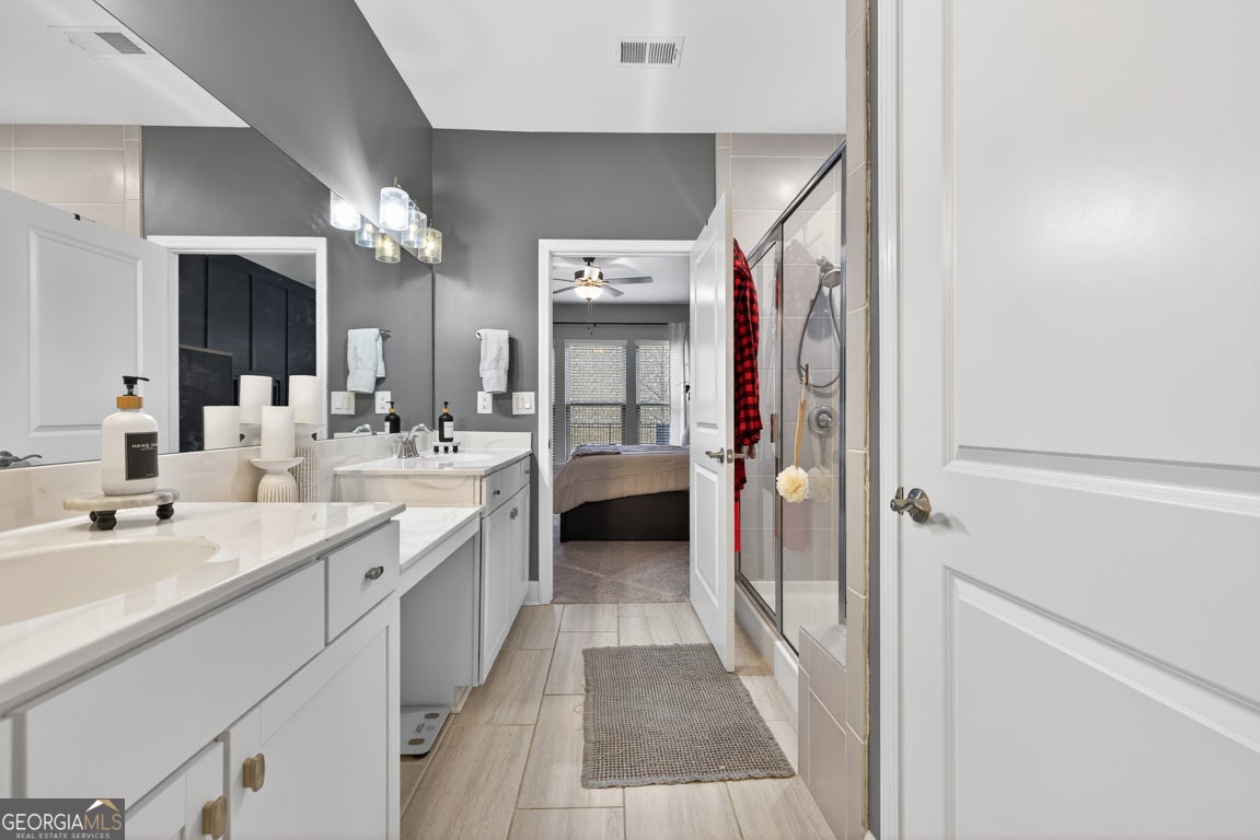 - Interior FeaturesDouble Vanity, High Ceilings, Master On Main Level, Tile Bath, Walk-In Closet(s), Pulldown Attic Stairs