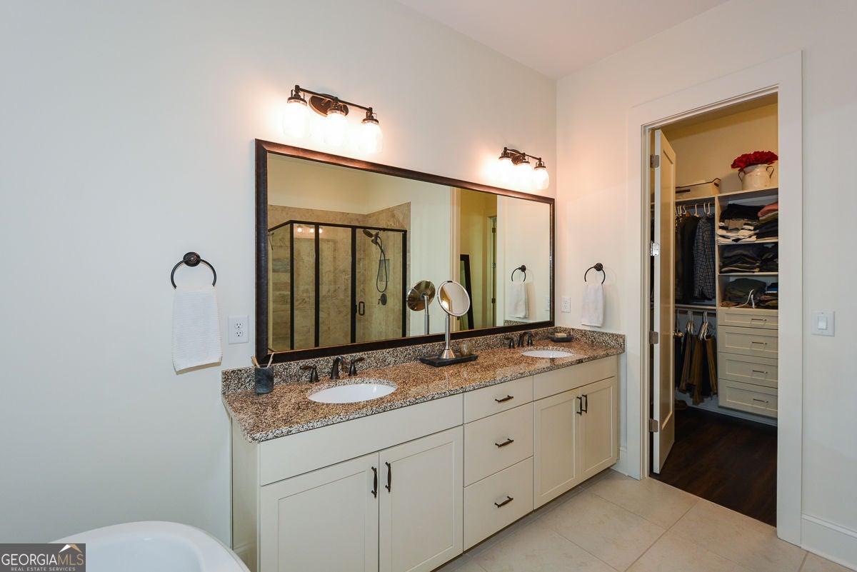 - Interior FeaturesBeamed Ceilings, Double Vanity, High Ceilings, Walk-In Closet(s)