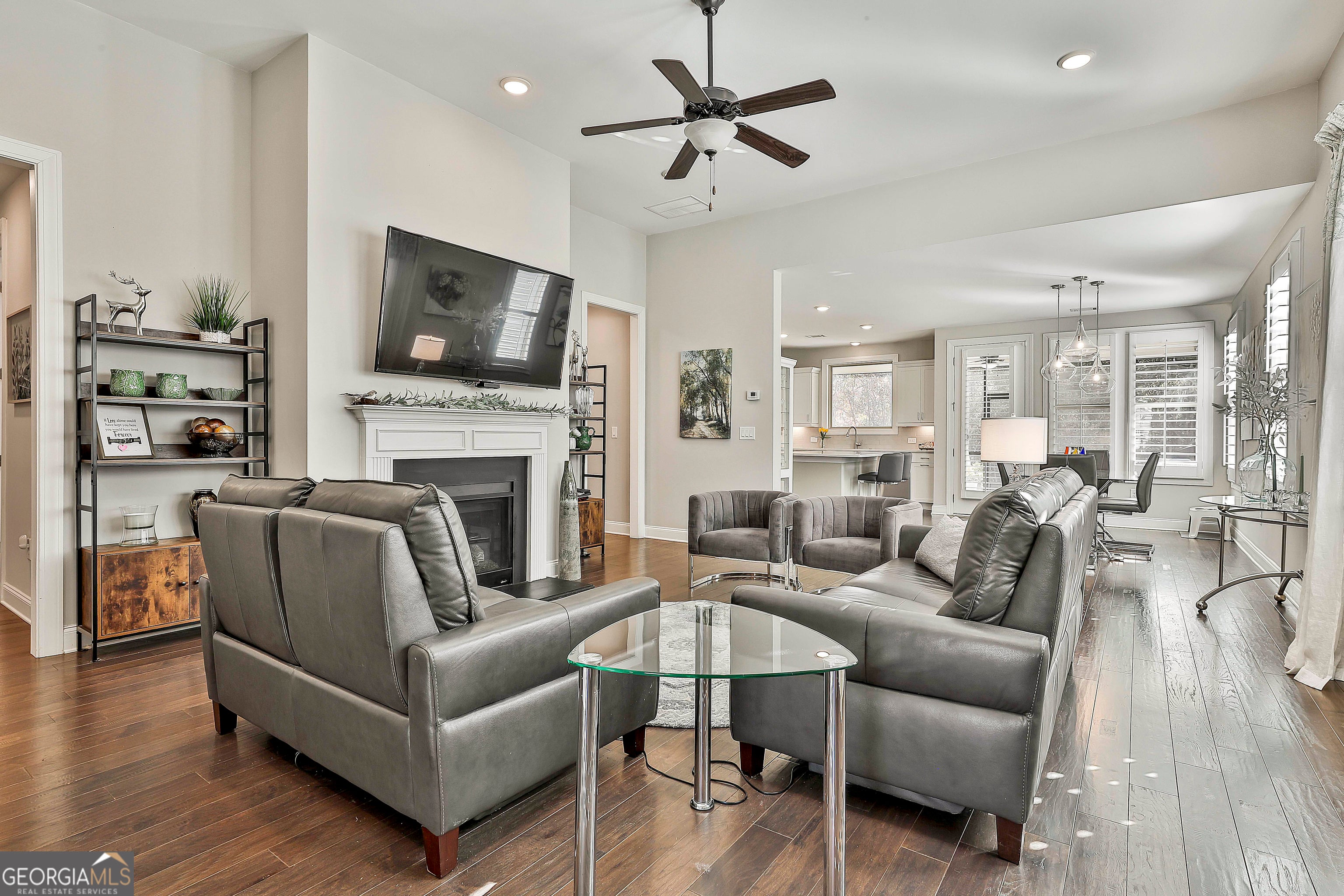 Welcome to this beautiful Cresswind Dogwood floorplan, offering 3 bedrooms, a dedicated office, and thoughtful upgrades, all located in one of Peachtree City's most desirable active adult communities. Step inside to a welcoming entry where a private office with double doors provides the perfect space for working from home or quiet reading. The open floorplan flows into the living room, highlighted by a cozy fireplace and abundant natural light. The kitchen is a standout with an island featuring bar seating, a gas range, ample cabinetry, and a walk-in pantry. The main level primary suite offers a relaxing retreat with tray ceilings and an en suite bathroom complete with dual vanities, a spacious walk-in shower, and a custom walk-in closet with built-in organizers. A second bedroom and full bathroom are conveniently located on the main level. Upstairs, you'll find an additional room with a closet and a full bathroom, perfect for extended stays or a private bonus space. Outside, enjoy the screened-in porch with ceiling fan overlooking a fenced backyard, offering a peaceful setting for morning coffee or evening relaxation. Additional highlights include built-in cabinetry in the laundry room, plantation shutters throughout, and engineered hardwood floors in the main-level bedrooms. Living in Cresswind means enjoying resort-style amenities, including a clubhouse, multiple pools, a fitness center, community garden, and more. Southeast Mortgage is our preferred lender. If buyer chooses to work with them, Southeast Mortgage will provide 1% credit up to $5,000. Reach out to the listing agent for more information.
