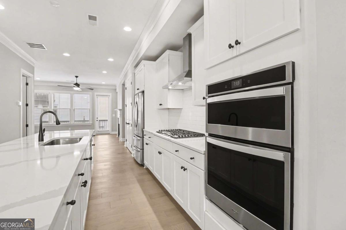 Welcome home to this nearly new and very well maintained 4 sided brick townhome located in a gated community just moments from all of the wonderful shopping, dining, and community amenities that Brookhaven has to offer! Very close to Town Brookhaven, Brookhaven Village, MARTA, and Buckhead shopping districts. This traditionally styled townhome is perfectly located overlooking Halstead's central green common area while providing a combination of convenience and luxury living! The home has thoughtful touches including an open concept floorplan that is ideal for easy living or entertaining guests, extended height ceilings, walls of windows, and beautiful neutral-toned wood flooring. Your living room has a built-in fireplace that is flanked by art/display coves and opens to a large deck that is perfect for those wonderful times outdoors. The centrally located kitchen is adorned with an oversized island, stainless steel appliances, and solid surface countertops & backsplash. The large dining room, powder room, and extended pantry/closet space finish up the main level living area. Retreat upstairs to your large owner's suite that is finished with a treyed ceiling and a wall of windows with privacy blinds in place. The primary bathroom has a wonderful walk-in closet, dual vanities, and a large shower with a frameless glass door. Another bedroom with its ensuite bath and large closet is just past the centrally located dedicated laundry room. The terrace level offers even more options with its ensuite bedroom/office/ flex space, 2 more additional storage spaces, and your private 2 car garage access.