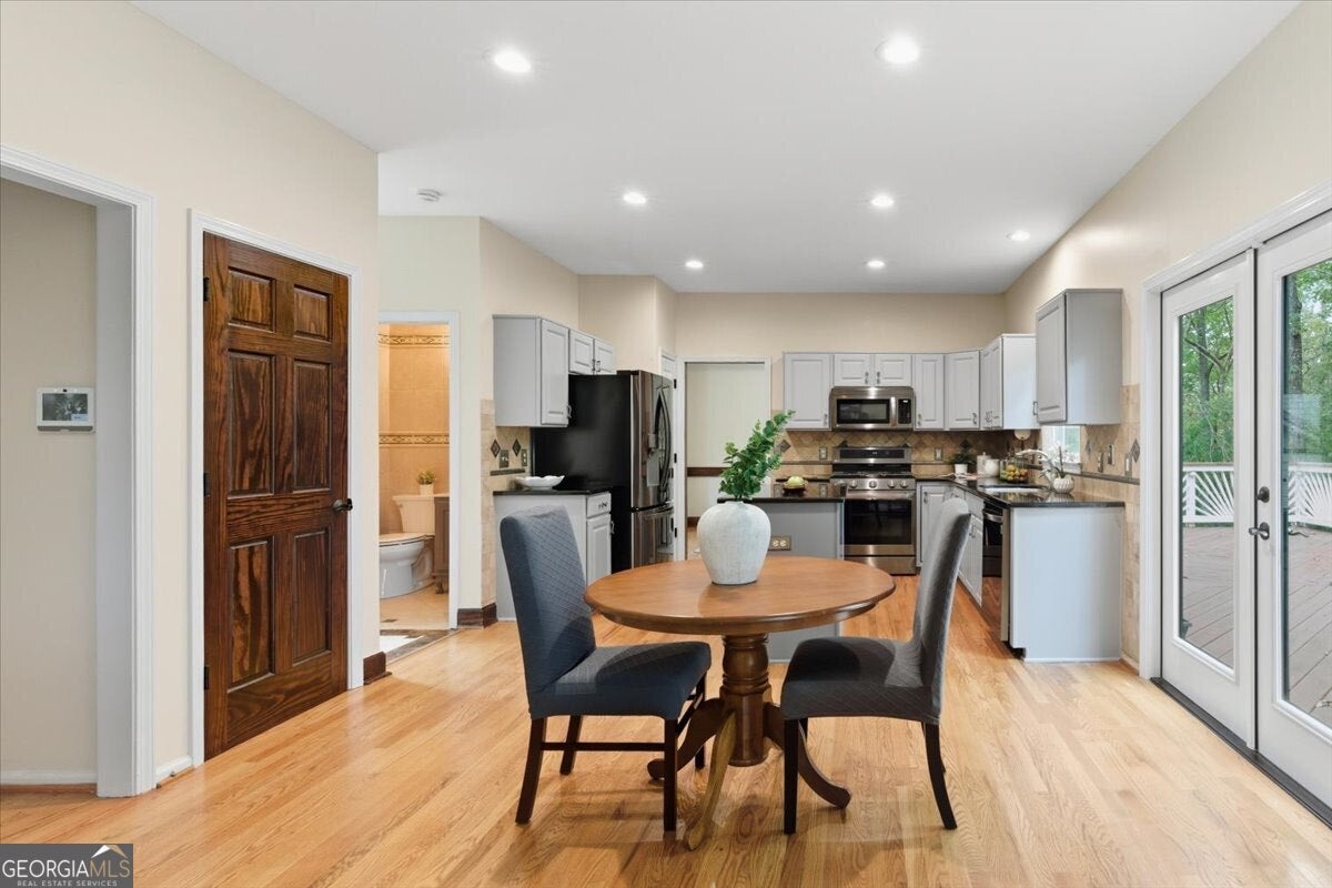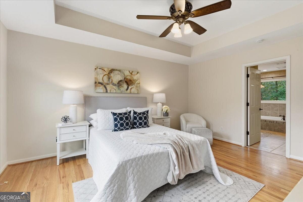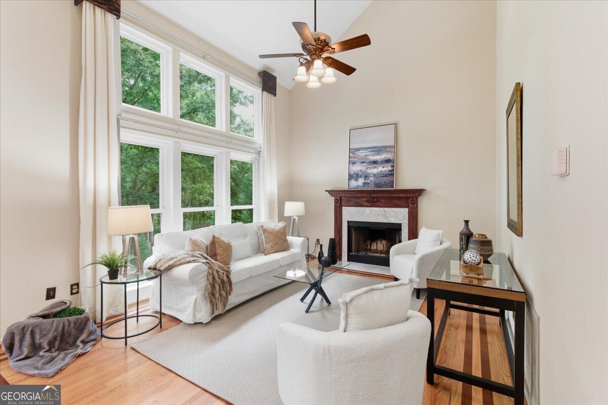 Welcome home to the perfect blend of charm, comfort, and convenience in the heart of Alpharetta. This beautifully maintained 3-bedroom, 3.5-bath residence offers over 3,100 square feet of thoughtfully designed living space and is truly move-in ready - a rare turn-key opportunity in one of North Atlanta's most desirable communities. From the moment you arrive, the home makes a striking impression with a modern exterior renovation completed in May 2024, featuring double French front and deck doors, chic board-and-batten detailing, hardie plank siding, and fresh paint. Inside, abundant natural light fills the expansive two-story living room, enhanced by all-new windows replaced within the last three years, creating an inviting space ideal for both everyday living and entertaining. The main level boasts a well-appointed layout with a formal dining room, a dedicated home office, and a beautifully updated kitchen featuring a full black stainless steel appliance package added in March 2021 and a gorgeous 2 story family room with large windows and stunning fireplace. Upstairs, the private primary suite serves as a serene retreat with rich hardwood floors, a tray ceiling, and generous space to unwind. Two additional bedrooms and a full bath complete the upper level. The fully finished basement offers exceptional versatility - perfect for a media room, home gym, playroom, or man cave. With a full bathroom already in place, this space can easily be converted into a fourth bedroom or private guest suite. Step outside to your own backyard oasis, set on one of the largest and most private lots in the neighborhood. The professionally landscaped yard is fully fenced and features irrigation in both the front and back, a charming gazebo, and a storage shed - ideal for relaxing, entertaining, or play. Enjoy morning coffee on the deck, weekend barbecues, and peaceful outdoor living year-round. Additional highlights include a newer garage door, built-in overhead garage storage for seasonal decor, and the pride of long-term single-family ownership. The neighborhood is home to the beloved Piranhas swim team, fostering a vibrant and connected community atmosphere. Located within the top-rated New Prospect Elementary, Webb Bridge Middle, and Alpharetta High school district, and just minutes from GA-400, Avalon, and downtown Alpharetta, this home delivers both lifestyle and location. Thoughtfully updated, beautifully maintained, and ideally located - this is Alpharetta living at its finest.