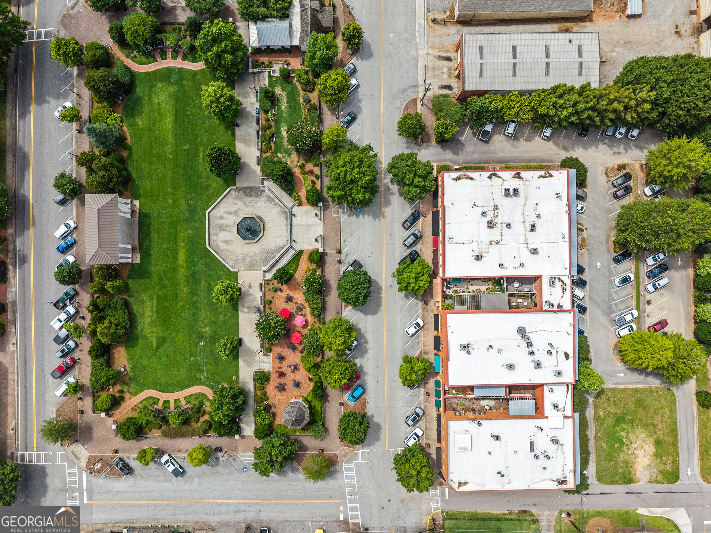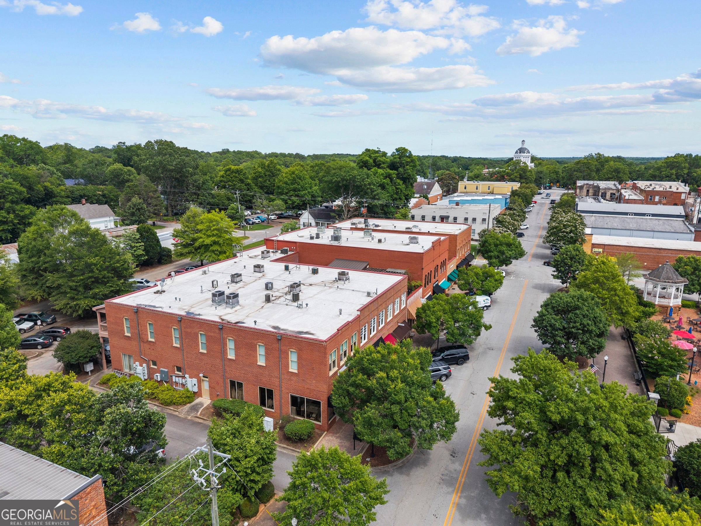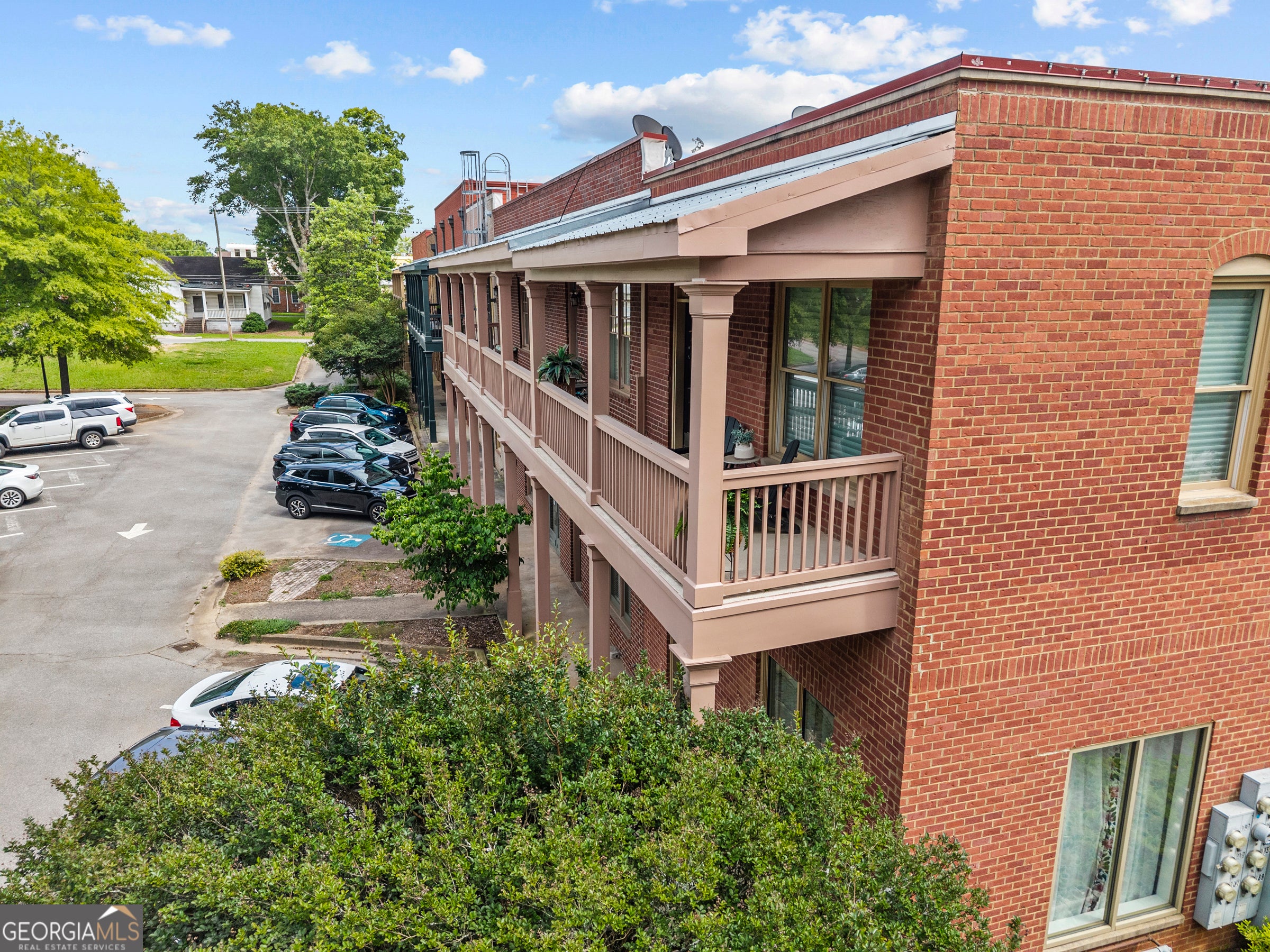You won't need a car! Uptown living in one of Architectural Digest's "100 Most Beautiful Small Towns" - welcome to super walkable Madison, Georgia. This rare 2-bedroom, 3-full-bath condo overlooks Madison's charming Town Park and offers the unique opportunity to live in the heart of downtown. From your doorstep, enjoy trails, boutique shopping, concerts, fine dining, and so much more. Designed for carefree, low-maintenance living, this home features a secure building entrance and elevator access for ultimate convenience. As an end unit, it's filled with natural light and enhanced privacy - a standout feature compared to others in the building. Inside, you'll find elegant tile flooring throughout, custom built-ins for storage, a cozy gas fireplace, and beautiful tumbled glass accents. Both bedrooms are ensuite with generous closet space. A separate den provides flexibility for a home office, media room, or guest space, with its own full bath nearby. Additional highlights include 10-foot ceilings, custom window treatments, arched hallway entries, stunning light fixtures, and a wide foyer that opens into a spacious living area with an open-concept kitchen and dining nook. The kitchen features a marble tile backsplash, stainless steel appliances, and ample counter space. Step outside to enjoy summer evenings on the assigned outdoor patio space- perfect for grilling, gardening, or simply relaxing. Turnkey/ Peace of mind updates include- New Carrier HVAC systems installed in winter 2022, All windows and surrounding infrastructures (where necessary) were replaced in July 2022, The gas hot water heater replaced in spring 2023, A GE refrigerator was installed in January 2025. In a town known for its charm and beauty, this is your chance to live stylishly and comfortably in the very center of it all - historic downtown Madison. Information deemed accurate, but buyers must do due diligence. --