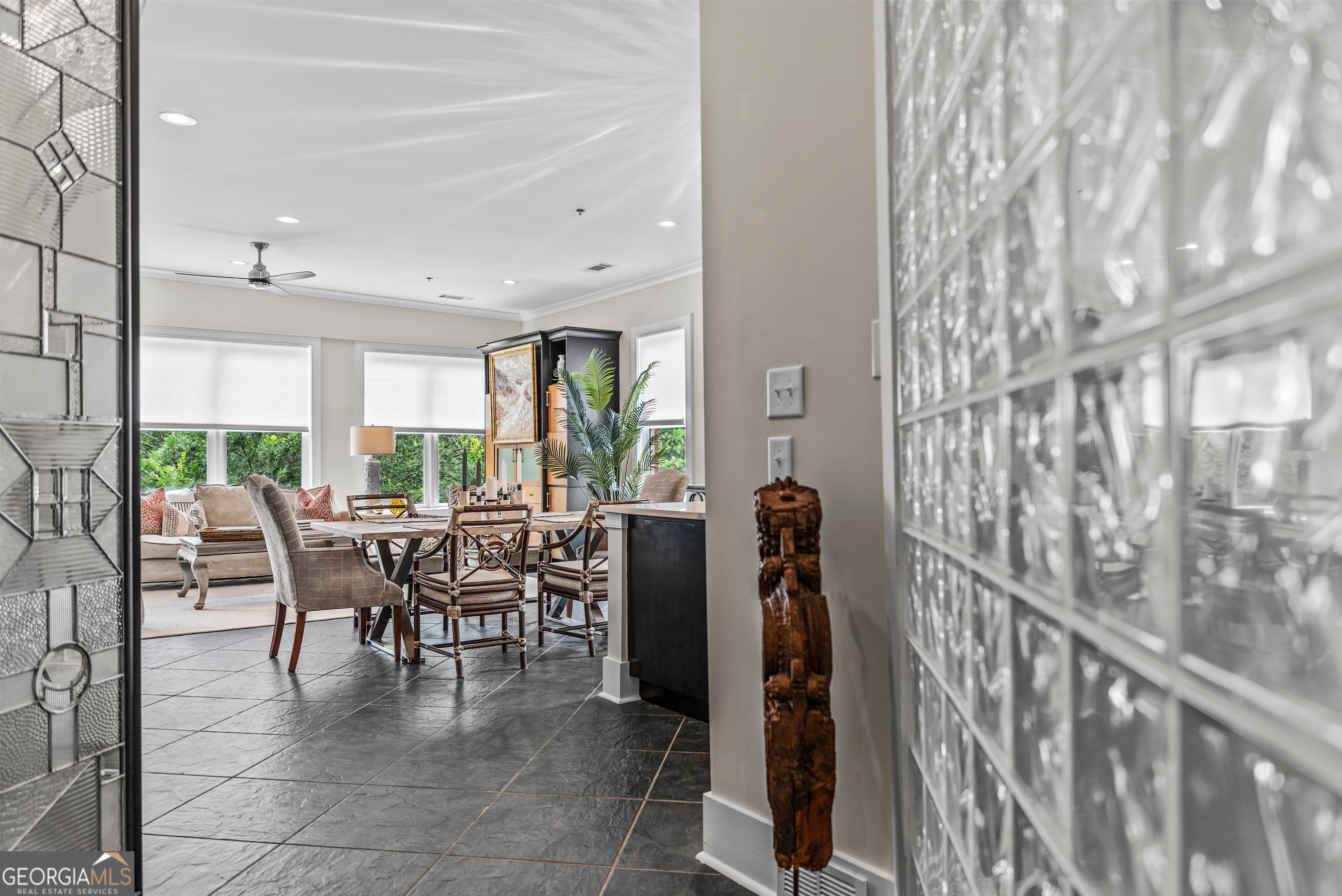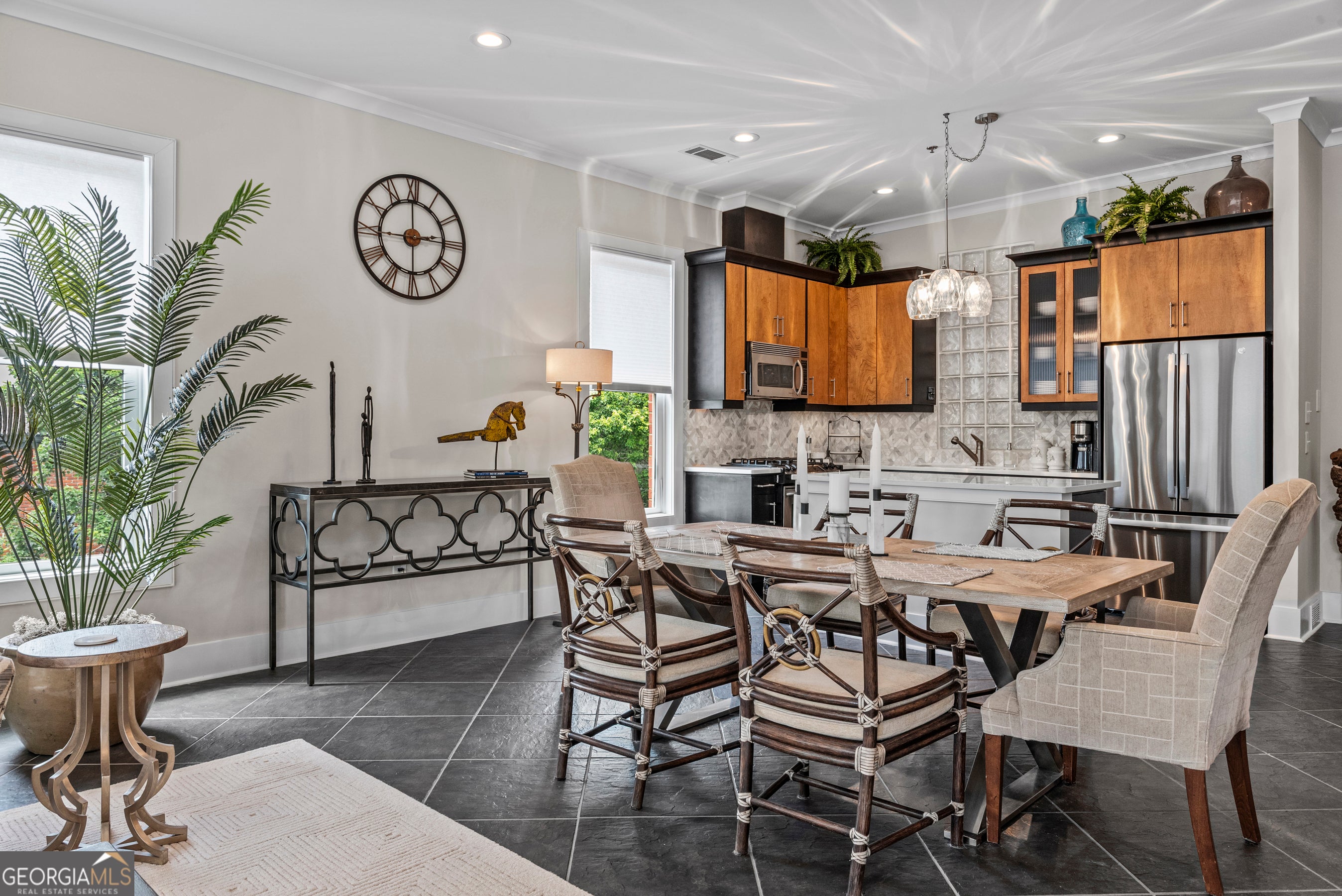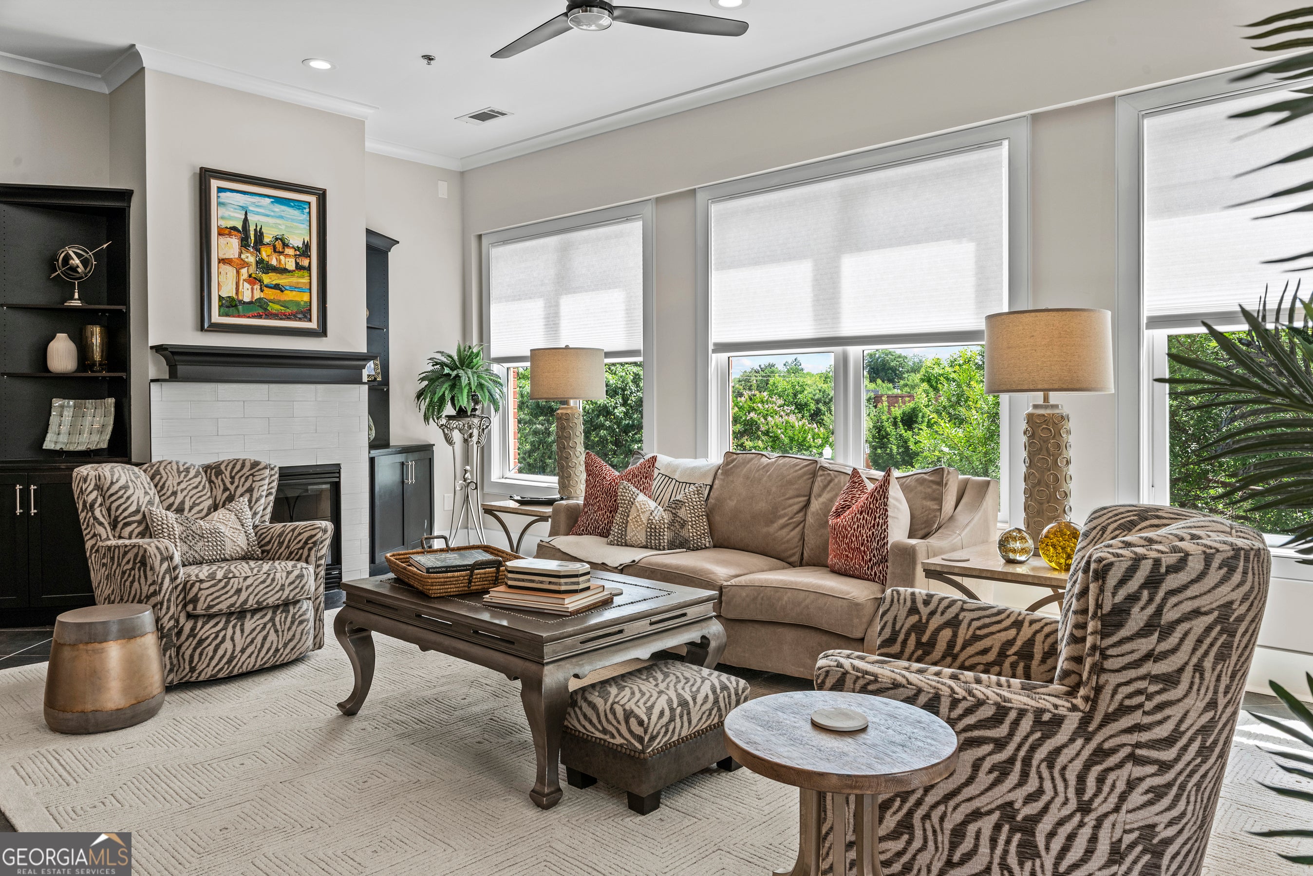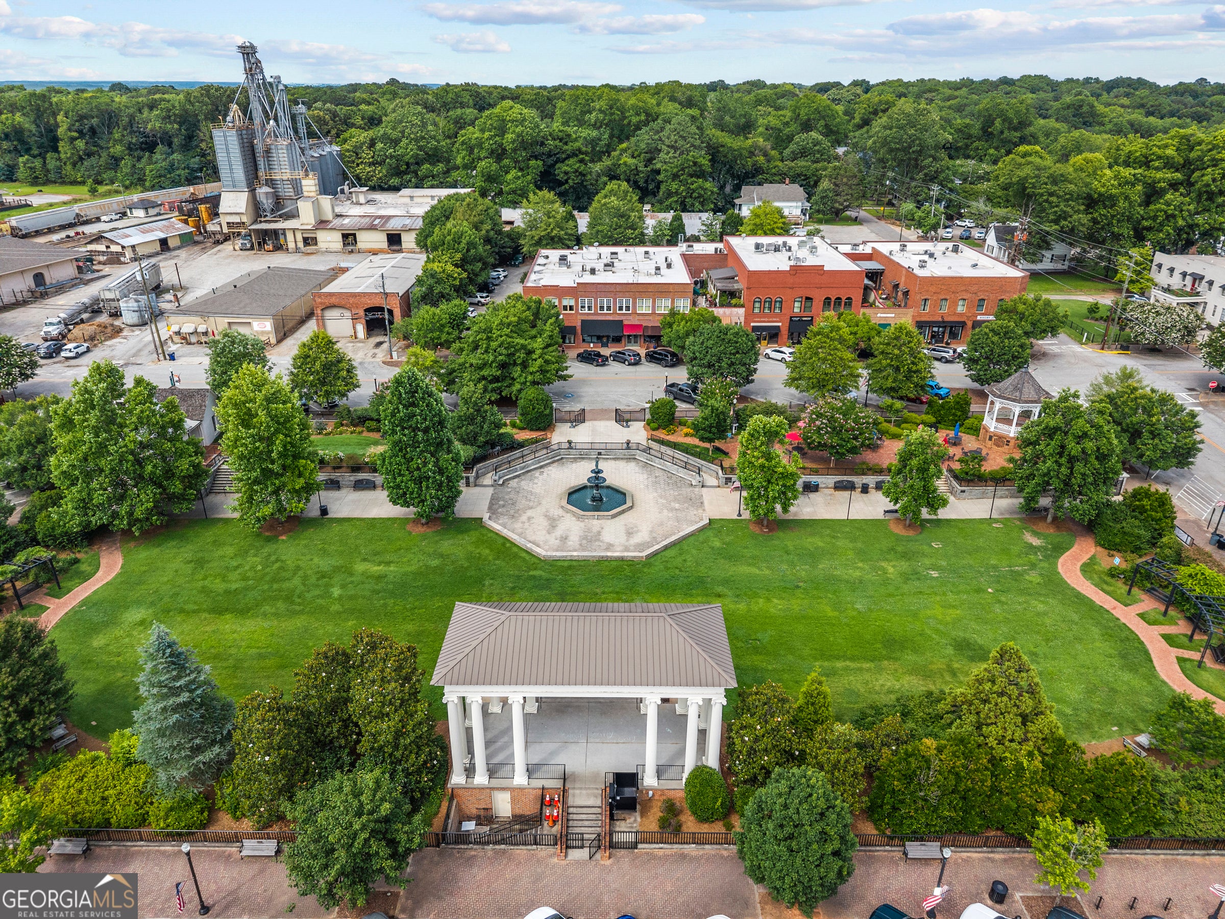 You won't need a car! Uptown living in one of Architectural Digest's "100 Most Beautiful Small Towns" - welcome to super walkable Madison, Georgia. This rare 2-bedroom, 3-full-bath condo overlooks Madison's charming Town Park and offers the unique opportunity to live in the heart of downtown. From your doorstep, enjoy trails, boutique shopping, concerts, fine dining, and so much more. Designed for carefree, low-maintenance living, this home features a secure building entrance and elevator access for ultimate convenience. As an end unit, it's filled with natural light and enhanced privacy - a standout feature compared to others in the building. Inside, you'll find elegant tile flooring throughout, custom built-ins for storage, a cozy gas fireplace, and beautiful tumbled glass accents. Both bedrooms are ensuite with generous closet space. A separate den provides flexibility for a home office, media room, or guest space, with its own full bath nearby. Additional highlights include 10-foot ceilings, custom window treatments, arched hallway entries, stunning light fixtures, and a wide foyer that opens into a spacious living area with an open-concept kitchen and dining nook. The kitchen features a marble tile backsplash, stainless steel appliances, and ample counter space. Step outside to enjoy summer evenings on the assigned outdoor patio space- perfect for grilling, gardening, or simply relaxing. Turnkey/ Peace of mind updates include- New Carrier HVAC systems installed in winter 2022, All windows and surrounding infrastructures (where necessary) were replaced in July 2022, The gas hot water heater replaced in spring 2023, A GE refrigerator was installed in January 2025. In a town known for its charm and beauty, this is your chance to live stylishly and comfortably in the very center of it all - historic downtown Madison. Information deemed accurate, but buyers must do due diligence. --