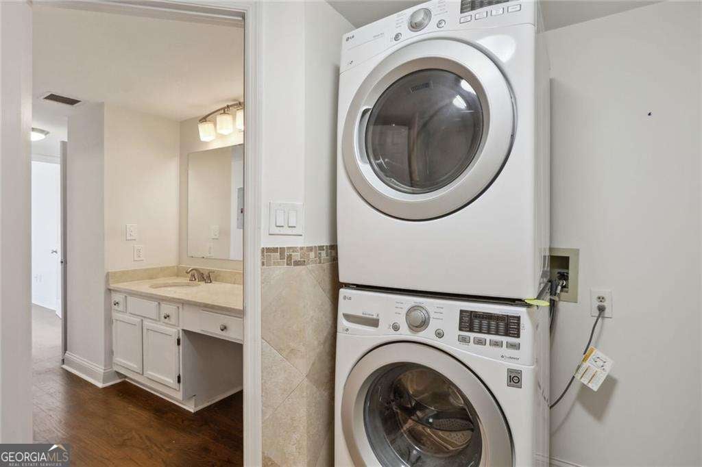 Stunning and most coveted ONE Bedroom + Balcony with Unobstructed East Views of Piedmont Park, Atlanta Botanical Gardens and look out to Stone Mountain. This Spectacular Space features walnut stained natural hardwoods in living/dining + bedroom, in vanity hallway and walk-in closet with custom shelving. The open kitchen plan with pantry closet and bar counter views to living/dining area with white cabinetry, accented with stainless steel appliances and granite counter tops highlighted with LED recessed lighting. The bathroom finished with deep soaking tub w/shower surrounded with limestone tiles features Bluetooth Speaker Light, plus LED light fixture in Laundry Closet (inside bathroom) includes stackable Large capacity LG Washer and Dryer units and ample space for additional storage inside laundry closet. This home features ONE assigned parking space and construction has began for the NEW swimming pool @ Midtown Atlanta's First and Finest Mayfair Property. The Special Assessment For Swimming Pool and other Improvements, has concluded and were fully paid by Seller. Amenities included @ property are 24/7 concierge, controlled access garage (with visitors parking) and controlled access building, LUXOR package lockers, a private Dog Park + Dog Spa and private Mayfair Tower residents only Car Wash, outdoor area with Pergola and Gas BBQ Grills and Lounge + Dining Seating. This is a special opportunity to own a GEM @ Mayfair Tower.