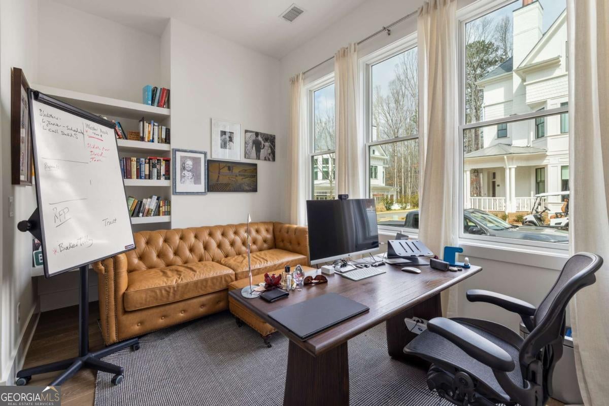 Nestled within the picturesque Overlook Hamlet of Serenbe, this enchanting cottage seamlessly combines the charm of Victorian architecture with modern comforts. As you approach, the cottage's exterior exudes Victorian grace with intricate detailing, ornate trim, and a welcoming front porch adorned with delicate railings. Come inside, and you'll discover a harmonious blend of classic design and contemporary amenities. The foyer, graced with high ceilings and intricate molding, leads to a cozy living room featuring a fireplace that adds warmth and character. Enjoy open floor plan living + dining, perfect for entertaining guests. Kitchen features a spacious pantry and custom range hood. Bedroom on the main level can also double as a work-from home office or library. Going upstairs to the second floor, you are greeted with your primary suite that features an oversized closet as well as a custom-tiled bathroom with a steam shower, perfect for unwinding after a long day. Lofted area with a commissioned art mural is perfect for cozying up with a good book + enjoying the surrounding views. Heading up to the final and thirdfloor, two more guest bedrooms with en-suite bathrooms await. Being located in the Overlook Hamlet of Serenbe, you are a short distance to every wellness amenity that Serenbe has to offer including immediate access to over 20 miles of soft surfaced nature trails with protected forest views. This home is located on the corner of Serenbe Lane and Dray Way, giving you endless opportunities to soak up every view.