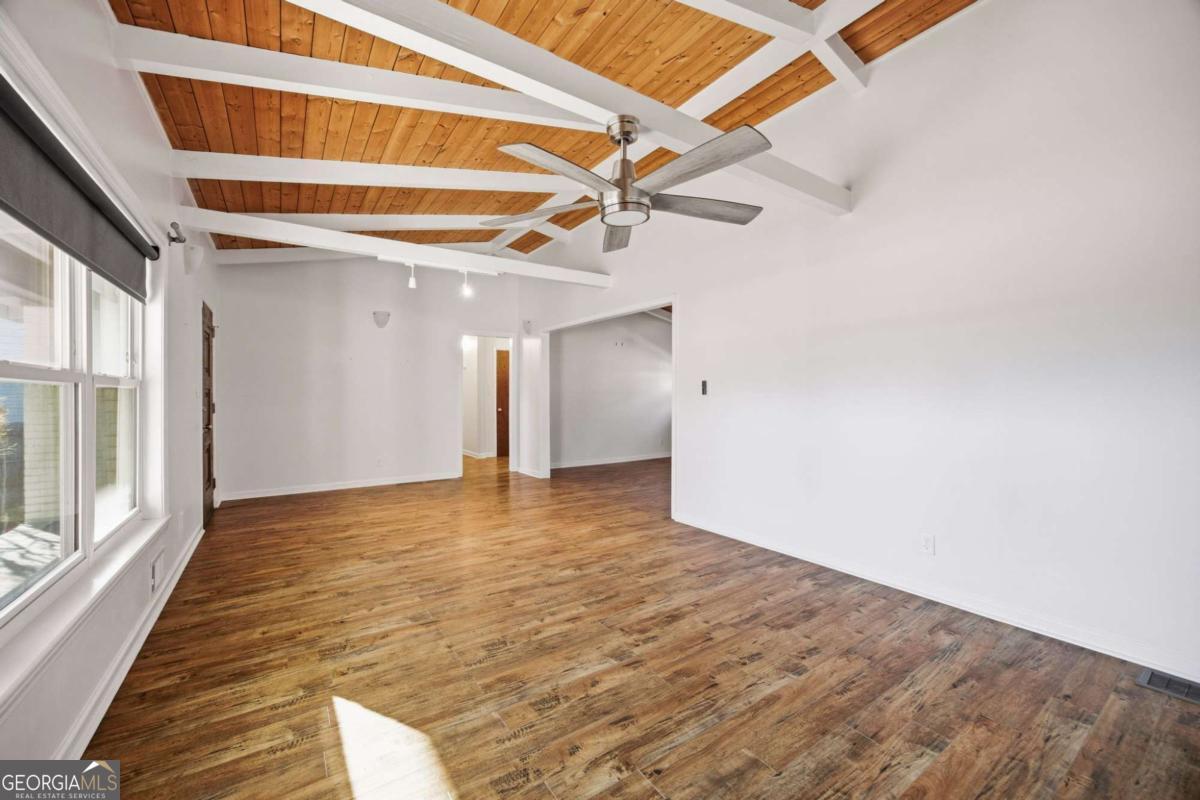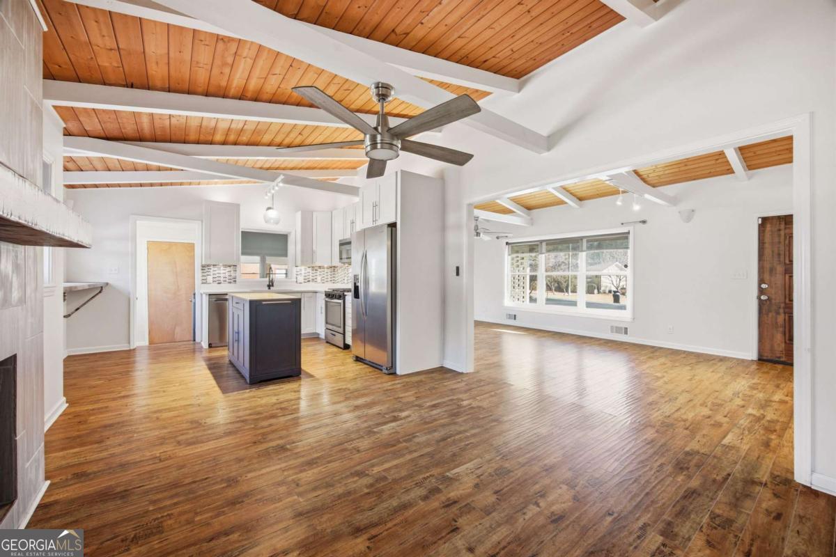 Discover timeless charm and modern comfort in this beautifully maintained four-sided brick ranch, perfectly situated on a large, level, fenced lot in one of Smyrna's most desirable areas. This 3-bedroom, 2.5-bath home offers a thoughtfully designed layout ideal for both everyday living and entertaining.The gourmet-style kitchen features stone countertops, crisp white cabinetry, and stainless steel appliances, seamlessly opening to the inviting family room where a stunning designer fireplace serves as the focal point. Gorgeous beamed ceilings add warmth and architectural character throughout the main living spaces. A separate living room provides additional flexibility, while an extra family room offers endless possibilities;perfect for a home office, playroom, media room, or fitness space.The spacious primary suite is a true retreat, complete with a private ensuite bath. Secondary bedrooms are generously sized with ample closet space, offering comfort for family and guests alike. Step outside to enjoy the expansive, flat backyard;fully fenced and ideal for entertaining, outdoor gatherings, or simply relaxing in your own private oasis.All of this in a prime Smyrna location, just minutes from shopping, dining, parks, and everything this vibrant community has to offer. This home combines classic construction, modern style, and unbeatable convenience; an exceptional opportunity you won't want to miss.