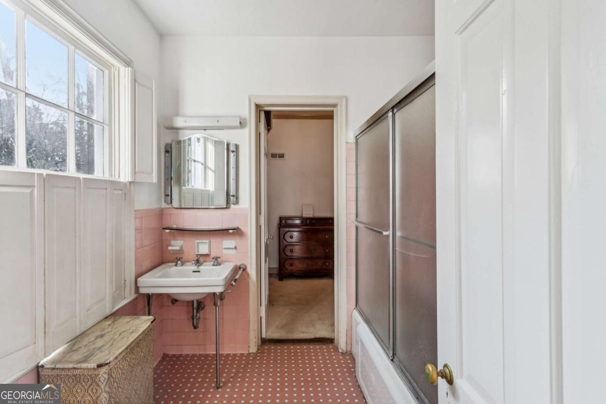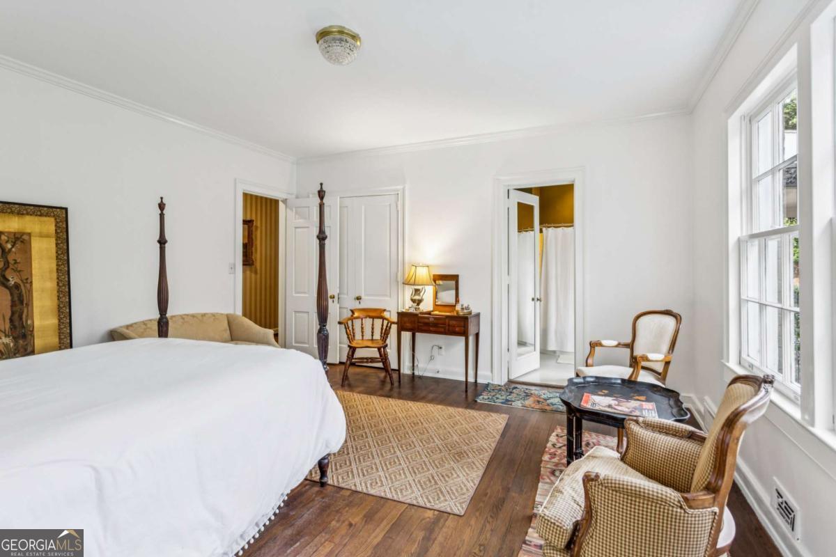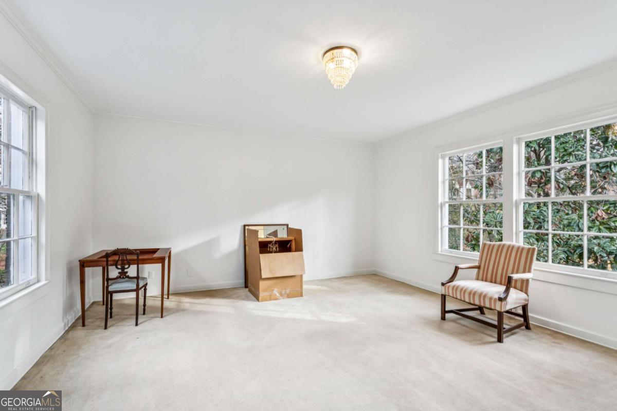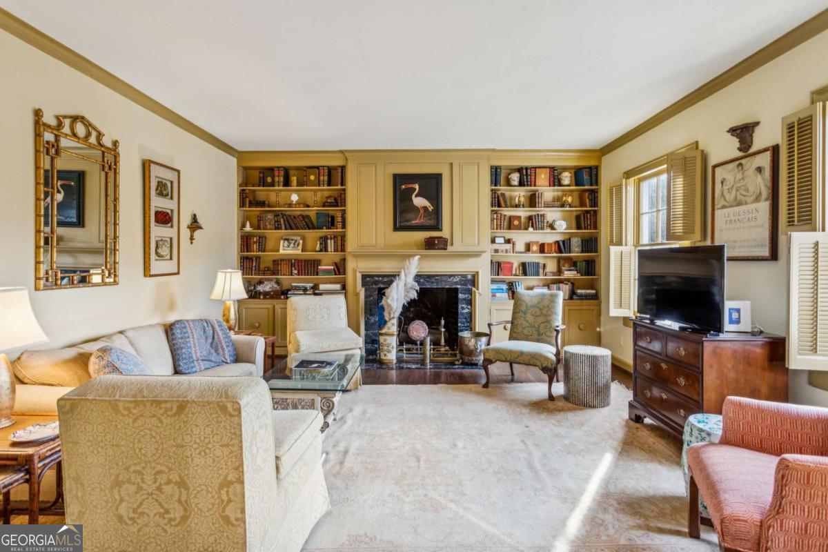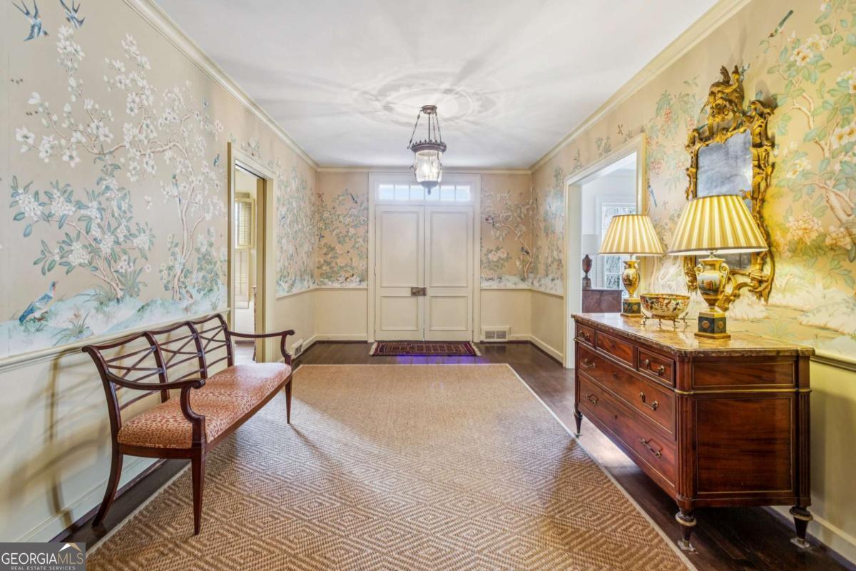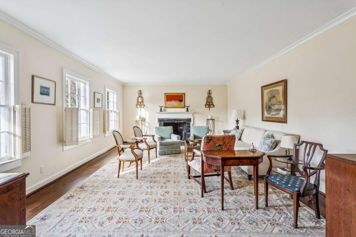 Perched gracefully atop a hill overlooking the linear park along Peachtree Battle Avenue, this distinguished Greek Revival residence embodies timeless elegance and architectural poise. A wide, formal center hall sets the tone, wrapped in a Gracie hand-painted Chinoiserie wallpaper and offering a sightline through the dining room to the terrace beyond-an entrance both dramatic and refined. Flanking the foyer, a spacious formal living room and an intimate library each feature a marble fireplace, generous windows, and an abundance of natural light, creating beautifully proportioned spaces for both grand entertaining and quiet retreat. The main level offers three sun-filled bedrooms, each with an en-suite bath, complemented by 9-foot ceilings and hardwood floors throughout. An additional bedroom and bath on the lower level provide flexible guest or private living space, while permanent stairs lead to a vast attic. Set on 1.4 acres and framed by Peachtree Battle Avenue and Habersham Road, the property offers privacy, presence, and an enviable setting. With vision and thoughtful updating, this sophisticated home presents a rare opportunity to create a truly magnificent Buckhead estate.