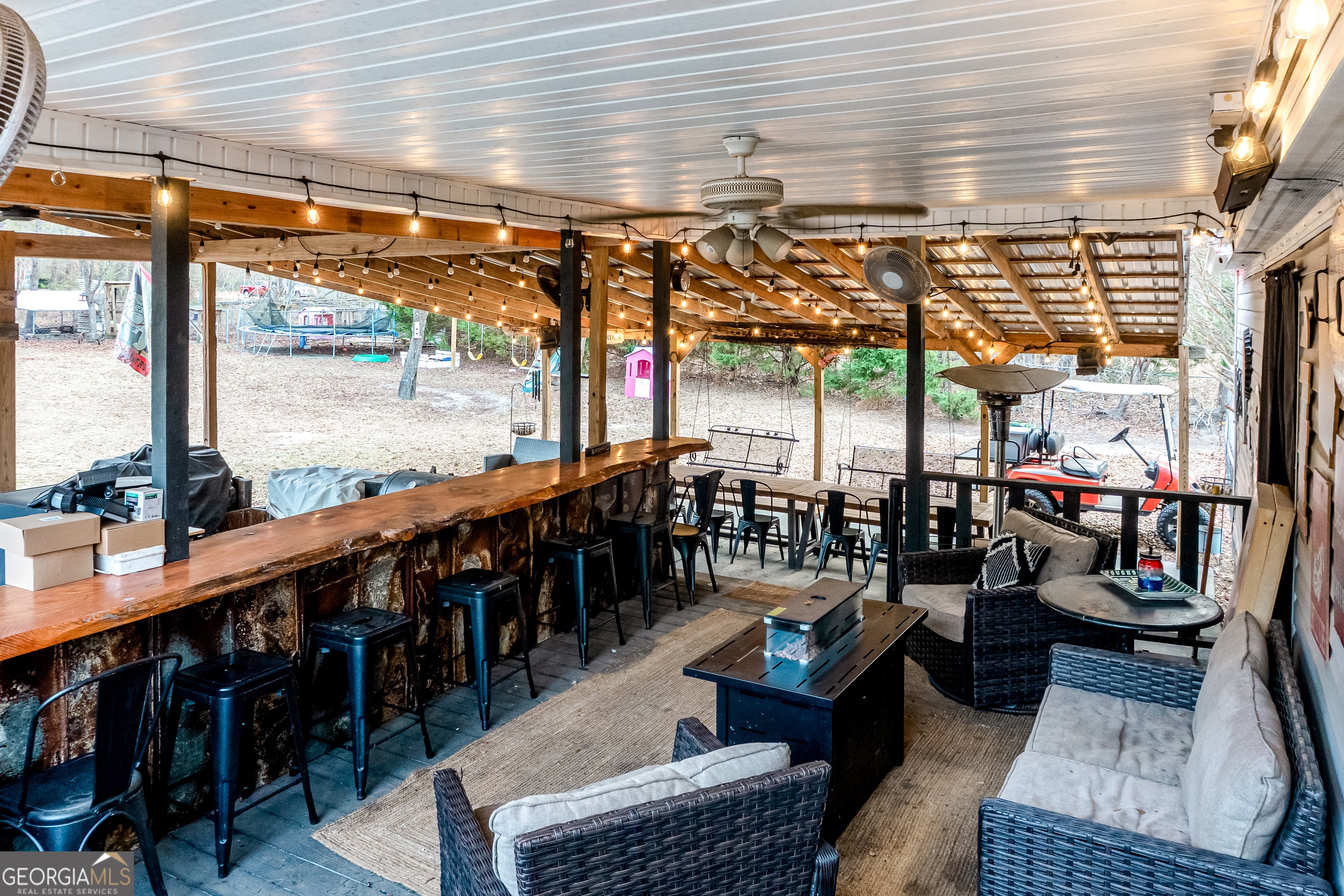 Welcome home to this inviting 4-bedroom, 2-bath property set on over 2 acres in Laurens County, Georgia. This home offers a thoughtful layout with space to grow, work, and relax. The primary suite features a double vanity, whirlpool tub, and step-in shower, with a flexible office or nursery space tucked between the master bedroom and the living area. Inside, you'll enjoy both a formal living room and a comfortable den with a wood-burning fireplace-perfect for quiet evenings or gathering with family and friends. The kitchen includes an island and bar area ideal for everyday meals or entertaining. Step outside to a fenced backyard and additional lot, totaling more than 2 acres. A spacious covered outdoor area features a cooking station, bar, porch seating, and plenty of room for hosting, relaxing, or extra parking-making this home perfect for enjoying both indoor comfort and outdoor living.