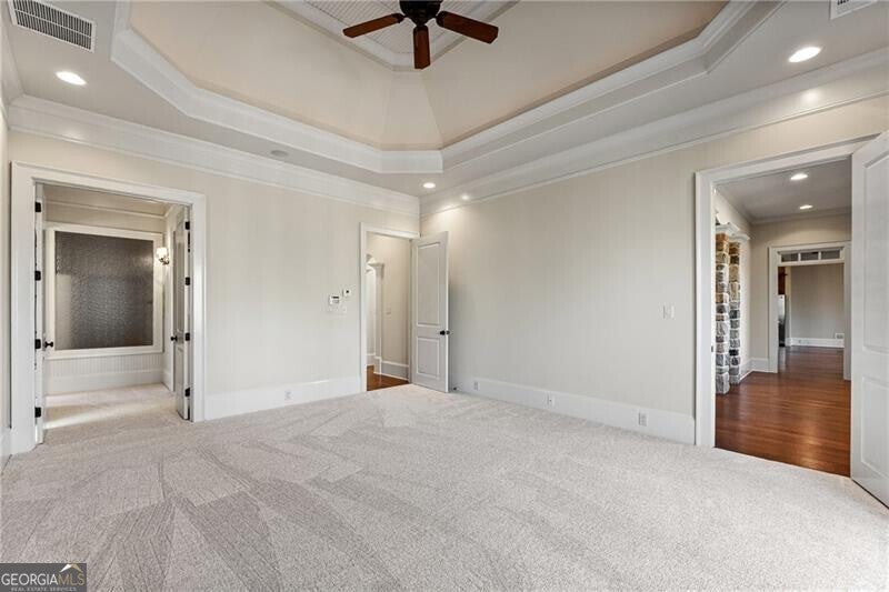 - Interior FeaturesBookcases, Double Vanity, High Ceilings, Master On Main Level, Other, Separate Shower, Tray Ceiling(s), Walk-In Closet(s), Beamed Ceilings, Vaulted Ceiling(s)