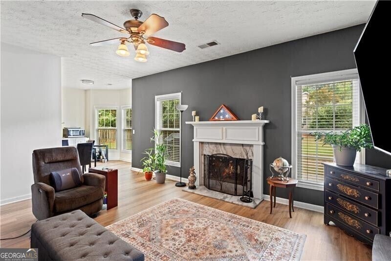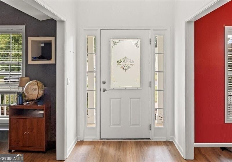 Looking for four bedrooms, a separate dining room, a formal living room, and a family room in 30101? Look no further. Check out this spacious home on a large, level corner lot in the sought-after McEver Park subdivision. Exterior features include an easy in and out level driveway and a friendly front porch for sittin' and sippin'. Don't miss the etched glass front door! The two-story foyer is flanked by a large living room (presently being used as an exercise room) and a formal dining room (which the owner has flexed into a bright home office space). The kitchen offers good food prep space and lots of storage, a breakfast bar, and a sunny eat-in area graced with a bay window; direct access to the garage, which features a new garage door, is great for bringing in groceries or supplies, and a nearby half bath and is tremendously convenient. From the kitchen you have a view of the family room with a fireplace and room for tv watching and family fun. The second floor is spacious with a convenient laundry area and a sun-drenched, over-sized primary suite with a big closet that features custom cabinetry to maximize storage space. The primary bath includes double vanities, a walk-in shower, and a garden tub. All secondary bedrooms are ample, and one is large enough to accommodate a king-sized bed and accompanying furniture (perfect for a roommate situation or an adult family member). Enjoy the great outdoors on this covered front porch or back patio. This home has been consistently well-maintained by the owner (not flipped by a cost-cutter). The main level HVAC was replaced in 2020, and the upper-level HVAC was replaced in 2021. Other upgrades include new gutters and downspouts in 2022, and a new roof, a new garage door, and a new dishwasher in 2024. In July of 2025 the entire exterior was repainted and refreshed, and beautiful LV wood flooring was installed throughout the main level. The desirable McEver Park community is less than 10 minutes from Downtown Acworth, lively nightlife, restaurants, Wellstar, Emory Healthcare, and highly-ranked schools, including McCall Primary (grades K through 1st), Acworth Elementary (grades 2nd through 5th), Barber Middle School, and North Cobb High School -- all within a 3-mile radius of McEver Park. The only thing missing from this delightful home is YOU!