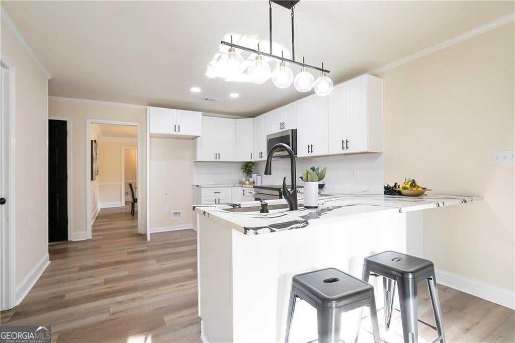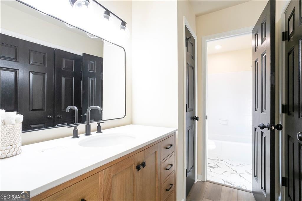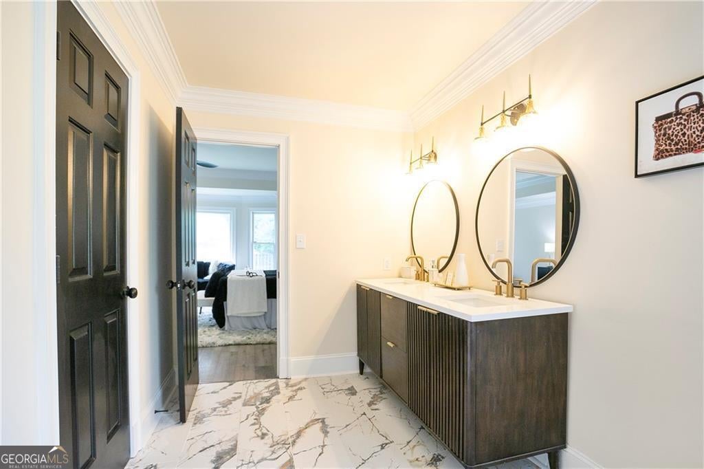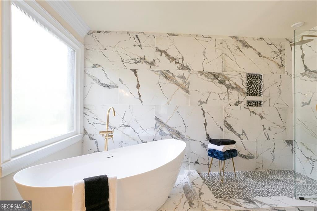 Top-rated Milton High School zone. Minutes to Atlanta, lakes, and golf. This fully renovated Roswell gem is where luxury, layout, and lifestyle come together. From the moment you walk in, you feel it-sunlight everywhere, soaring ceilings, and a layout that just flows. The living and dining areas open to a custom kitchen with an oversized island, sleek stainless appliances, and thoughtful storage. Whether it's weeknight dinners or weekend entertaining, this space works beautifully. On the main floor, you'll find not one, but three spacious bedrooms, including an oversized primary suite with tray ceiling and spa-like bath. Think freestanding soaking tub, frameless glass shower, double vanities, and a dramatic Italian marble accent wall that feels like a boutique hotel. Need more space? The fully finished basement includes a second living area with fireplace, a bedroom and full bath, and a rare boat-door garage-perfect for hobbies, storage, or even a golf simulator setup. Step outside and you're greeted with a private, wooded backyard and large deck-ideal for morning coffee or evening wine under the stars. Located in Saddle Creek, one of Roswell's most desirable swim/tennis communities, this home is zoned for Sweet Apple Elementary, Elkins Pointe Middle, and Milton High School. It's tucked away, but just minutes to shopping, GA-400, downtown Roswell, and some of North Fulton's best golf and outdoor escapes. 5 bedrooms | 4 full bathrooms | Fully renovated and move-in ready. FHA, VA, Conventional and Lease Purchase eligible. If you've been waiting for the right home in the right neighborhood, this is the one. Schedule your private showing today-before someone else does.
