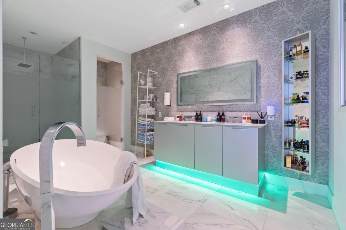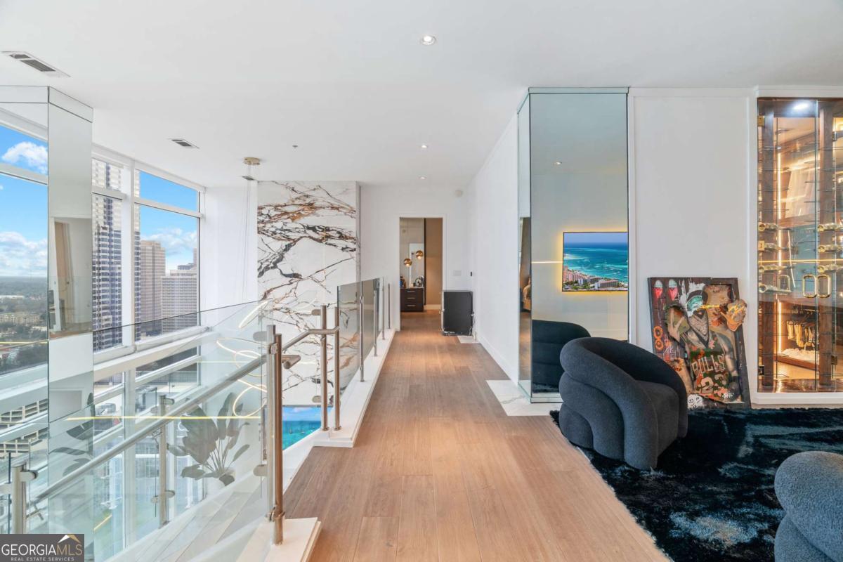 Introducing an exceptional two-story penthouse residence crowning the iconic W Residences, comprehensively reimagined through a 2023-2024 capital improvement program exceeding $700,000. This ultra-rare and highly coveted penthouse is ideally suited for the discreet and discerning buyer-a global jetsetter, elite athlete, entertainer, or executive seeking a private sanctuary in the heart of Atlanta's most dynamic district. Perfectly positioned above the city skyline, this penthouse offers seamless access to State Farm Arena, Mercedes-Benz Stadium, Downtown Atlanta, and major transportation routes-placing the very best of the city just moments away while maintaining privacy and exclusivity. From an investment perspective, the residence is exceptionally well-timed, positioned ahead of globally significant demand catalysts, including the 2026 FIFA World Cup and Super Bowl 2028. These events are expected to materially enhance Atlanta's international visibility, luxury rental demand, and long-term asset appreciation-particularly for irreplaceable, top-of-stack inventory. Residents benefit from full access to W Hotel services and infrastructure, including: Full-service luxury hotel operations Residential helipad access 24-hour state-of-the-art fitness center In-residence dining and room service White-glove concierge and security services Private, climate-controlled storage unit Largest and most commanding views in the building Qualified inquiries only. Showings conducted strictly by private appointment with verified proof of funds. DESIGN & CAPITAL IMPROVEMENTS: 20-foot floor-to-ceiling PORCELANOSA marble feature wall, imported from Spain, anchoring the main living space Custom-engineered, NetZero "Waterplace" architectural installation in the living room Smart frosted glass office enclosure with one-touch opacity control (visible to opaque) Custom luxury mirror-clad architectural pillars throughout Fully upgraded smart home infrastructure, including remote-controlled blinds, zoned climate control, and integrated systems Four (4) commercial-grade HVAC systems for multi-level climate precision, each paired with Nest controls Boutique-style integrated smart lighting package throughout Frameless glass spa showers with architectural sightline transparency into bedrooms Expanded upper-level loft featuring custom wine bar and display installation Fully remodeled and expanded chef's kitchen with Gaggenau appliances, full-size wine refrigeration, and upgraded gas range Custom marble staircase with floating glass edge detailing German ALNO cabinetry and countertops Duravit and Dornbracht fixtures and premium bath accents Whole-home automation including power shades and automatic blinds spanning 20-foot glass walls Sonos system with Bowers & Wilkins reference-grade audio New custom paint finishes throughout Upgraded chrome bathroom shelving and wall-mounted storage systems New premium flooring throughout the residence Carrara marble dual vanities Marble and limestone spa-concept bathrooms and soaking tubs Custom ELFA closet systems Fully wired ADT security and alarm system Floor-to-ceiling custom millwork, fluted wood detailing, and integrated smart lighting in the dining room Curated five-star fixtures and hardware throughout