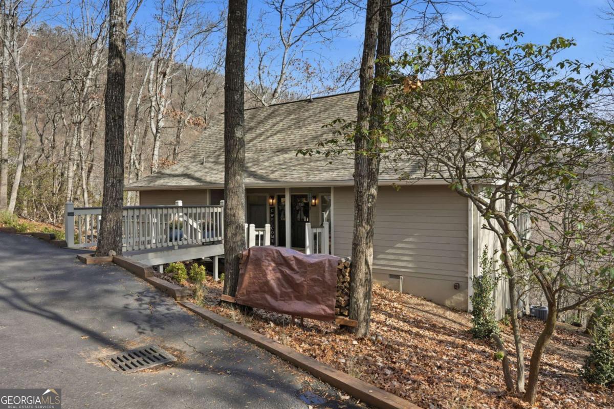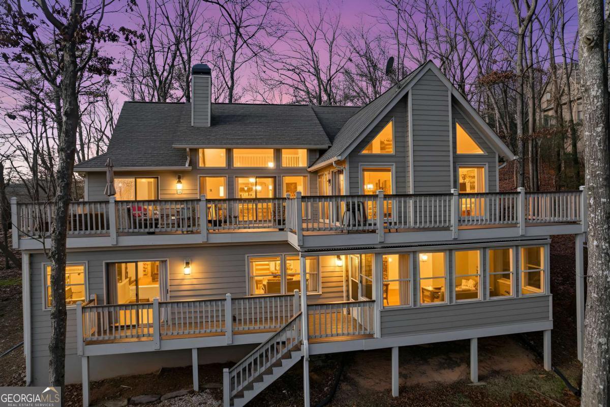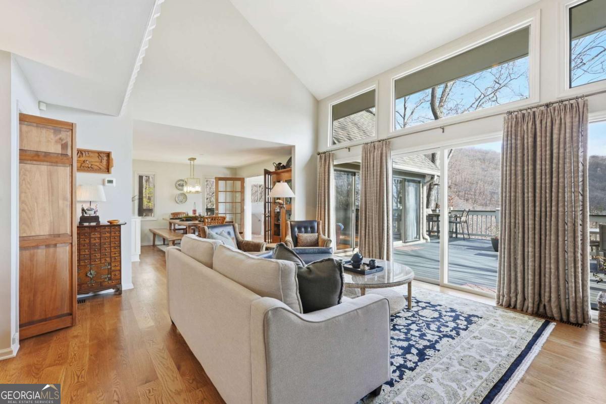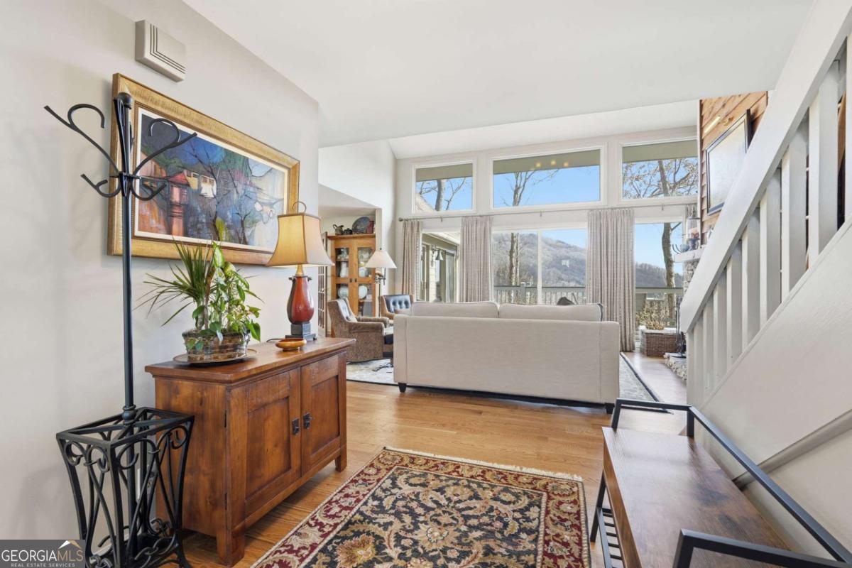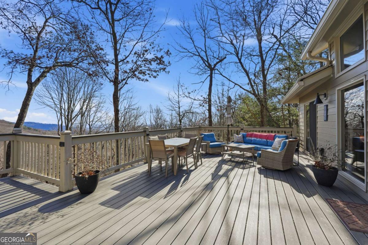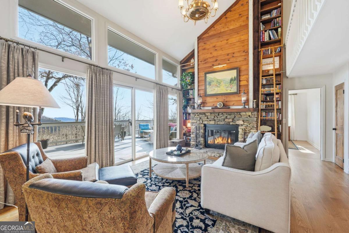This beautifully updated Big Canoe mountain home welcomes you the moment you arrive at the easy circular driveway and wraparound deck. Located in the gated North Georgia mountain community of Big Canoe, this move-in-ready home offers the perfect blend of modern updates and classic mountain charm. Double entry doors open to a bright, sun-filled living area where natural light pours through floor-to-ceiling windows, immediately creating the sense that you've found your happy place. Nearly every part of the home has been renovated within the last five years, including new windows, doors, siding, trim, hardwood floors, carpet, roof, gutters, HVAC, electrical panel, retaining wall, Trex decking, landscaping, and updated lighting. The kitchen and primary bathroom have been fully remodeled. The great room showcases stunning mountain views framed by tall windows, along with a dramatic floor-to-ceiling stone fireplace, warm wood accent wall, built-in library shelving, and a rolling ladder that adds architectural character. A built-in beverage bar enhances the entertaining space. The sunroom adjoining the kitchen-with its own stacked-stone fireplace-is the ideal morning happy place for coffee and quiet moments, while the expansive Trex deck is perfect for evenings under the stars overlooking the Big Canoe mountains. Upstairs offers two spacious bedrooms and a full bath. The terrace level includes a second family room, full bath, sleeping porch, and an oversized flex room currently used as a bedroom with an adjoining space ideal for a home office, sitting room, or hobby room. Additional features include excellent storage and a climate-controlled workshop. Seller has approved Big Canoe POA plans for a carport, which could potentially be modified to a garage, subject to POA approval. With extensive upgrades, new systems, and beautiful mountain surroundings, this updated Big Canoe home is ready to become someone's next happy place in the North Georgia mountains. Buyer to verify all information and dimensions deemed important. Listing agent is happy to show the home as a courtesy if buyer's agent is unavailable. Furnishings available on a separate bill of sale.