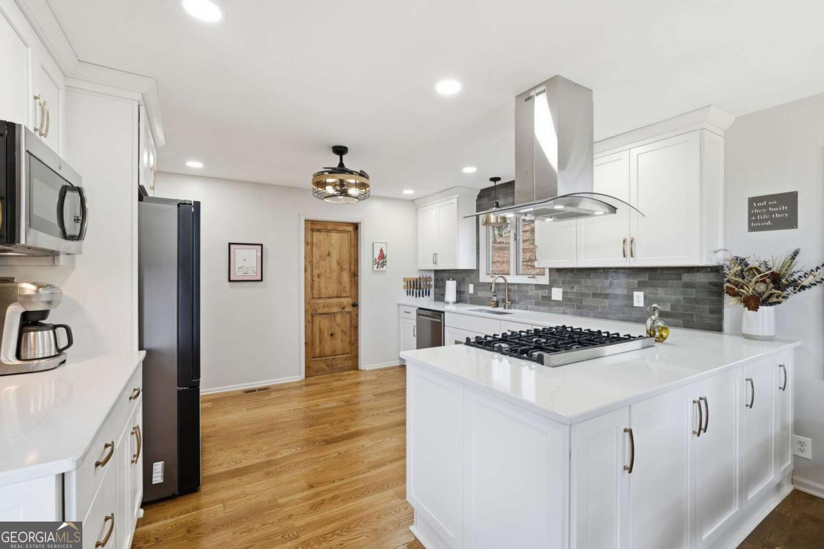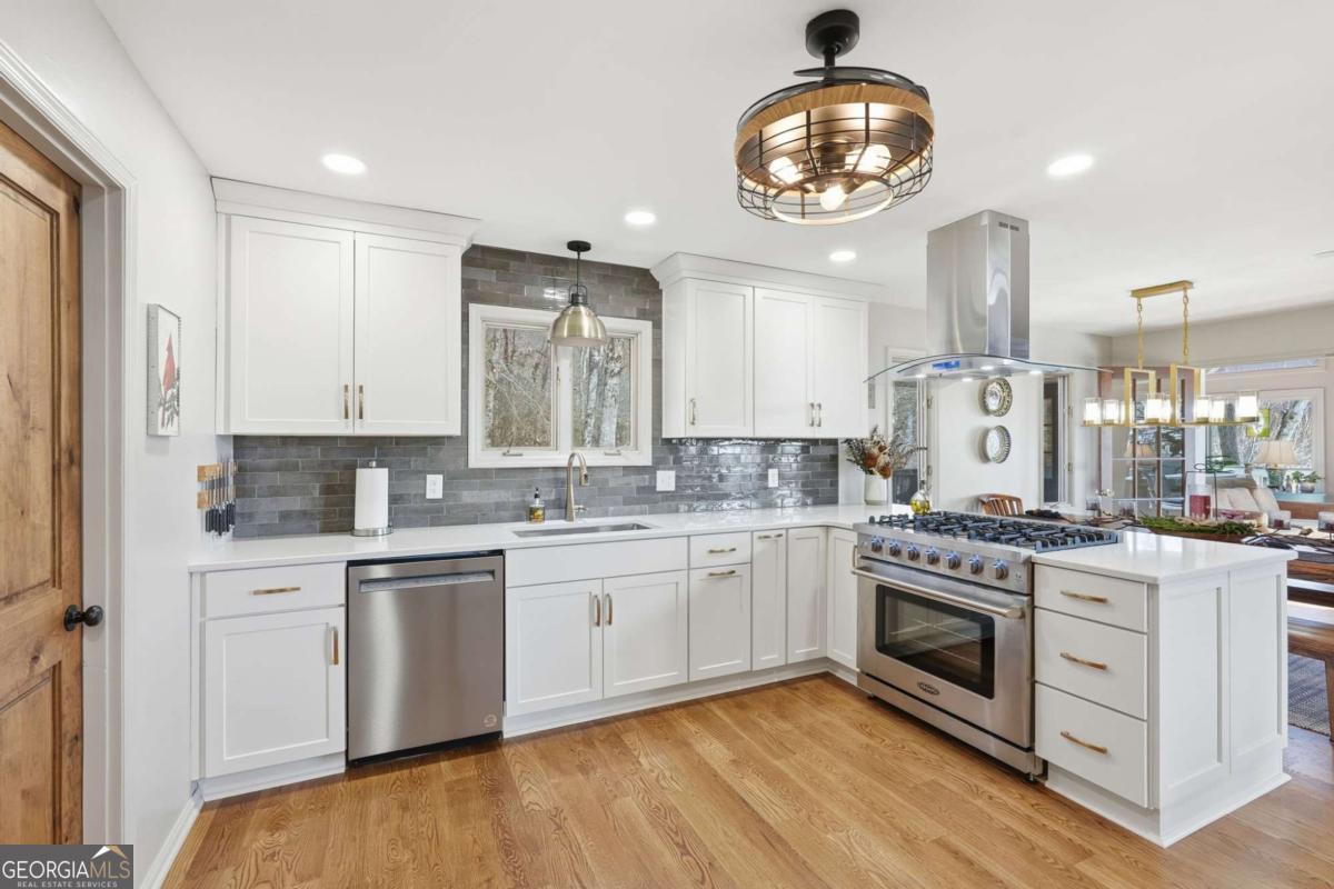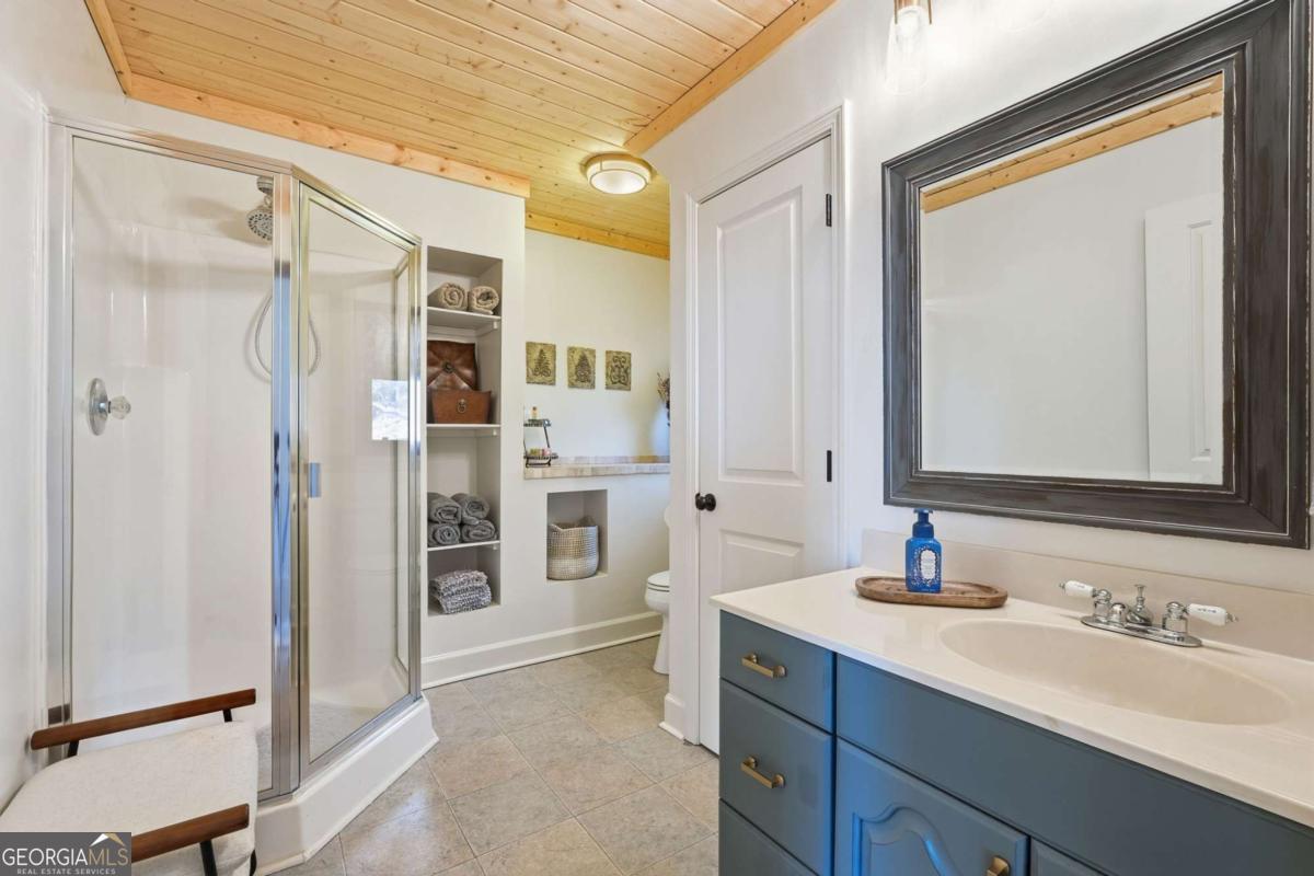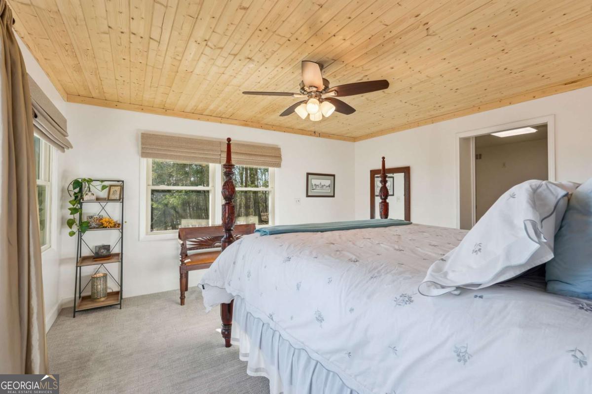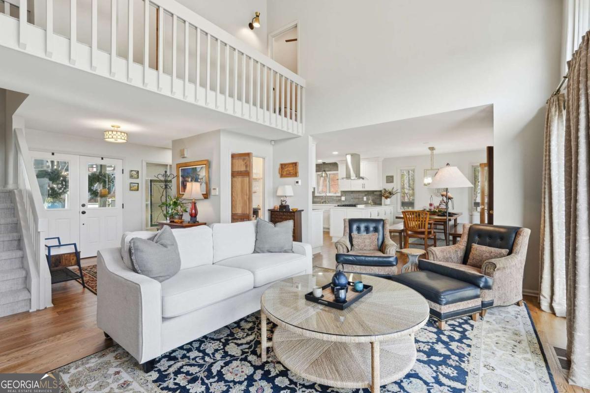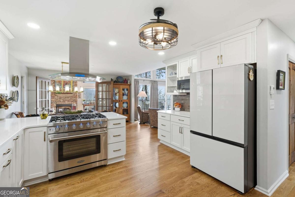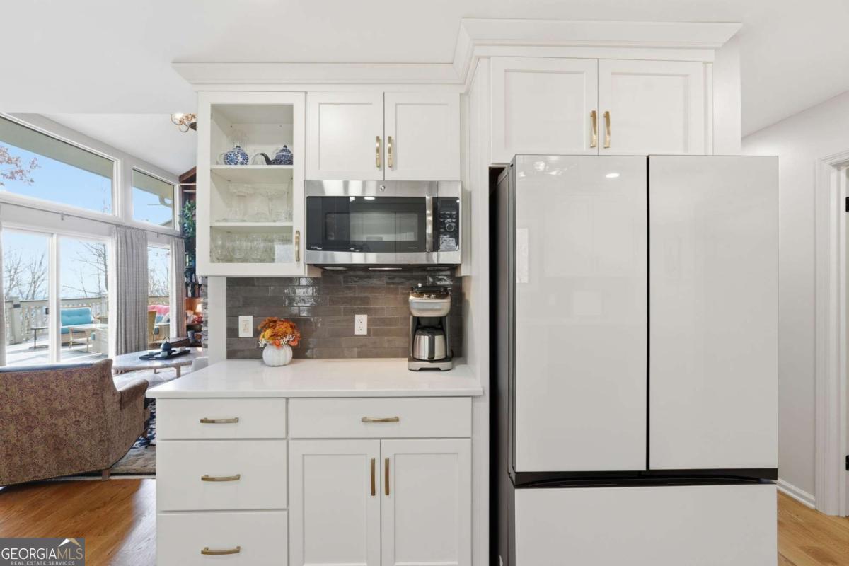 This beautifully updated Big Canoe mountain home welcomes you the moment you arrive at the easy circular driveway and wraparound deck. Located in the gated North Georgia mountain community of Big Canoe, this move-in-ready home offers the perfect blend of modern updates and classic mountain charm. Double entry doors open to a bright, sun-filled living area where natural light pours through floor-to-ceiling windows, immediately creating the sense that you've found your happy place. Nearly every part of the home has been renovated within the last five years, including new windows, doors, siding, trim, hardwood floors, carpet, roof, gutters, HVAC, electrical panel, retaining wall, Trex decking, landscaping, and updated lighting. The kitchen and primary bathroom have been fully remodeled. The great room showcases stunning mountain views framed by tall windows, along with a dramatic floor-to-ceiling stone fireplace, warm wood accent wall, built-in library shelving, and a rolling ladder that adds architectural character. A built-in beverage bar enhances the entertaining space. The sunroom adjoining the kitchen-with its own stacked-stone fireplace-is the ideal morning happy place for coffee and quiet moments, while the expansive Trex deck is perfect for evenings under the stars overlooking the Big Canoe mountains. Upstairs offers two spacious bedrooms and a full bath. The terrace level includes a second family room, full bath, sleeping porch, and an oversized flex room currently used as a bedroom with an adjoining space ideal for a home office, sitting room, or hobby room. Additional features include excellent storage and a climate-controlled workshop. Seller has approved Big Canoe POA plans for a carport, which could potentially be modified to a garage, subject to POA approval. With extensive upgrades, new systems, and beautiful mountain surroundings, this updated Big Canoe home is ready to become someone's next happy place in the North Georgia mountains. Buyer to verify all information and dimensions deemed important. Listing agent is happy to show the home as a courtesy if buyer's agent is unavailable. Furnishings available on a separate bill of sale.