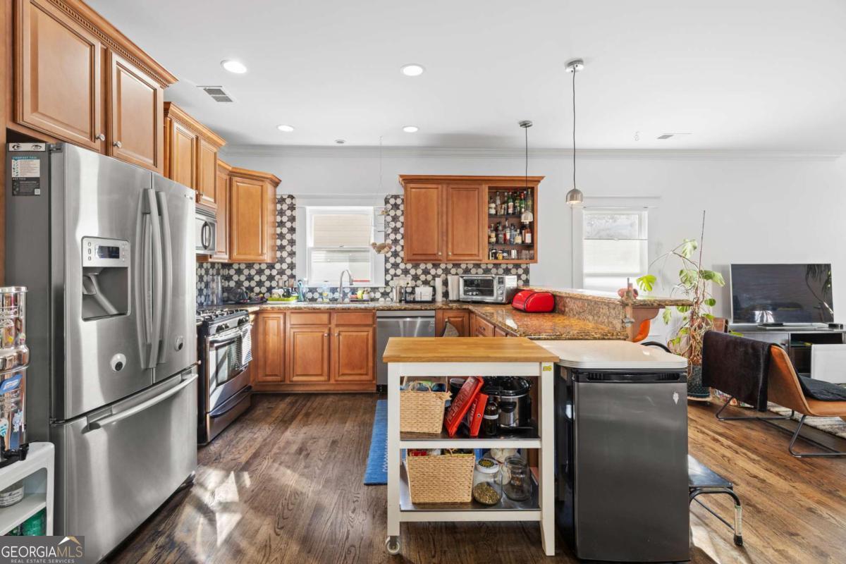 PRIME LOCATION in the heart of Cabbagetown! This beautiful home has had one owner and offers the perfect blend of historical charm, recent renovations, and picturesque walkability. Inside, enjoy bright open-concept living, with hardwood floors, an updated kitchen, renovated upstairs bathrooms and a seamless indoor-outdoor flow. This home features two primary suites with the downstairs suite having a separate entrance for private entry; perfect for short-term rentals. The private four-car driveway is an uncommon luxury in this area. The fenced-in, gated backyard is a rare urban retreat with a raised garden bed, fruit trees, and landscaping. Major improvements include a new metal roof, new HVAC and new fence - adding peace of mind and long-term value. The home is just one block from the Beltline and Wylie Street's iconic murals, and a short walk to Krog Street Market. This location delivers true intown living with shopping, dining, and Cabbagetown Park directly across the street. There are six parks within one mile, as well as quick access to Oakland Cemetery, Publix and AMC. This home offers the lifestyle of Cabbagetown - walkable, vibrant, and uniquely Atlanta!
