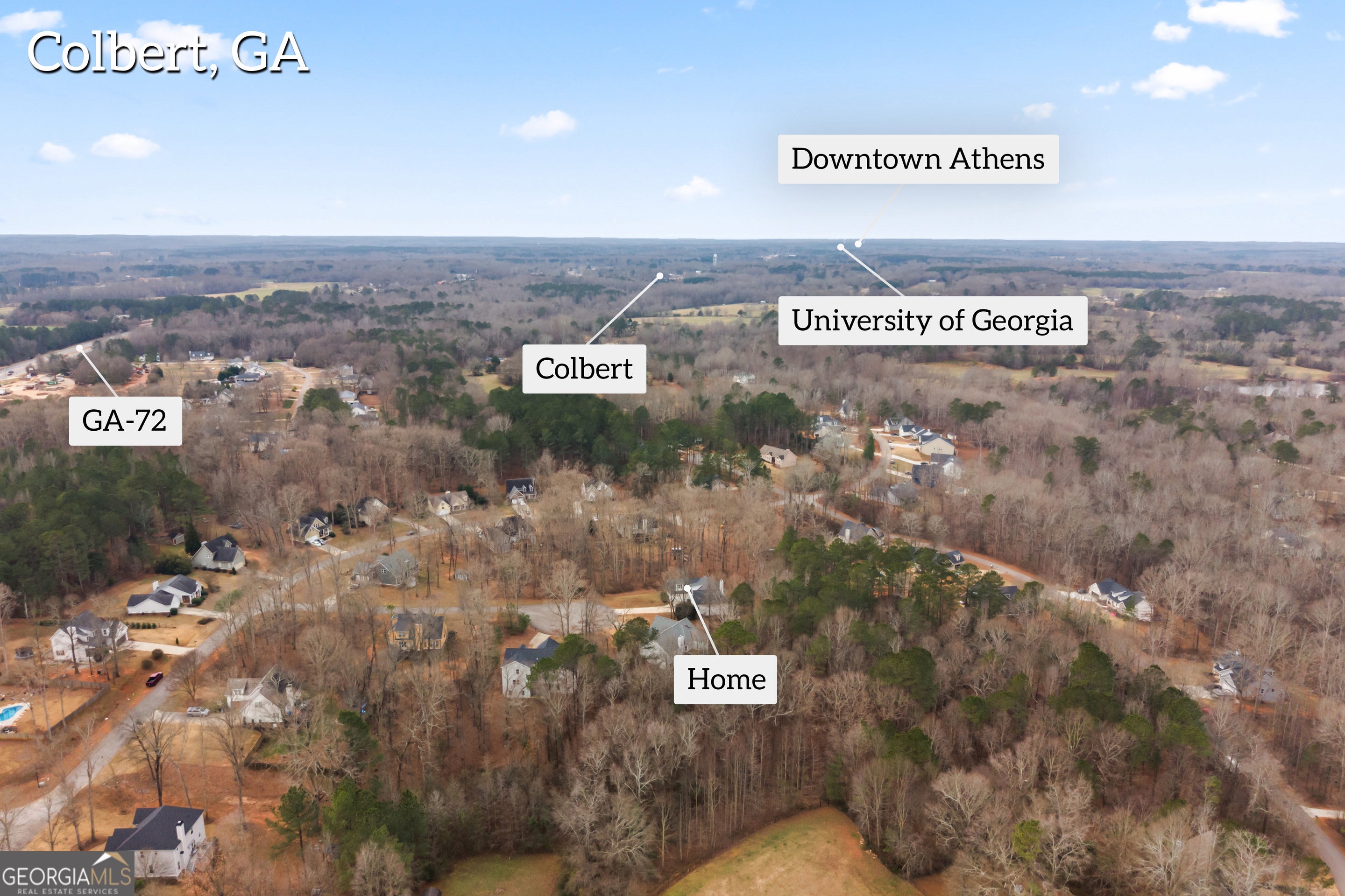 Need more space? Tucked away on a quiet cul-de-sac in the charming town of Colbert, this spacious 4-bedroom, 3-bath home with a bonus room and finished basement offers exceptional versatility and room to grow. Upon entry, you are welcomed by beautiful hardwood floors that flow from the foyer through the dining room and into the great room. The great room features soaring 16-foot ceilings and a fireplace with a marble surround, creating a warm yet impressive focal point. The kitchen is well-appointed with stained custom cabinetry, granite countertops, subway tile backsplash, and stainless steel appliances-perfect for both everyday living and entertaining. The split-bedroom floor plan provides privacy, with two spacious secondary bedrooms and a shared hall bath on one side of the home and the main-level owner's suite on the other. The owner's suite offers double windows overlooking the private backyard, a tray ceiling, and direct access to the en-suite bath through a stylish barn door. The bath features tile floors, dual marble vanities, a walk-in shower, and a soaking garden tub ideal for relaxing evenings. Just off the hallway near the owner's suite are stairs leading to the bonus room, making it an excellent option for a playroom, home office, or private retreat. From the laundry room, stairs lead down to the expansive finished basement, offering incredible flexibility. The basement includes a dedicated craft room or office, a fourth bedroom with abundant natural light, a recreation room with tile flooring ideal for games, and a large media or lower living room perfect for hosting movie nights or game-day gatherings. A basement kitchen with ample cabinetry, a sink, and a full-size refrigerator adds even more functionality. An additional large room with exterior access could serve as a fifth bedroom or flexible living space. Outdoor living is equally impressive, featuring a main-level deck and a covered patio below with a gutter system to keep the space dry. Both areas overlook the backyard and fire pit, providing excellent spaces for entertaining or relaxing outdoors. Another feature is the oversized 2 car garage which gives plenty of room for cars plus additional lawn equipment. Conveniently located approximately 20 minutes from downtown Athens and the UGA campus, this home offers space, comfort, and versatility in a peaceful setting.
