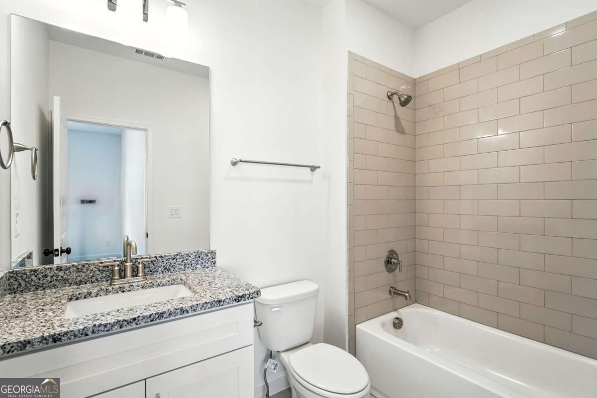 New Construction - This two Story Home has 4 Bedrooms & 3.5 Bathrooms that Features an Open concept Kitchen with quartz Counter tops, Tile Backsplash, Stainless Steel Appliances, Large Island w/ views to the Breakfast Area & Family room. Beautiful covered porch and huge coved deck. Large owner's suite room and private bath room with Large Walk-In Closet and freestanding tub. Laundry on the upper level. Home has a full unfinished Daylight basement, stubbed for bathroom, private back yard. Large two car garage. Quiet neighborhood, easy highway access. Near Truist Park, shopping and restaurants. Southern Living Custom Builder.