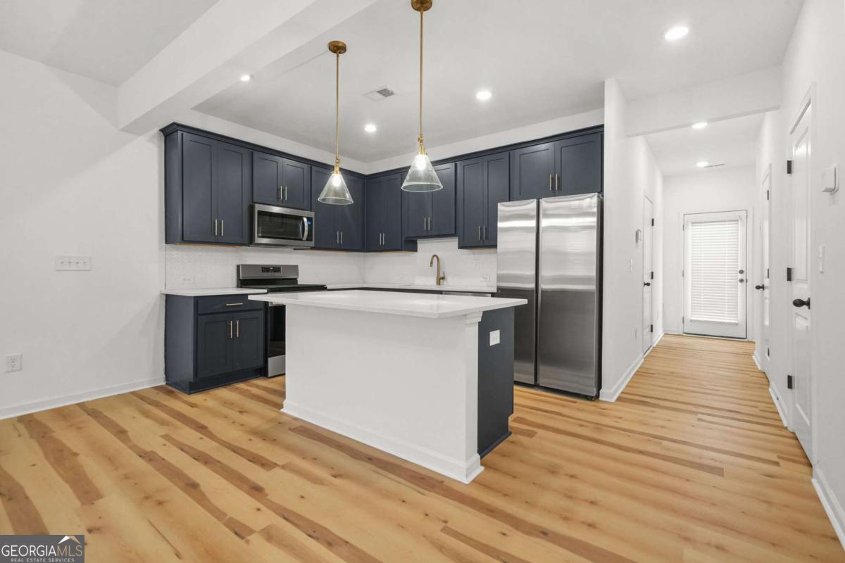 Located just steps from Westside Park, this townhome at Park Vue offers a rare balance of city access and everyday livability. The gated community features a resort-style pool, cabana, and a neighborhood fire pit with Adirondack seating-thoughtful amenities that feel useful, not flashy. This two-story home offers 1,507 square feet of well-planned living space with brand new luxury vinyl plank flooring throughout-no carpet anywhere. The main level is open and functional, anchored by a kitchen with a large island, modern countertops, and natural gas cooking. The kitchen flows easily into the dining area and family room, making the space practical for daily living and entertaining. Upstairs, all three bedrooms are generously sized, including a light-filled primary suite with a frameless glass walk-in shower, dual vanities, and a walk-in closet. Finishes throughout the home include clean-lined lighting, iron railings, and durable plank flooring that complements a modern lifestyle. The home also includes a private one-car garage with additional storage. Convenient to West Midtown, major highways, and Atlanta's largest greenspace, this is a solid opportunity in one of the area's most established communities. Schedule a showing to see how this home fits your day-to-day life.