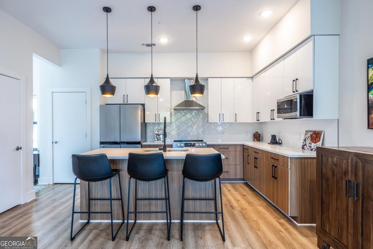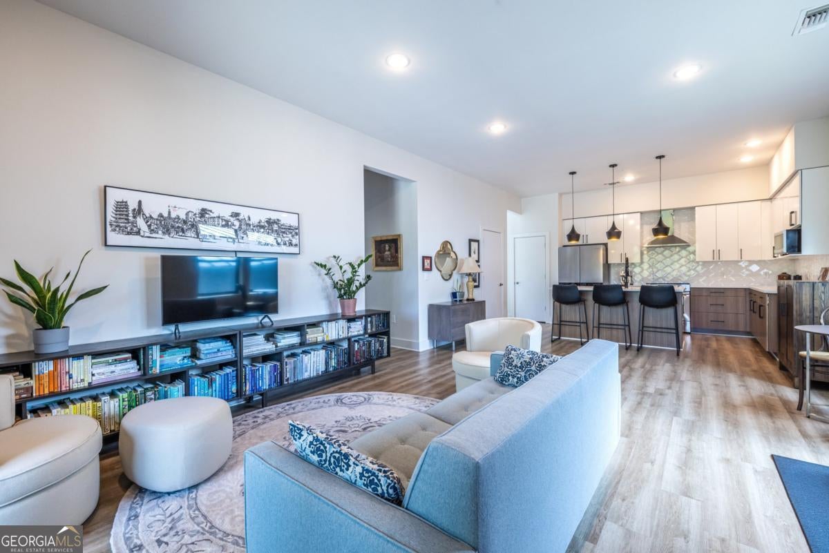 Discover the largest one-bedroom floor plan in Pullman Flats, a boutique building ideally situated in Kirkwood-directly across from Pullman Yards. This nearly new corner unit features 10 foot ceilings with an open-concept living space that seamlessly flows from the contemporary kitchen with quartz counters and stainless appliances into the dining and living areas - creating a bright, airy environment with abundant natural light, perfect for relaxing or entertaining. The large bath offers a double vanity and walk-in shower. Walk-in pantry and closets provide ample storage. Need a breath of fresh air, step outside onto your private balcony and enjoy your favorite book or morning coffee. The design thoughtfully balances style and function, making everyday living comfortable and inviting. Pullman Flats amenities include a rooftop deck with grilling area, a secondary outdoor terrace with fireplace and more space for lounging and entertaining, a fitness center, dog spa, and gated assigned parking. Located steps from parks, shops, restaurants, and with easy access to the Beltline, Marta and the airport, this is a perfect opportunity to own a stylish, low-maintenance home in a vibrant community. Why rent when you can own? Schedule your showing today.