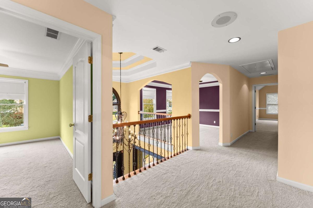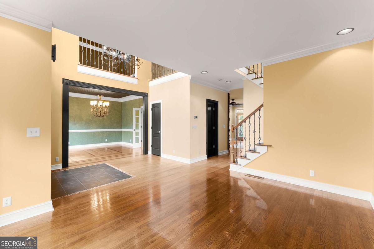 This stunning custom home welcomes you with a stone front porch and a beautiful custom entry door. Inside, you'll find a bright, open floor plan with inlay hardwood floors and a cozy stone fireplace in the family room. Entertain with ease using the fully functional wet bar and wine rack. The kitchen features solid maple cabinetry, stone countertops, and stainless steel appliances, including a double oven. A spacious laundry room offers a sink and folding counter for added convenience. Upstairs includes three bedrooms, two bathrooms, a versatile bonus/office area, and a 10x27 storage space. The primary suite is filled with natural light and features custom closet organization, an Italian marble bath, dual vanities, a Whirlpool tub, walk-in shower, and private water closet. The partially finished basement includes a living area previously used as a media room, two flex rooms with closets (ideal for an office, gym, or additional bedrooms), a full bathroom, and a workshop/storage space with walk-out access to the backyard. Exterior highlights include front yard irrigation, a back deck with a spiral staircase, Veranda decking, and a fully integrated security and smoke system with voice capabilities. Located on a quiet cul-de-sac in a well-established neighborhood, this home offers both privacy and convenience. Zoned for the highly sought-after North Gwinnett schools, residents also enjoy access to community amenities including a lake, tennis courts, and parks-all within walking distance of schools, churches, and shopping. Plus, you're just minutes from downtown Suwanee, where you'll find vibrant restaurants, green space, and walking trails that make this area so special.
