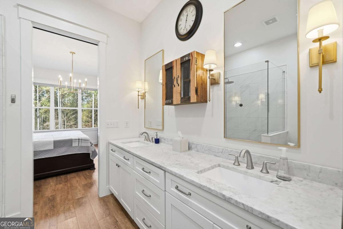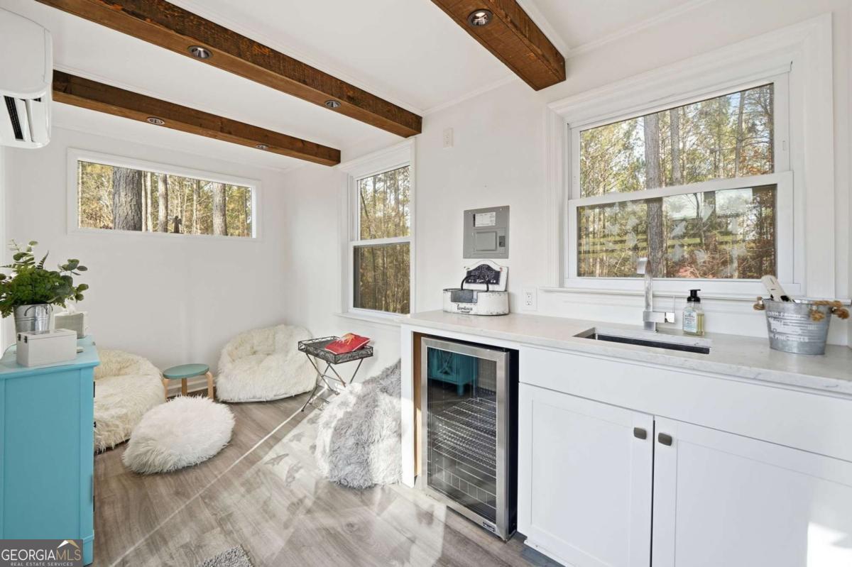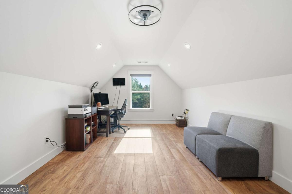 Welcome to 1950 Damascus Road - a modern white farmhouse retreat on six pristine acres in the highly sought-after town of Ball Ground, Georgia. Built with timeless style and today's conveniences, this four-bedroom home blends privacy, luxury, and comfort in a serene setting of wooded borders and open pastures. Step inside to discover light-filled living spaces, thoughtfully designed for both everyday life and effortless entertaining. The heart of the home opens to a screened-in back porch with remote-controlled screens-transforming at the touch of a button from open-air relaxation to a cozy, mosquito-free haven. Outside, the property continues to impress. A former shipping container has been transformed into a chic, bougie she-shed, complete with a wine display and a stunning soaking tub-your own private getaway just steps from home. The six-acre estate is partially fenced, offering ideal space for pets, hobbies, or even small livestock, while still retaining its peaceful, wooded privacy. Additional features include: Whole-house generator for comfort and peace of mind Walk in pantry with wood shelving Beautifully organized garage with custom built-in shelving Large upstairs bonus room-perfect as a home office, media room, or additional bedroom Modern finishes, open-concept living, and farmhouse touches throughout Perfectly positioned in the charming community of Ball Ground, this property offers rustic elegance, modern amenities, and the quiet luxury of country living-just minutes from local shops, restaurants, and easy highway access. If you've been searching for a private retreat with personality, beauty, and function-this is the one.