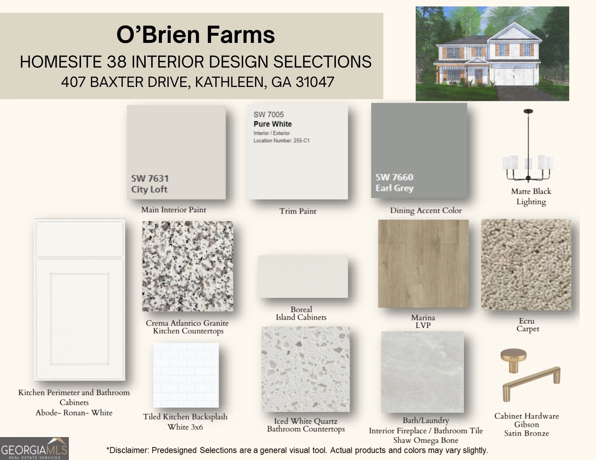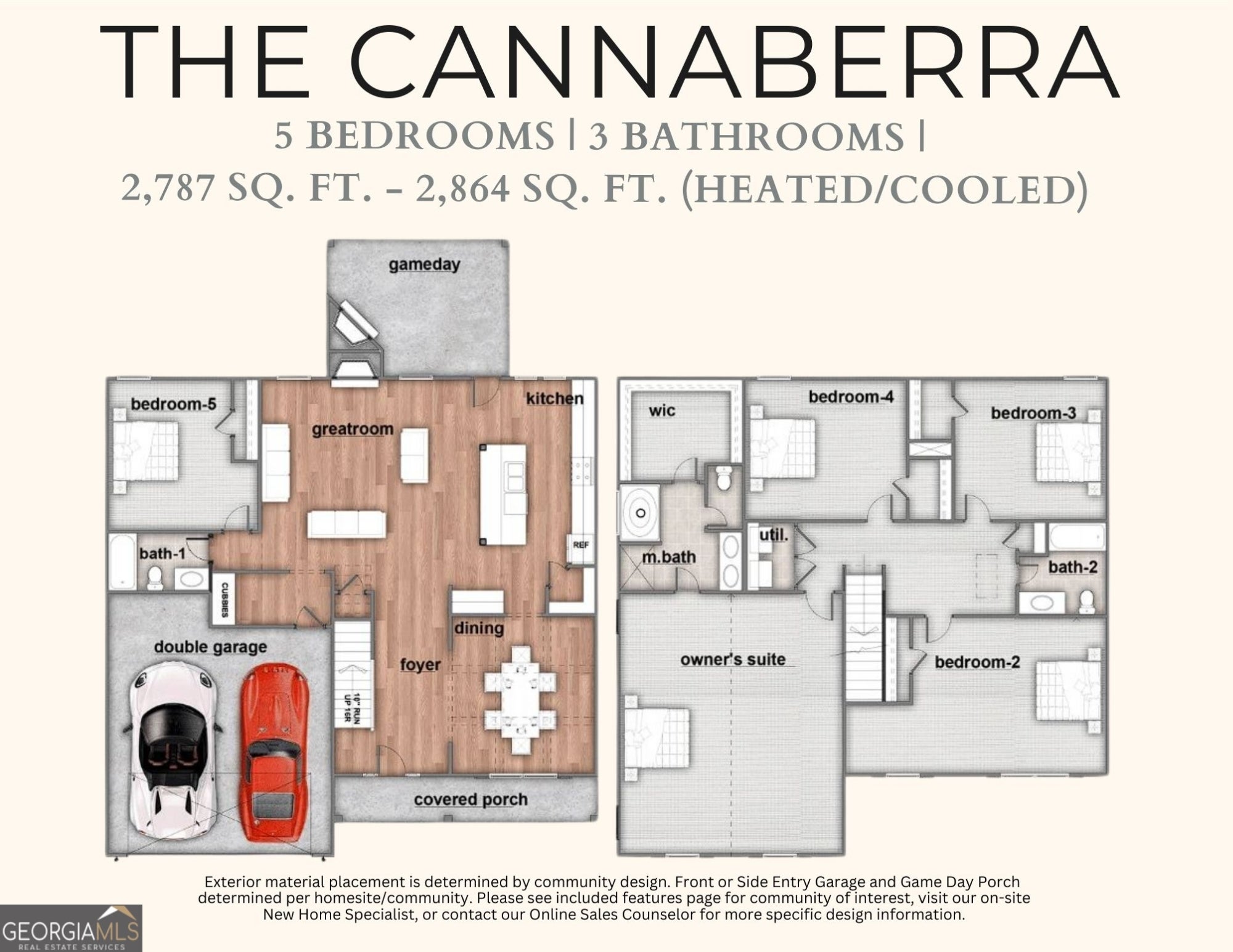 Discover O'Brien Farms in Warner Robins, Georgia, a thoughtfully planned Hughston Homes community designed to complement modern lifestyles. The Cannaberra B Floorplan features 2,864 SF of well-balanced living space with 5 bedrooms and 3 baths, offering flexibility, comfort, and timeless design. The main level welcomes you with a flowing layout that blends defined spaces with open concept living. A dedicated dining area with coffered ceilings adds elegance for entertainment, while the spacious great room centers around a cozy wood-burning fireplace providing a warm, inviting place to gather and relax. At the center of the home, the open kitchen impresses with abundant cabinetry, recessed lighting, beautiful countertops, a tiled backsplash, an electric cooktop, a single oven with microwave, stainless steel vent hood, and a luxury dishwasher. The center island anchors the space, opening seamlessly to the breakfast area and great room, ideal for hosting or everyday living. A walk-in pantry ensures everything has its place. The owner's entry from the garage showcases Hughston Homes' signature drop zone with built-in cubbies, offering smart storage and effortless organization, with a conveniently located bath nearby. A full guest suite on the main level provides convenience and flexibility. Upstairs, the owner's suite offers a comfortable retreat with a spacious layout and private bath featuring a garden tub, tiled shower, vanity, and walk-in closet(s). Secondary bedrooms are thoughtfully sized with ample closet space, while the hall bath and upstairs laundry room are centrally positioned for efficiency. Luxury flooring enhances main-level living spaces, along with the many Included Features Hughston Homes is known for. Outdoor living shines with a 2-Car Garage and our Signature Gameday Patio, complete with a wood-burning fireplace, TV pre-wire, surround sound speakers, and ceiling fan. The Cannaberra plan delivers both comfort and style. Centrally located, O'Brien Farms offers the perfect setting to call home. Come see why the Cannaberra is a favorite.
