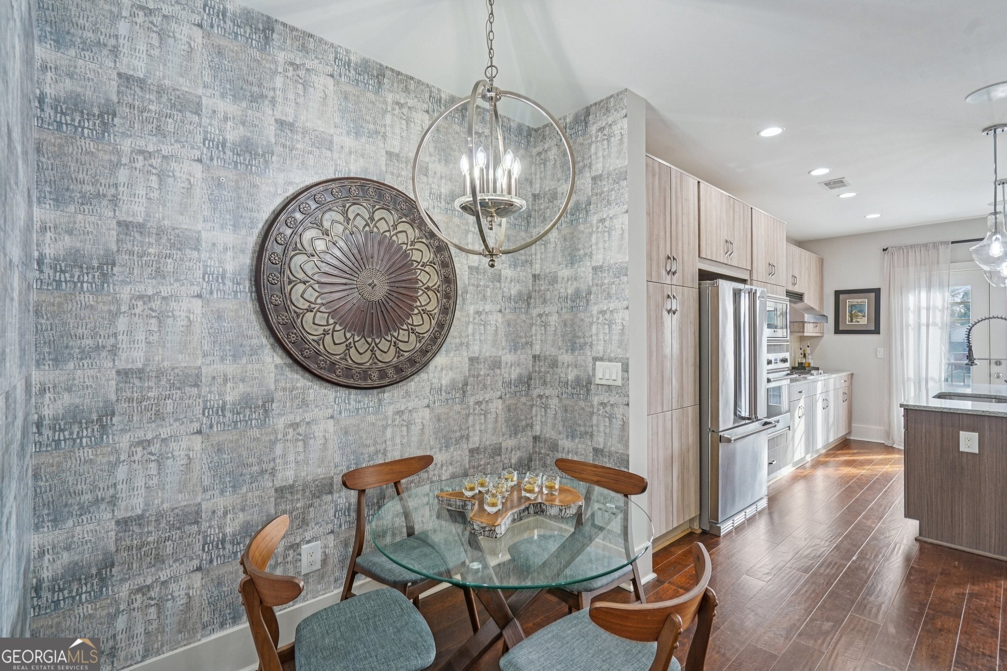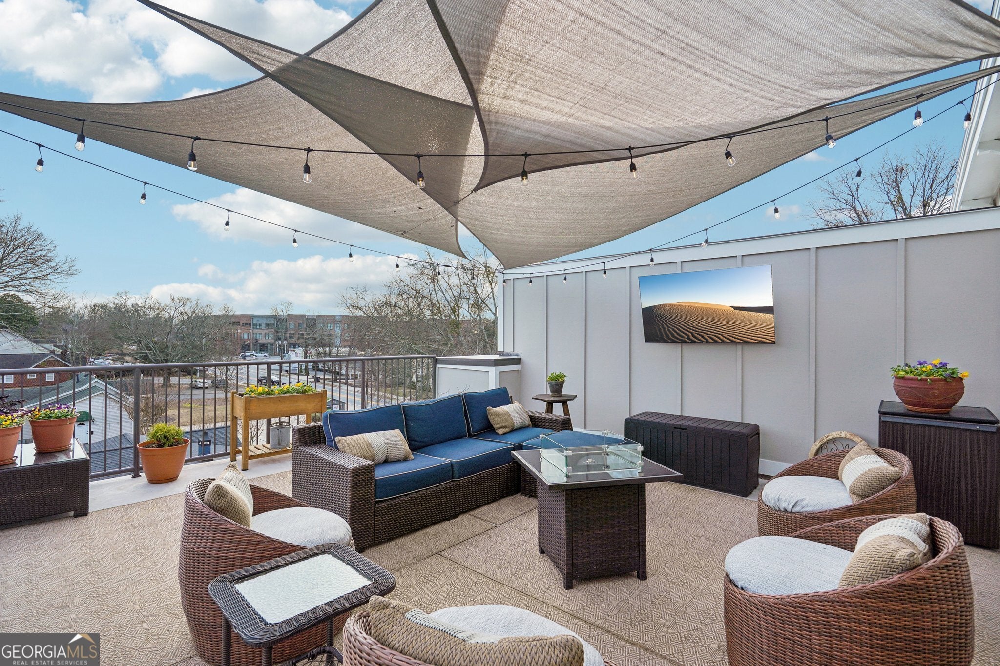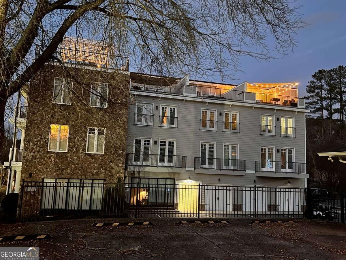 Newly painted inside and out, this exceptional end-unit, corner 2BR/2BA condominium offers refined living along Canton Street in Historic Downtown Roswell. Thoughtfully designed and filled with natural light, the residence is highlighted by a private rooftop terrace overlooking Canton Street-an ideal setting for both quiet moments and stylish entertaining. The interior features hardwood floors and a gracious entry with a conveniently located laundry closet, flowing into an open-concept living area with balcony access through double French doors. The designer kitchen is anchored by a spacious island with seating and is appointed with granite countertops, tile backsplash, stainless steel Viking appliance package, and curated lighting and wallpaper accents in the dining area. The main level includes a well-appointed bedroom with a full en-suite bath, offering flexibility for guests or a home office. Upstairs, a versatile loft provides additional living space, while the expansive primary suite showcases hardwood floors, generous closets, and a spa-inspired bath with dual vanities and an oversized frameless glass shower. Double doors open to the expansive rooftop terrace, creating a seamless indoor-outdoor living experience with striking views. Ideally positioned near Canton Street's renowned dining, boutique shopping, community events, and outdoor recreation, with convenient access to GA-400 and surrounding destinations, this residence delivers a rare blend of sophistication, privacy, and prime location.