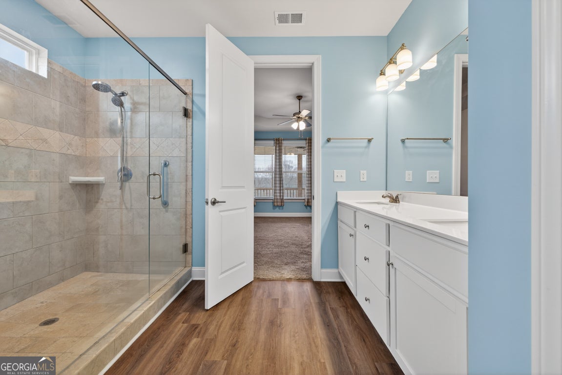 Located in the desirable Chimney Oaks Golf Course community, this thoughtfully upgraded home offers exceptional indoor and outdoor living. Since May 2023, the sellers have enhanced the property with a screened-in back porch plus an additional covered and partially screened grilling porch, complete with exterior lighting and porch fans, creating ideal spaces for relaxing and entertaining. The exterior has been improved with professional landscaping, an outdoor sprinkler system, and golf-ball-resistant window screens across the rear of the home. Inside, the home features added cabinetry and counter space in the great room, upgraded laundry room storage, gas fireplace logs with a dedicated gas tank and line, and ceiling fans with lighting in all bedrooms. The primary suite has been elevated with customized closet storage, added vanity drawers, and enhanced shower lighting, offering both function and comfort throughout. Conveniently located near Hwy 441 with easy access to I-85, the home also provides access to the outstanding amenities at Chimney Oaks Golf Club, including championship golf, clubhouse, dining, and resort-style community features.