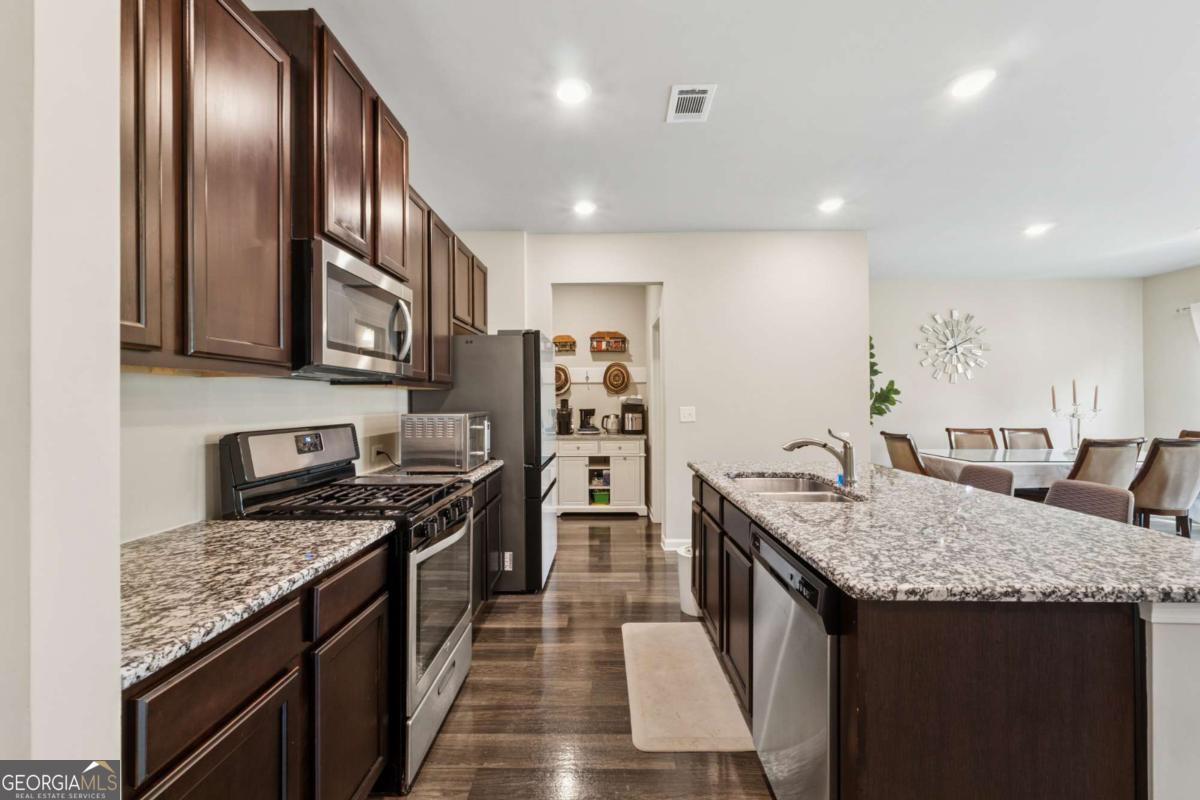 This is a beautifully maintained 3BR/2.5BA home in a desirable neighborhood with a community pool and playground. The inviting floorplan flows seamlessly and feels great as you walk through, combining comfort and functionality. The main level offers an open concept combining the dining, kitchen, and family room. While upstairs, you'll find spacious bedrooms with oversized closets-even in the secondary rooms. The large primary suite features a generous walk-in closet with a separate tub and shower in the bathroom. Prime location with easy access to highways, including GA-316.