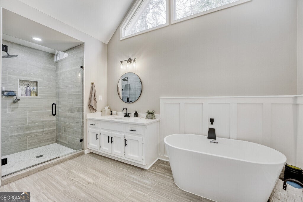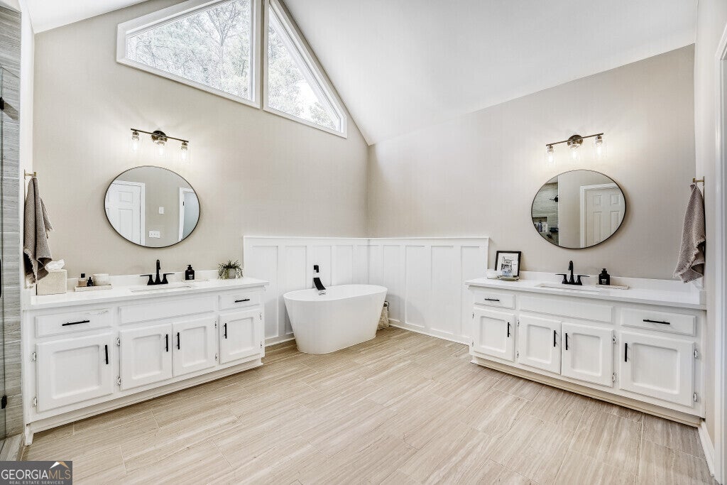 - Interior FeaturesDouble Vanity, High Ceilings, Separate Shower, Soaking Tub, Tray Ceiling(s), Two Story Foyer, Walk-In Closet(s)
