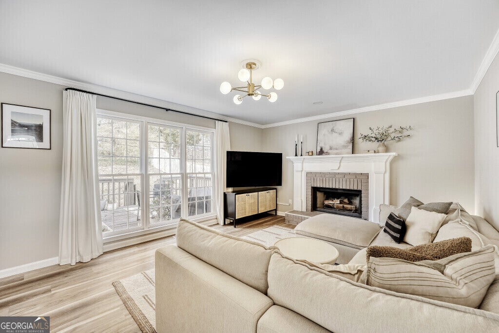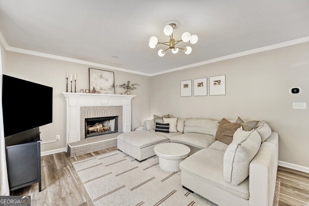 Gorgeous brick front home in sought after Sugar Hill neighborhood close to shopping, restaurants and schools. Inside you will find a family room with a fireplace, separate dining room, eat-in kitchen including upgraded appliances, along with an open floor plan on the main level. Upstairs you will find the master suite featuring tray ceilings, his & her closets, and a spacious bathroom with a separate tub and shower. Additionally there are 3 full bedrooms and a full bathroom upstairs. There is an unfinished basement with FULL bath ready for your customization or can be used as storage. 2 car garage with new garage door opener. Home is equipped with Ecobee Smart Thermostats on both levels, smart home locks, a security system, and more privacy with external security cameras at the front door, back patio, and basement. Enjoy entertaining on your back deck and private backyard. Don't miss your opportunity to grab this beautiful home!