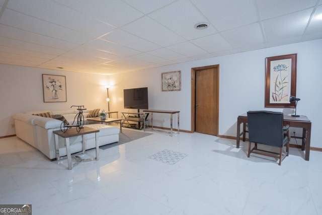 Short term rental opportunity! This attractively decorated/fully furnished suburban home offers 4000 sq ft of space great for gatherings or work travel assignments. The home has a chef kitchen upstairs and a kitchenette downstairs. The home offers 3.5 bathrooms, two living rooms (one upstairs and down stairs) a sitting room, and upper and lower decks to enjoy the quiet serene outdoors. The house has a beautiful tree top view from the window enclosed upper deck . The home is situated in a quiet secluded community that has a total of 9 homes and is 400 feet from Walker Lake. Also, the home can comfortably accommodate up to 25 individuals. The home is only 4.7 miles from Trilith Studios, 1.8 miles from downtown Fayetteville, and 3.5 miles to the Fayetteville Pavilion.