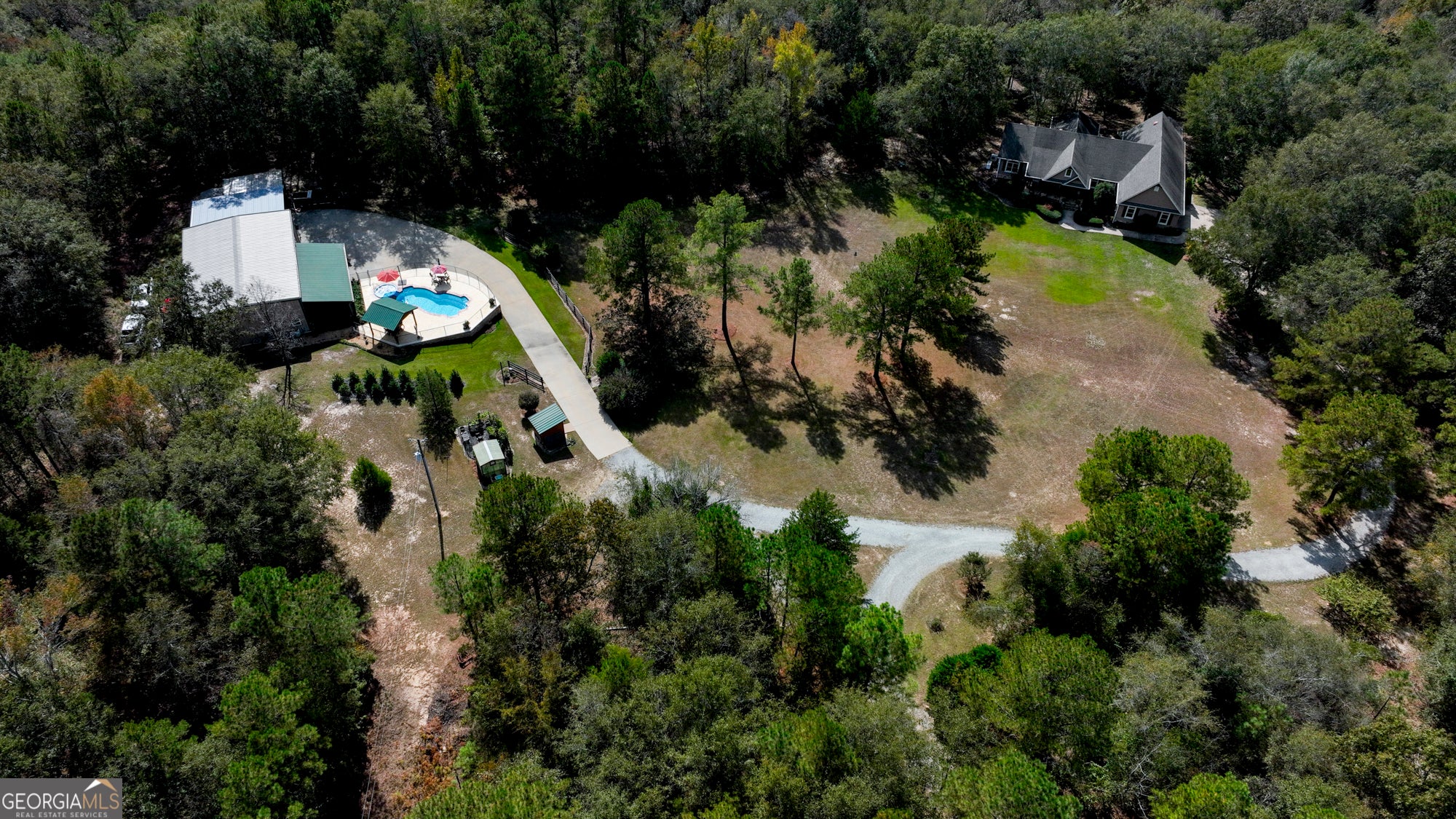 Located in Crawford County, Georgia, this exceptional property features a 3,000 SF custom home set on 98 acres of rolling terrain just minutes from the Flint River, an area widely known for its outstanding whitetail deer and turkey hunting. The main residence offers 3 bedrooms, 2 baths, and 2 offices, along with a custom kitchen, hardwood floors, a spacious screened porch, open deck, storm room, and a 2-car garage. Also included is a 2,400 SF guest house that serves perfectly as a secondary home. It features 3 bedrooms, 1 bathroom, a large screened porch with a fireplace, a swimming pool, and an adjacent pole barn for equipment or storage. The land showcases rolling topography with a beautiful mix of mature pine and hardwood timber, offering both recreational enjoyment and investment potential. An excellent internal road system provides full access throughout the tract, while multiple irrigated and well-maintained food plots enhance the property's exceptional wildlife habitat. Whether used as a family retreat, hunting lodge, or private estate, this property offers the perfect balance of comfort, seclusion, and natural beauty in one of Georgia's most desirable outdoor regions.