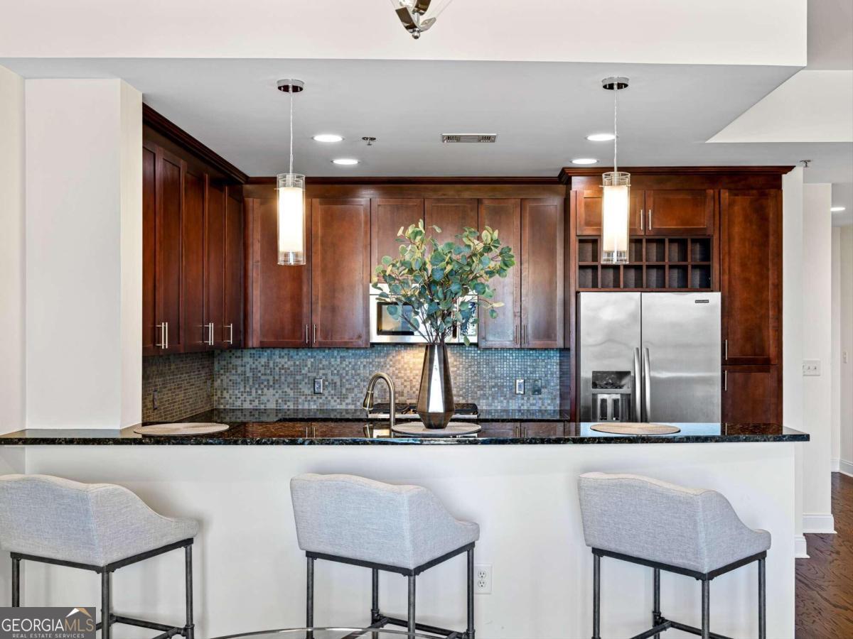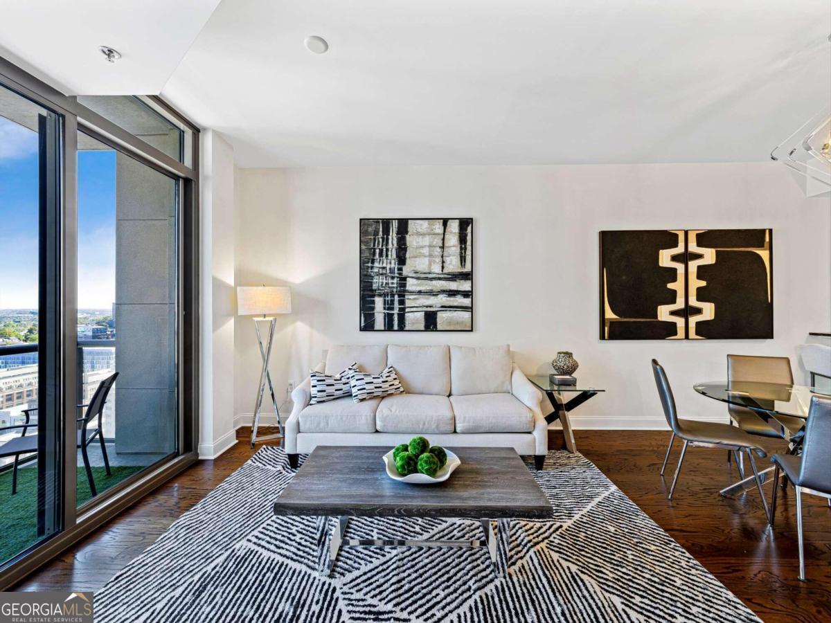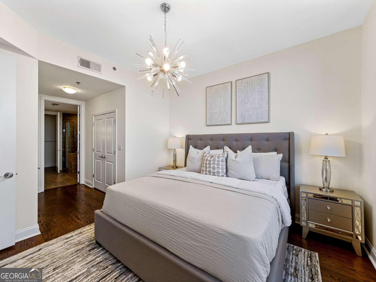 Luxury living in the heart of the city! Immerse yourself in unparalleled sophistication and 5-star amenities in this prestigious high-rise condo building. Elevate your lifestyle on the 21st floor with breathtaking views of Buckhead, Atlantic Station, Midtown, and the downtown skyline. This isn't just a home - it's a sanctuary for urban adventurers seeking the ultimate in comfort and style. Step inside to discover a fully furnished haven of elegance with all hardwood floors and floor-to-ceiling windows in the family room, showcasing the vibrant cityscape. The family room opens to a private balcony, perfect for enjoying your morning coffee or unwinding with a glass of wine while soaking in the stunning views. The chic bedroom and versatile bonus room offer endless possibilities for creative expression and relaxation. Indulge your culinary passions in the gourmet kitchen featuring custom cherry cabinetry, stone countertops, stainless steel appliances, and a built-in wine rack for those special occasions. Retreat to your owner's sanctuary with a walk-in closet and a spa-like bathroom complete with a soaking tub and frameless glass shower fit for royalty. Experience the pinnacle of luxury living with access to 5-star amenities, including a resort-style rooftop pool & Whirlpool, Poolside Terrace, Waterfalls & Sundeck, state-of-the-art fitness club, inviting club room, game room, Catering Kitchen, and sophisticated conference room. The dedicated 24-hour full-service concierge service and Lifestyle Director are always on hand to fulfill your every desire. Voted the best building to live in-town, The Atlantic offers a vibrant lifestyle with shops, restaurants, and entertainment right at your doorstep. This move-in-ready unit comes fully furnished, complete with all appliances, allowing you to settle in effortlessly. Don't miss this extraordinary opportunity to immerse yourself in the best of city living in the most prestigious and exciting condo building around! Free parking space is included with the unit, with an option to rent an additional space.